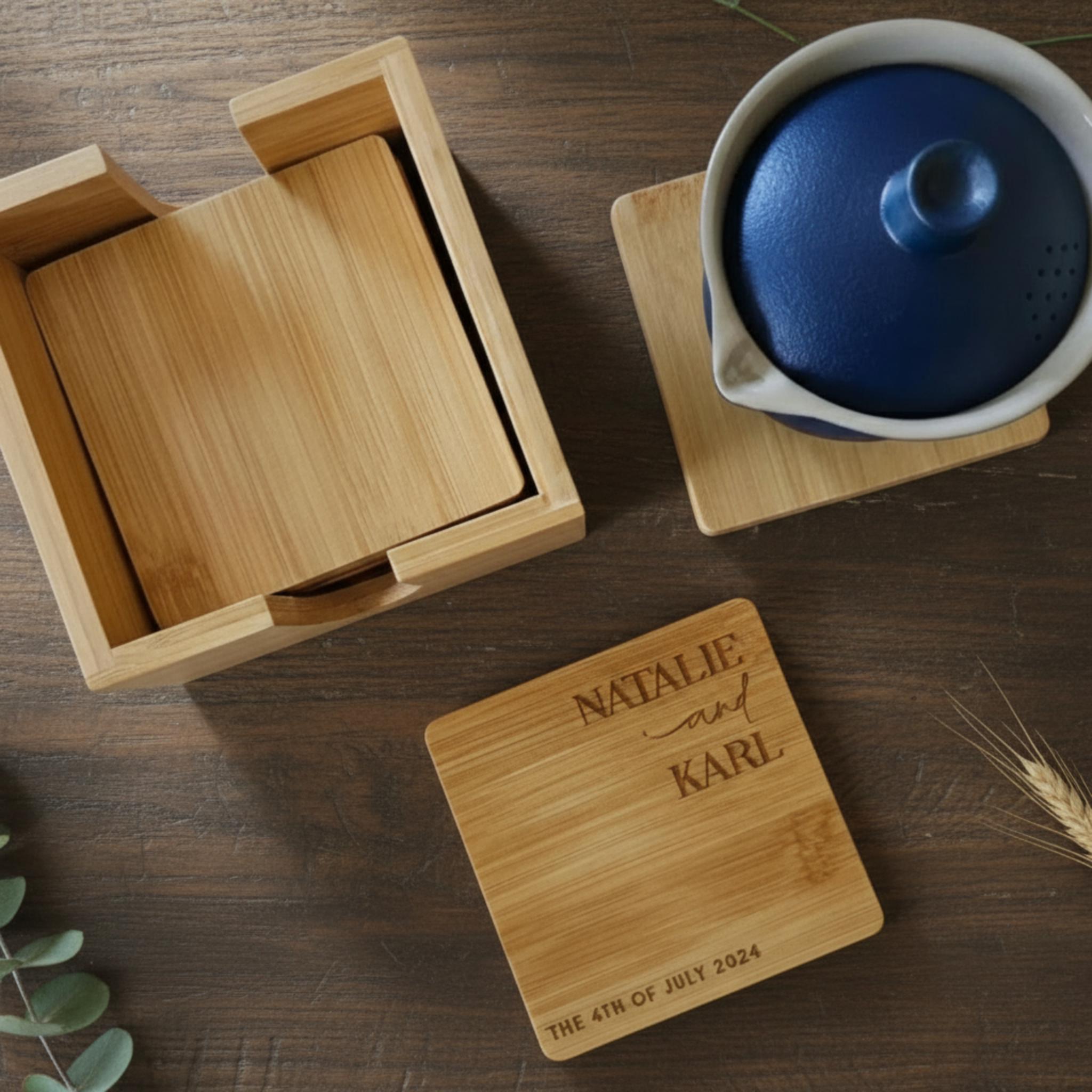 Add a touch of elegance and personalization to your home or gift-giving. Order your personalized bamboo coasters today and elevate your entertaining experience!