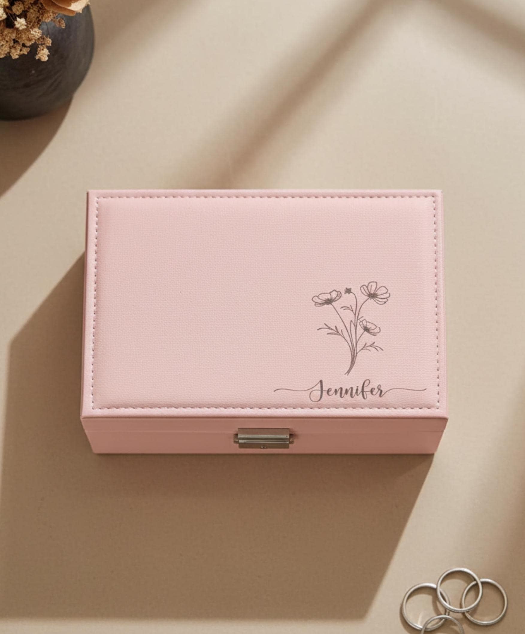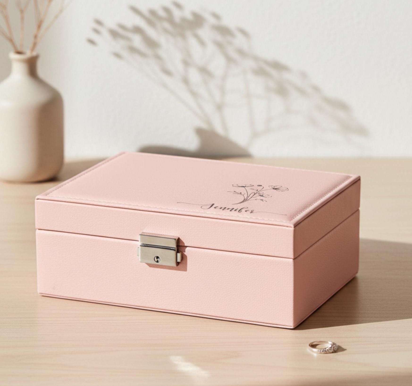 Each box is custom-engraved on demand, creating a unique personalized jewelry box for her.