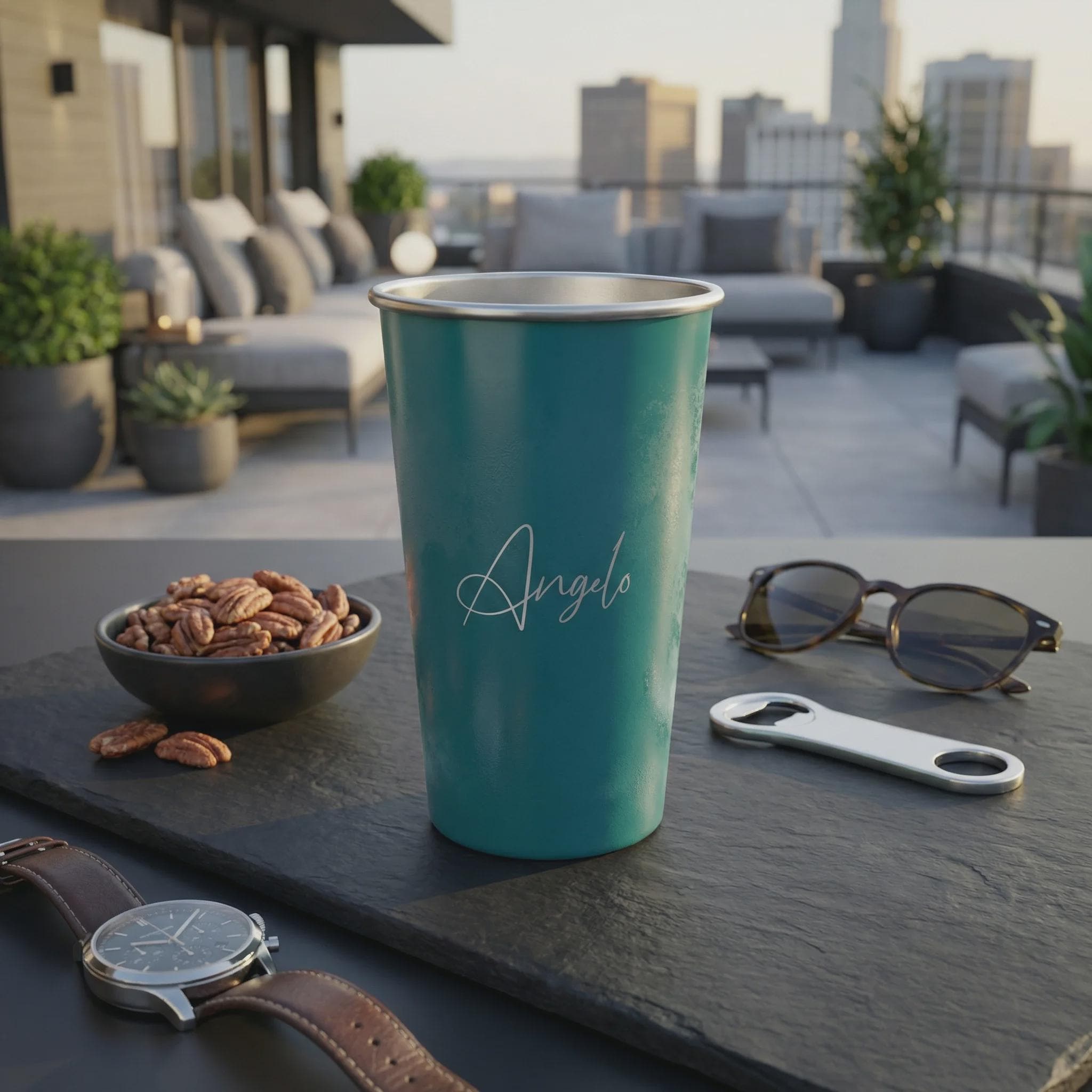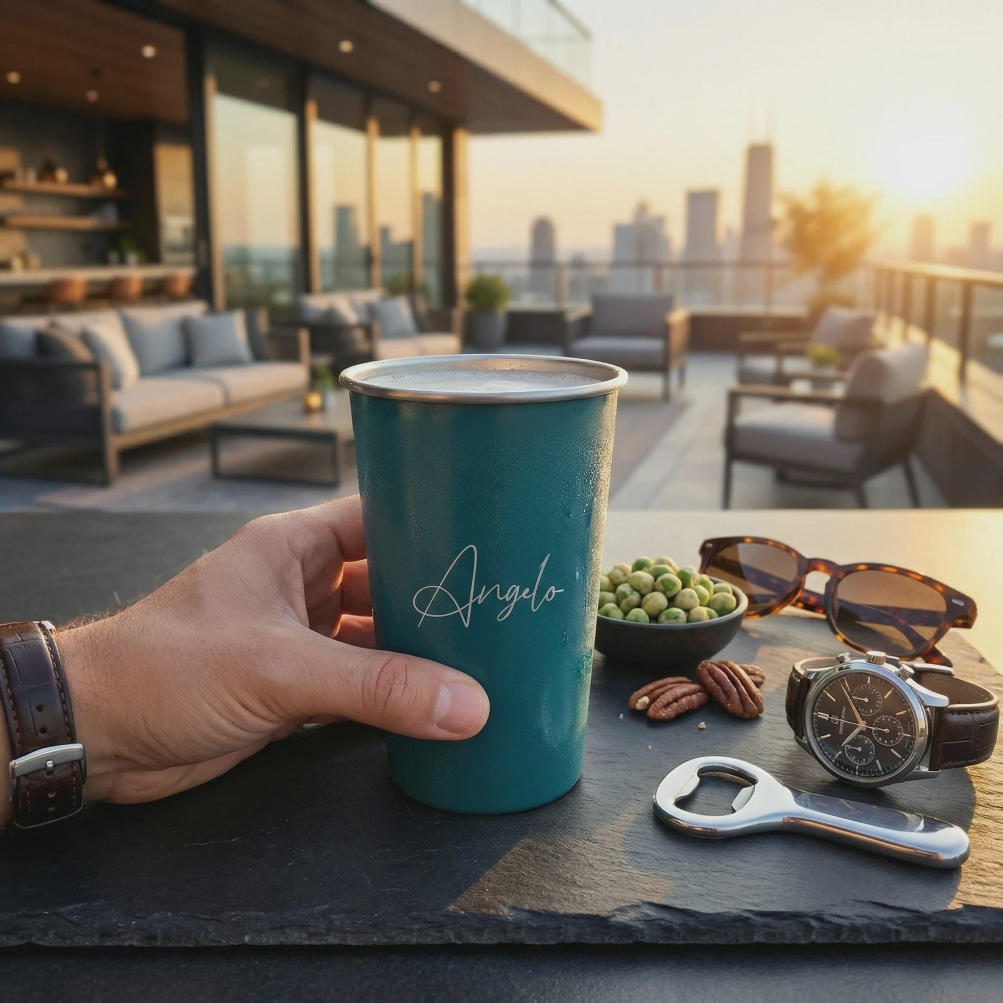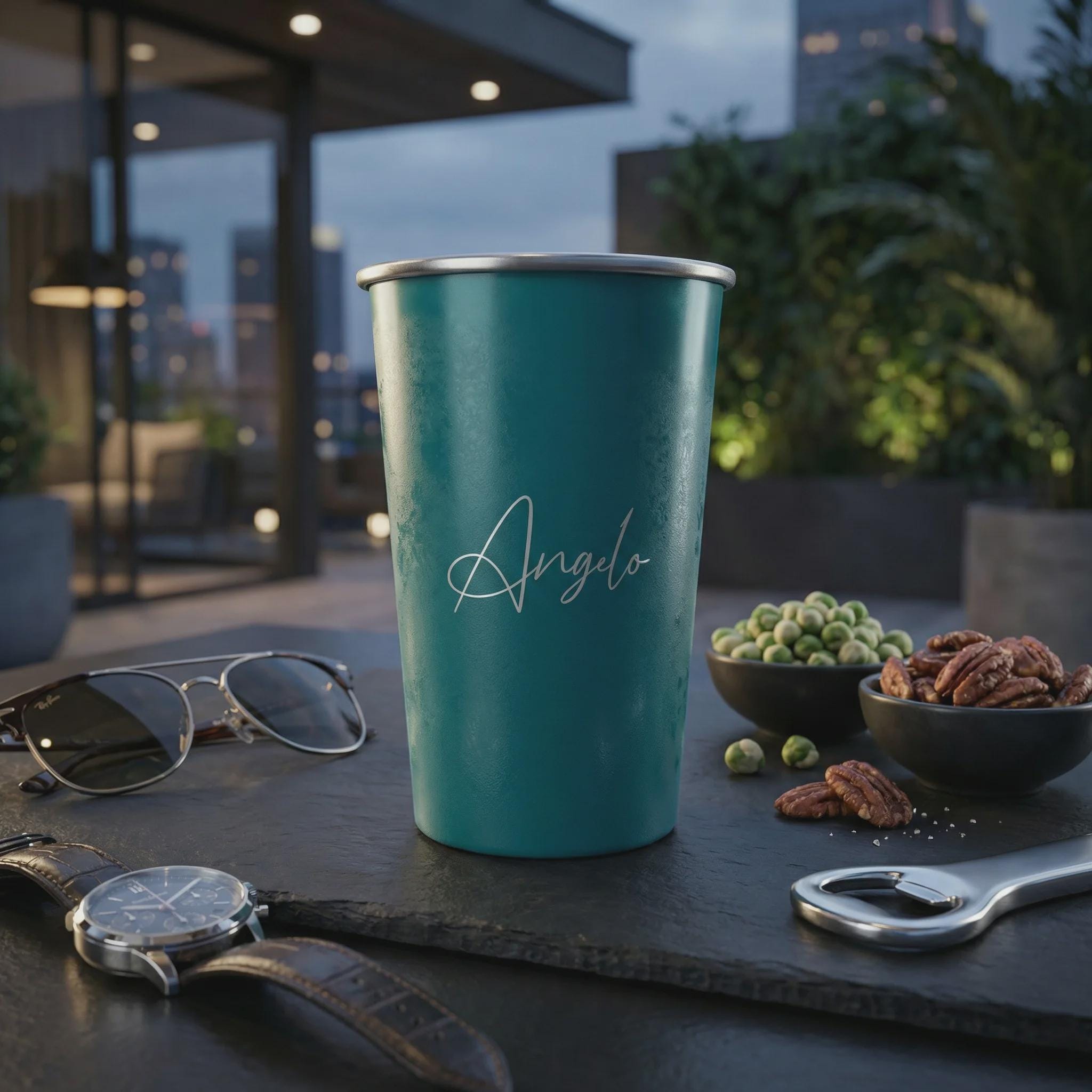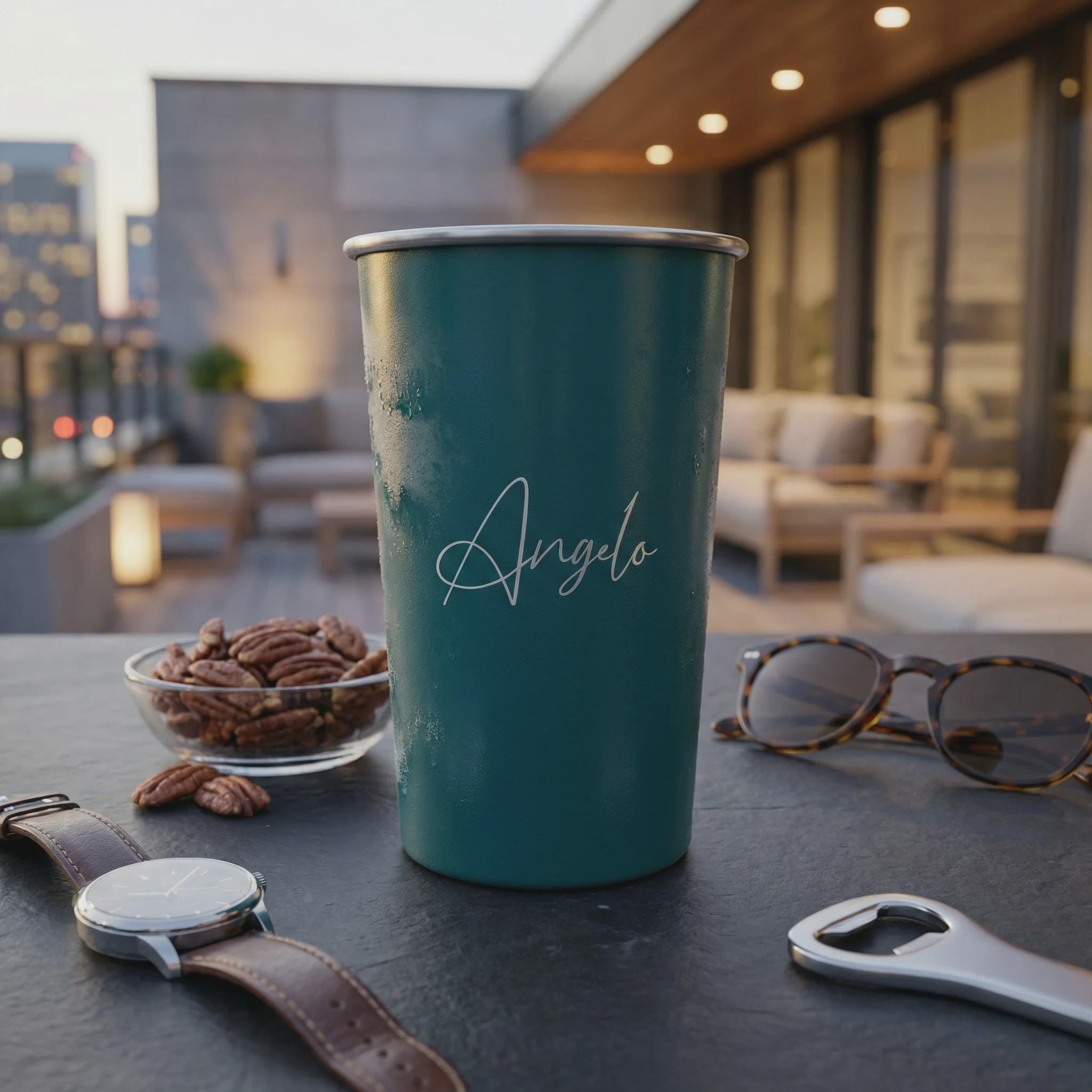 Personalized Stainless Steel Pint Cups | Custom Engraved Beer Glasses for Groomsmen, Husband, Father | Kid-Friendly | Indoor Outdoor Use
