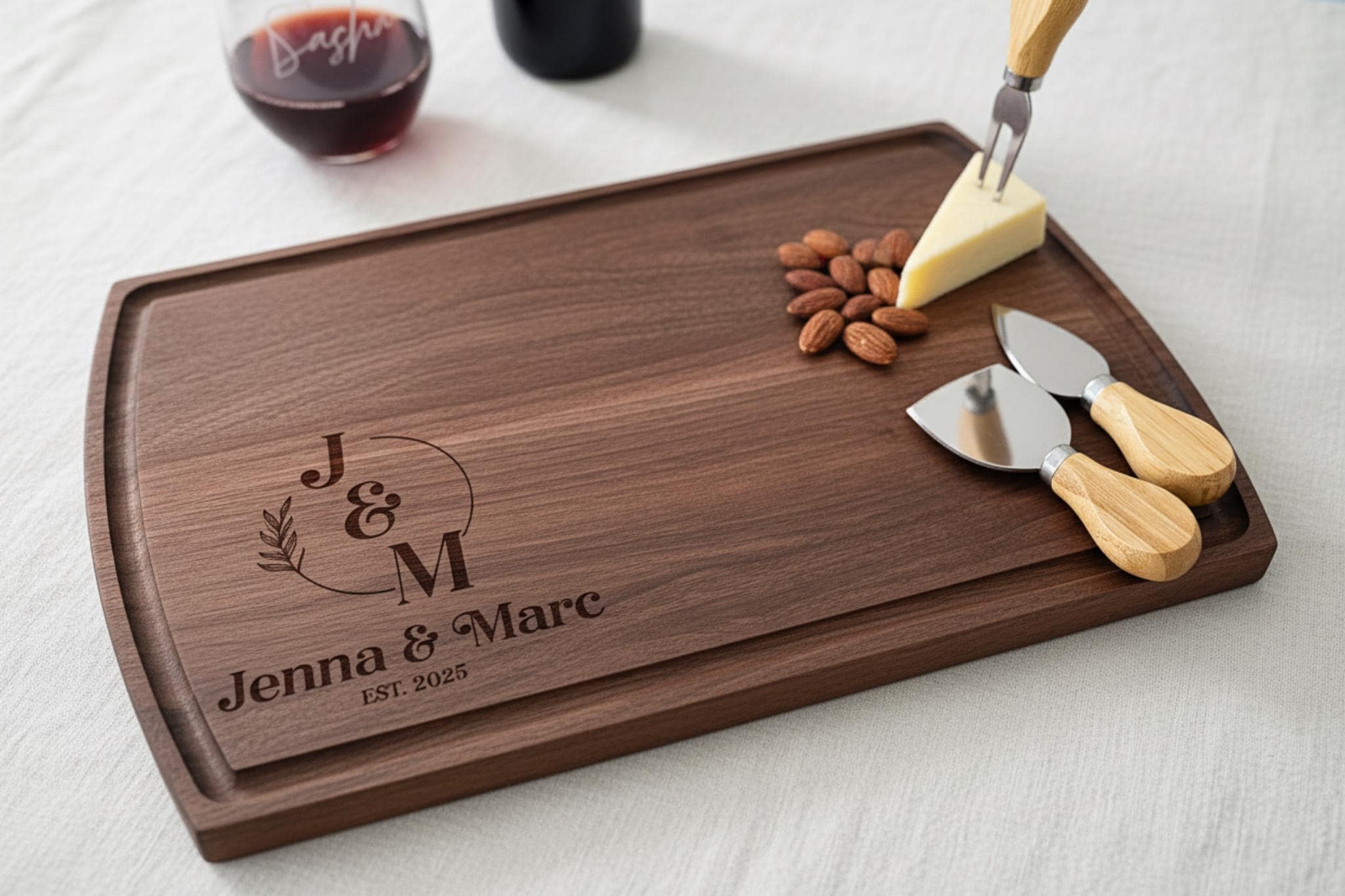 Celebrate love and new milestones with our Personalized Couples' Cutting Board. Engraved with the couple’s names, their establishment year, and an elegant floral design, this board makes a heartfelt wedding gift, housewarming present, or a thoughtful realtor closing gift.