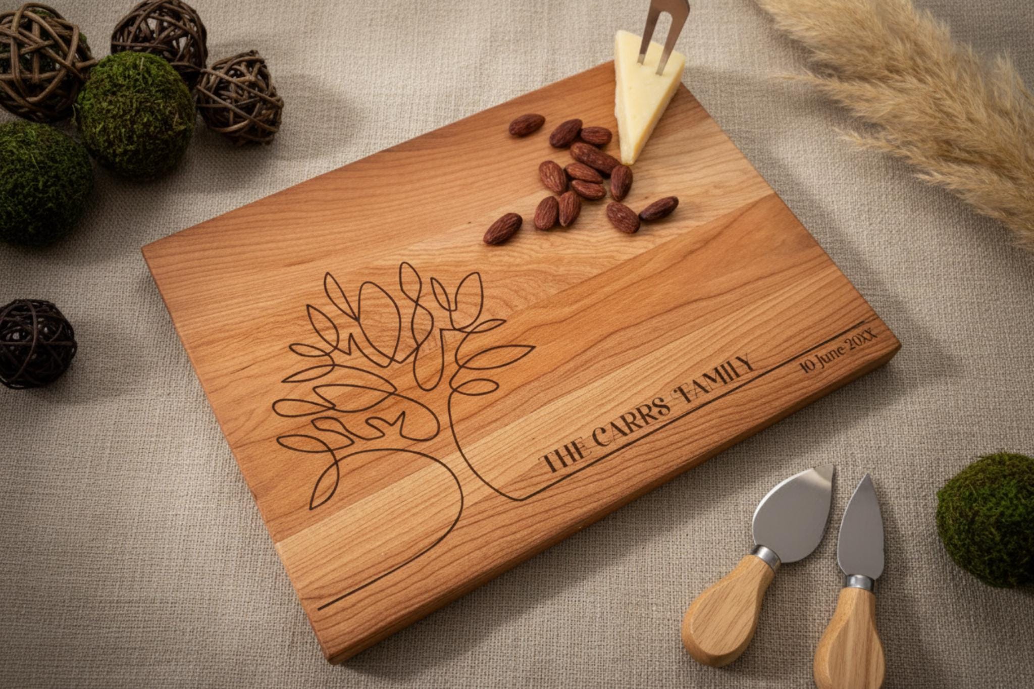 Personalized cutting board, Family Tree: Custom Engraved Charcuterie Board, Housewarming Gift, Wedding Gift, Couples Gift, Anniversary Gift