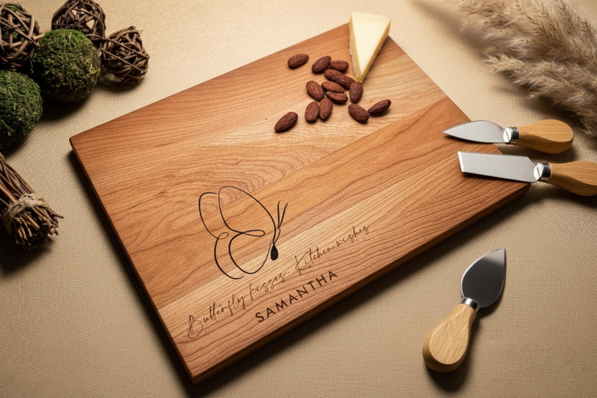Celebrate love, family, and beautiful memories with our Custom Butterfly Cutting Board—a personalized gift perfect for Mother's Day, birthdays, gifts for her, grandmas, and any occasion that calls for a thoughtful touch. Handcrafted from premium Walnut, Cherry, or Acacia wood, this board transforms everyday meal prep into a cherished ritual.