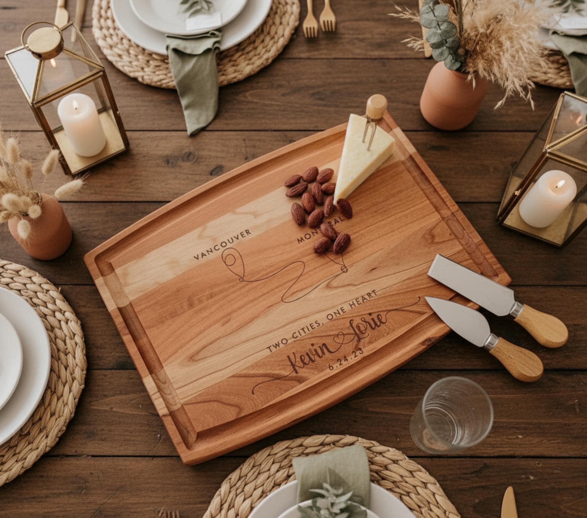 More than just a cutting tool—this engraved board doubles as a decorative keepsake, symbolizing love, distance, and unity.