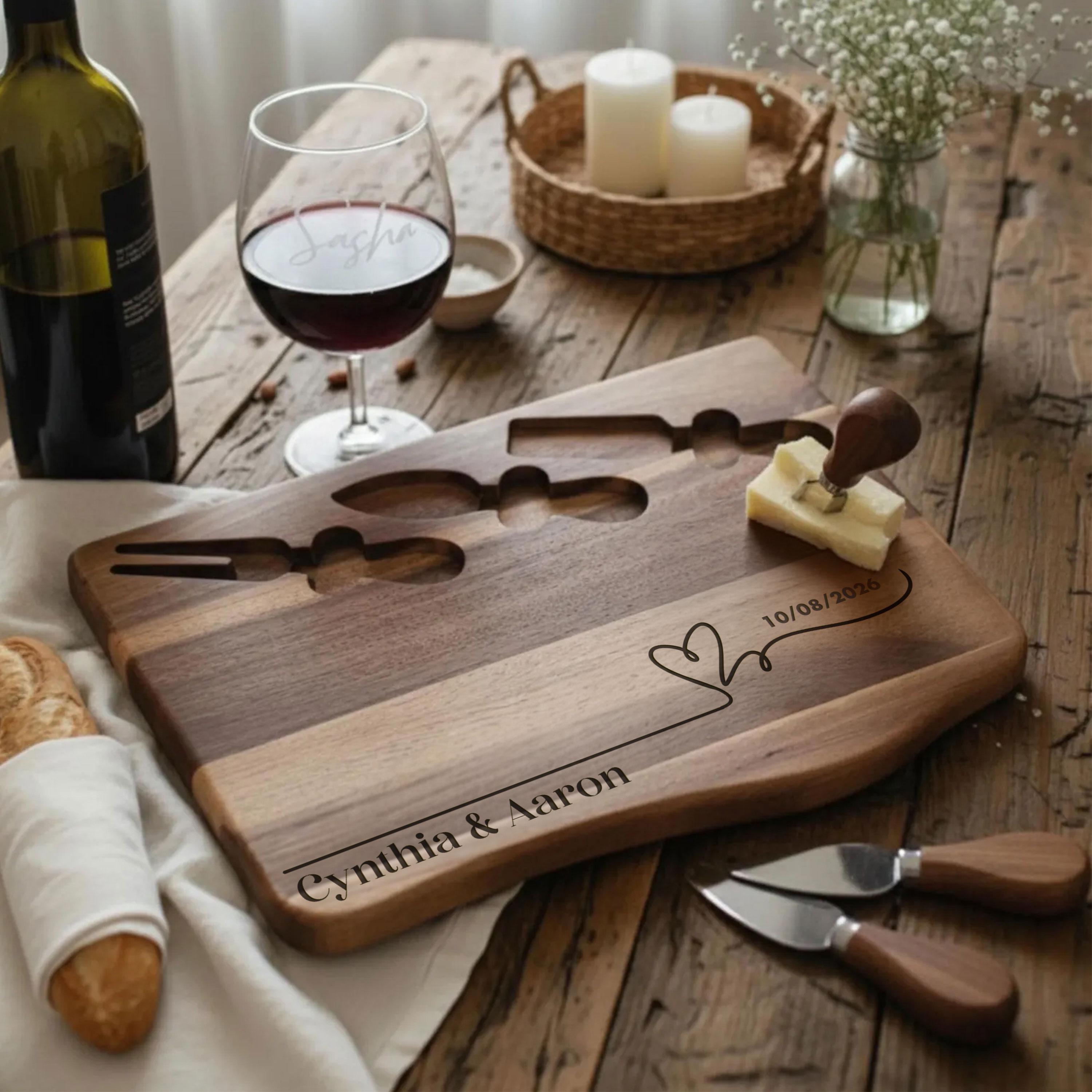 Personalized Charcuterie Board, Couples Gift: Custom Engraved cheese Board with Tools- Engagement Gift, Wedding Gift, Housewarming Gift