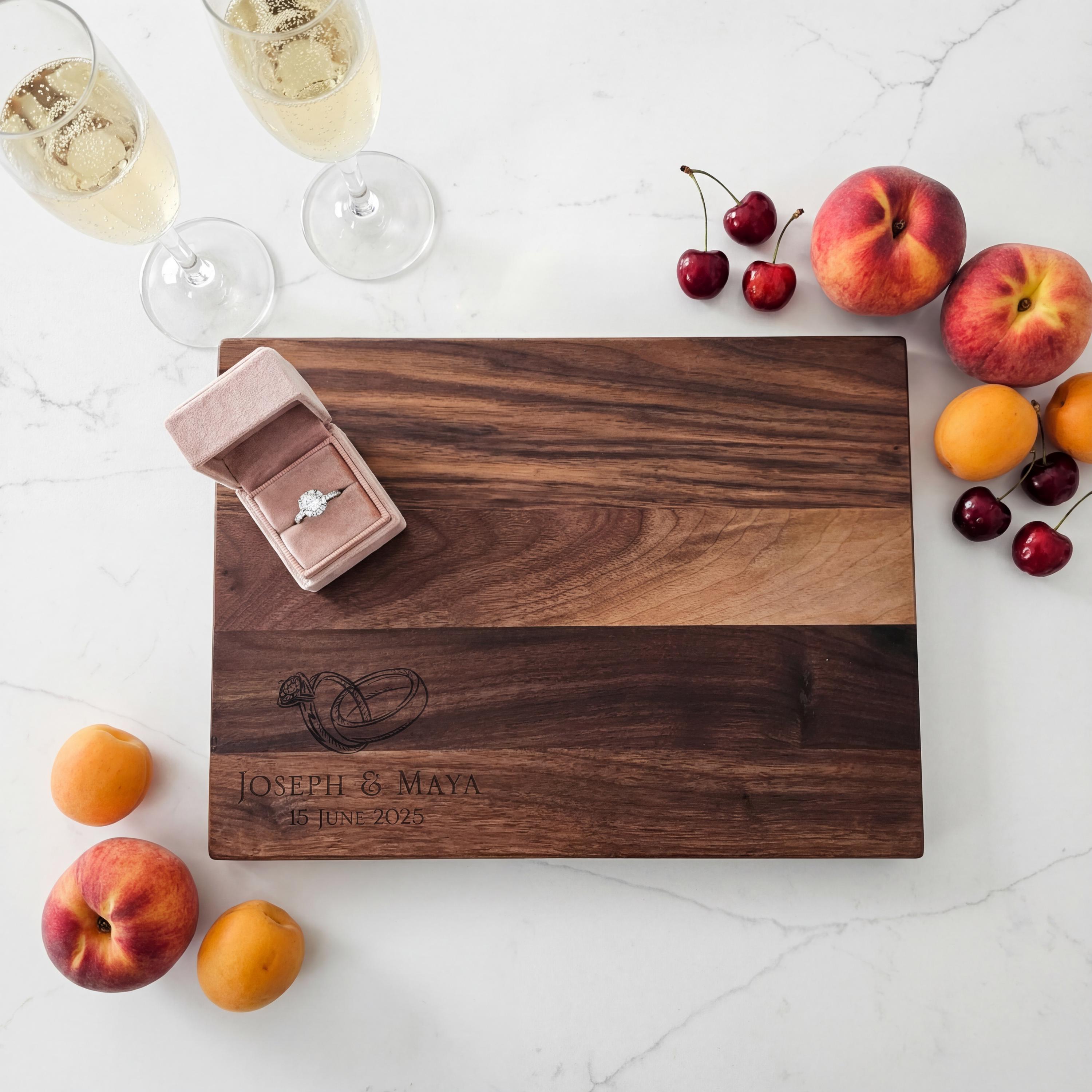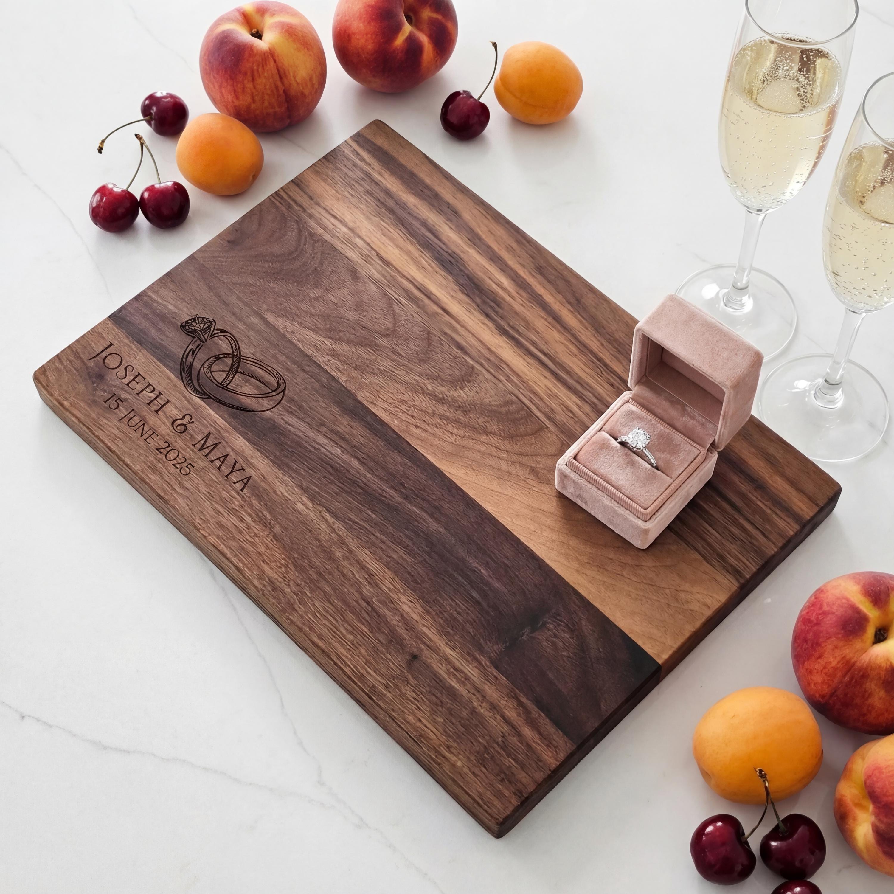 Personalized cutting board, Engagement Rings: Custom Engraved Charcuterie Board, Wedding Gift, Engagement Gift, Couples Gift, Hosting Gift