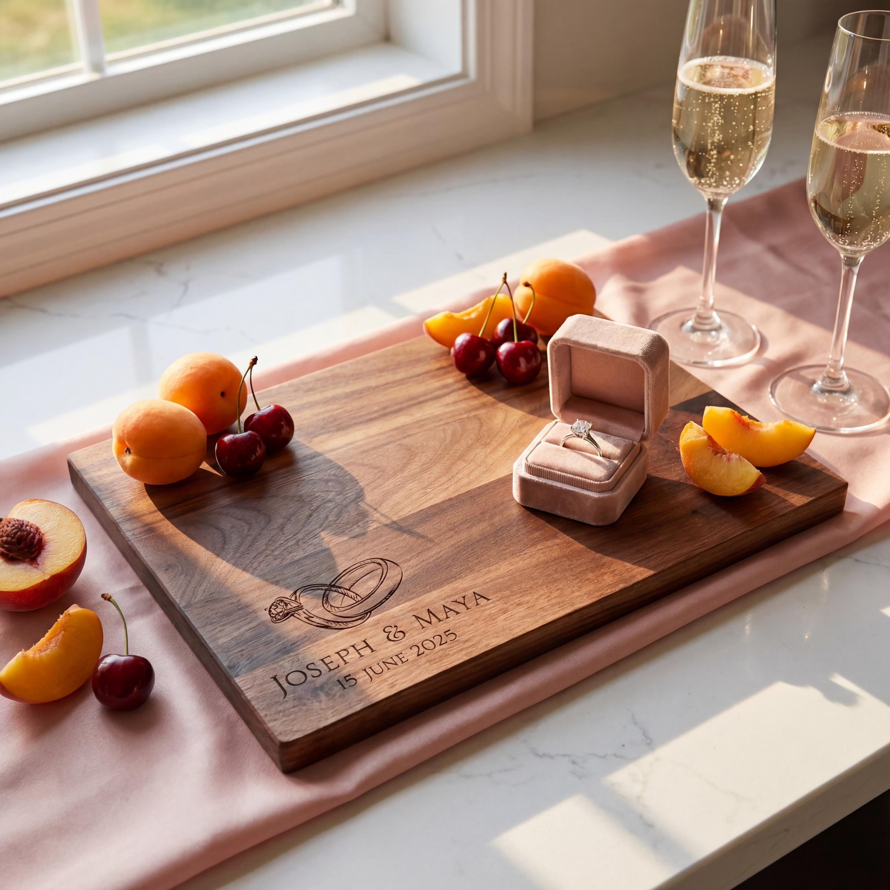 Celebrate your love story with a custom engraving that transforms this cutting board into a cherished memento for anniversaries, engagements, or weddings.
