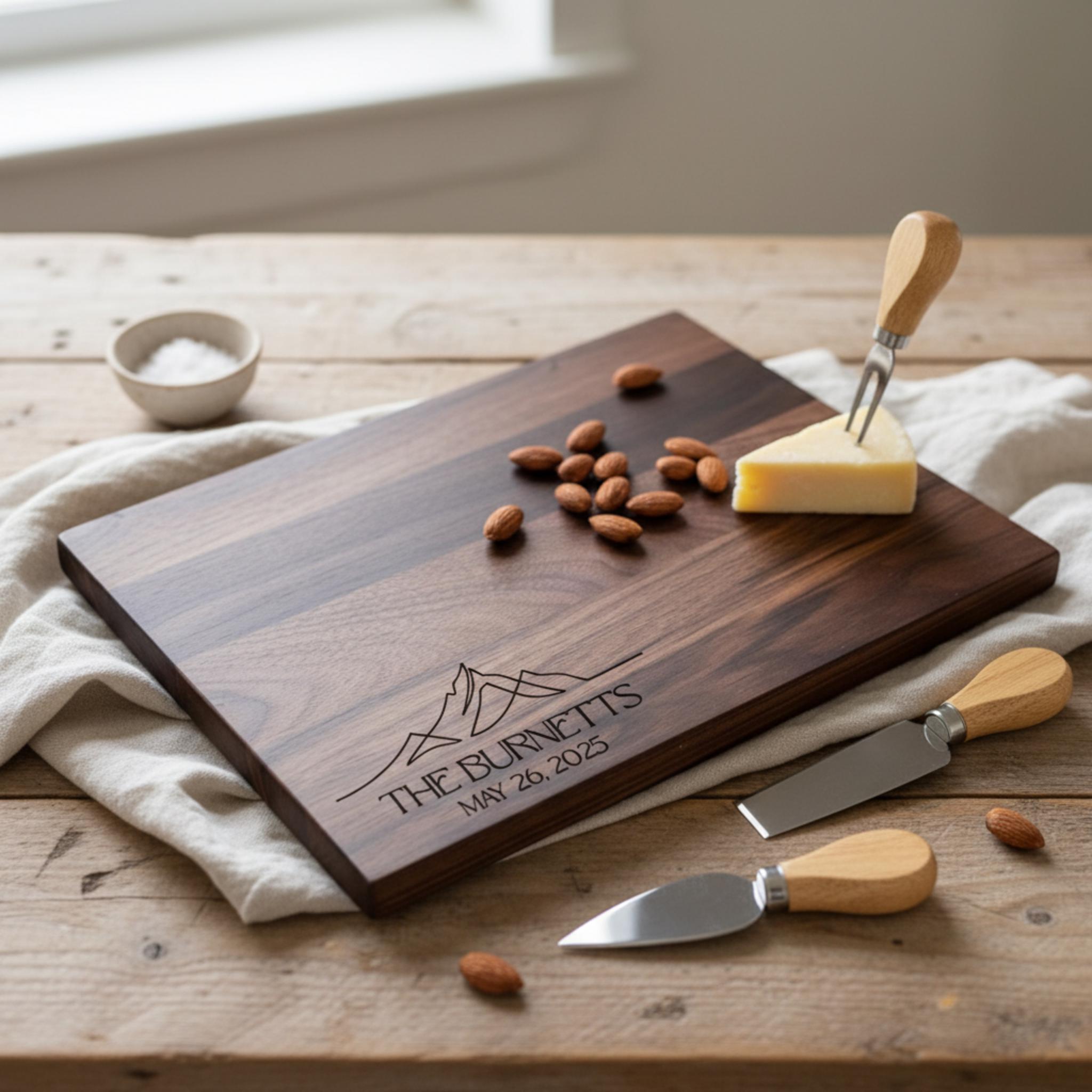 Celebrate your unique journey with a cutting board that’s not only a functional kitchen tool but also a timeless piece of personalized art. Order your custom mountain cutting board today and capture your love story in style!