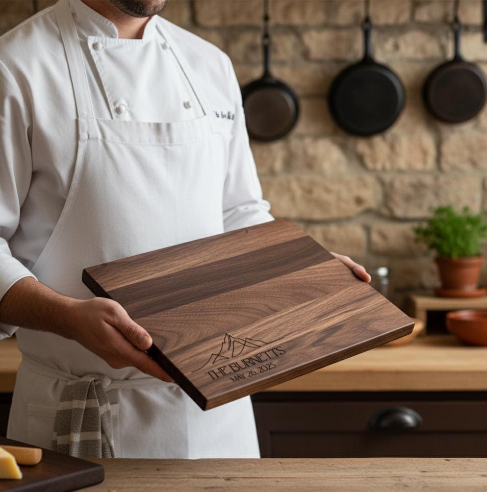 Celebrate your love story with a custom engraving that transforms this cutting board into a cherished memento for weddings, anniversaries, or any special occasion.