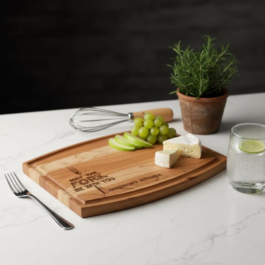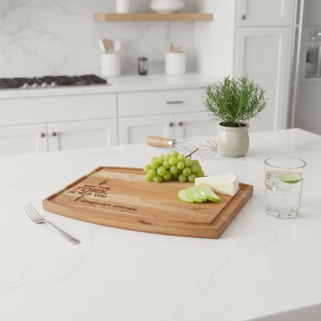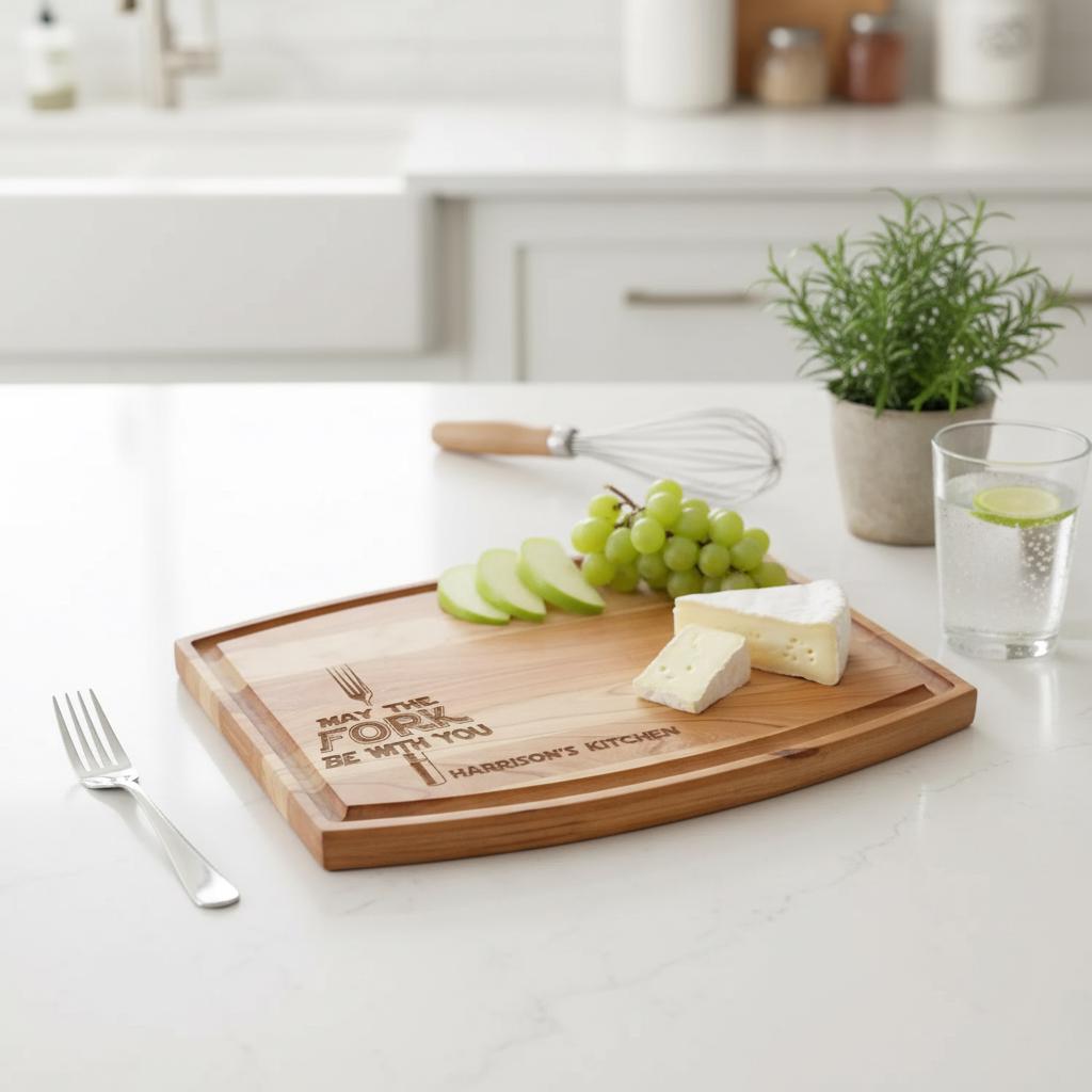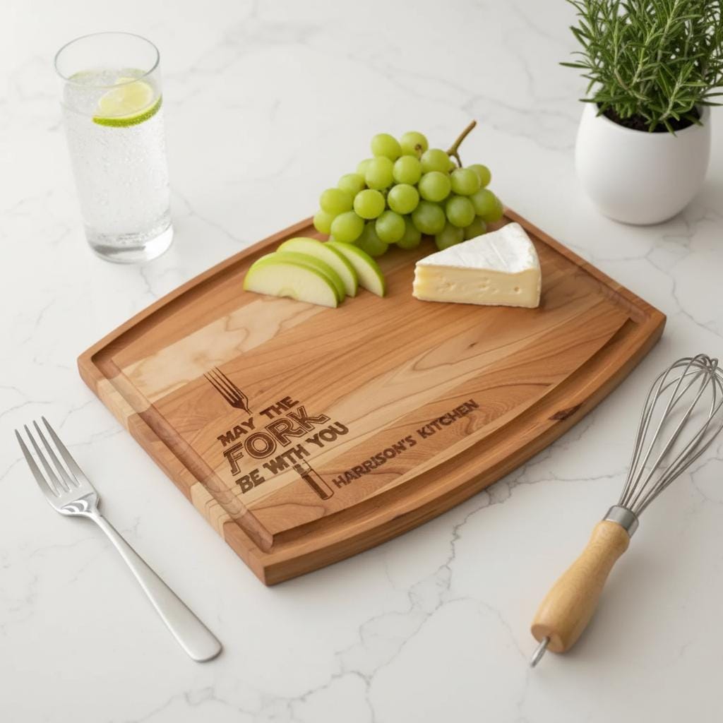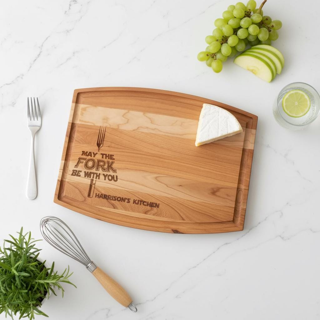 Personalized cutting board – "May the Fork Be With You": Custom Engraved Star Wars Kitchen Decor on Premium Wood, Unique Gift