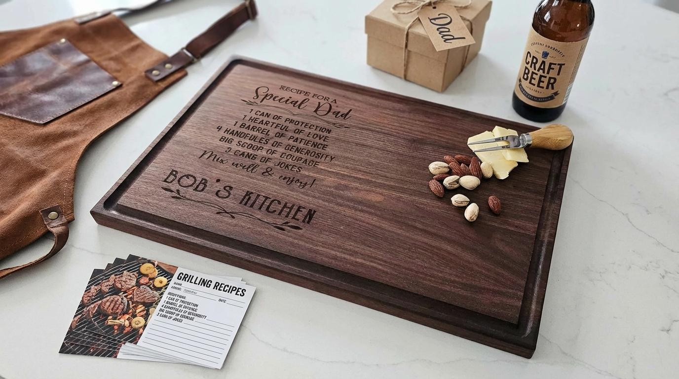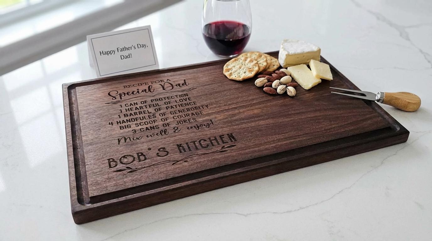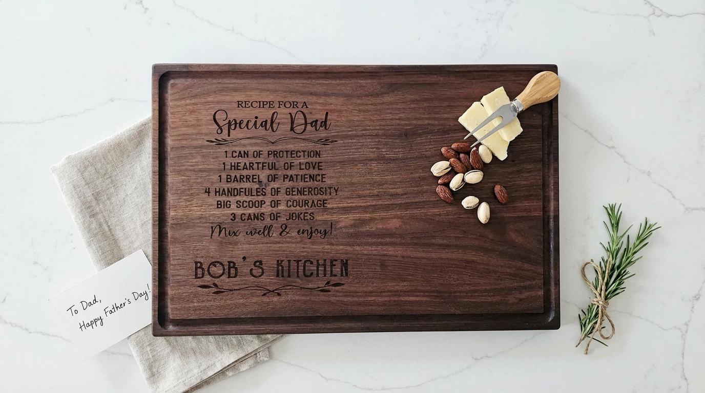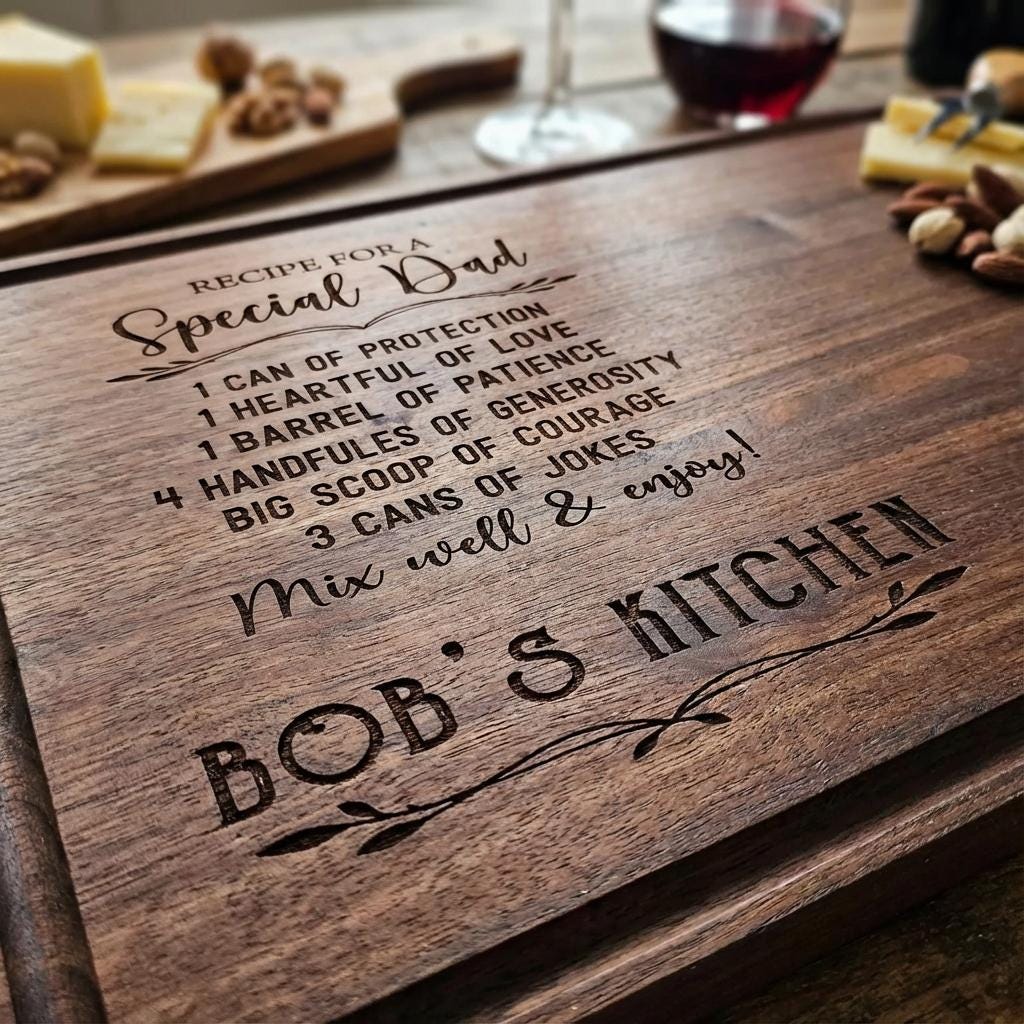 Personalized Recipe Cutting Board for Dad | "Recipe for a Special Dad" Walnut Charcuterie & Father's Day Gift