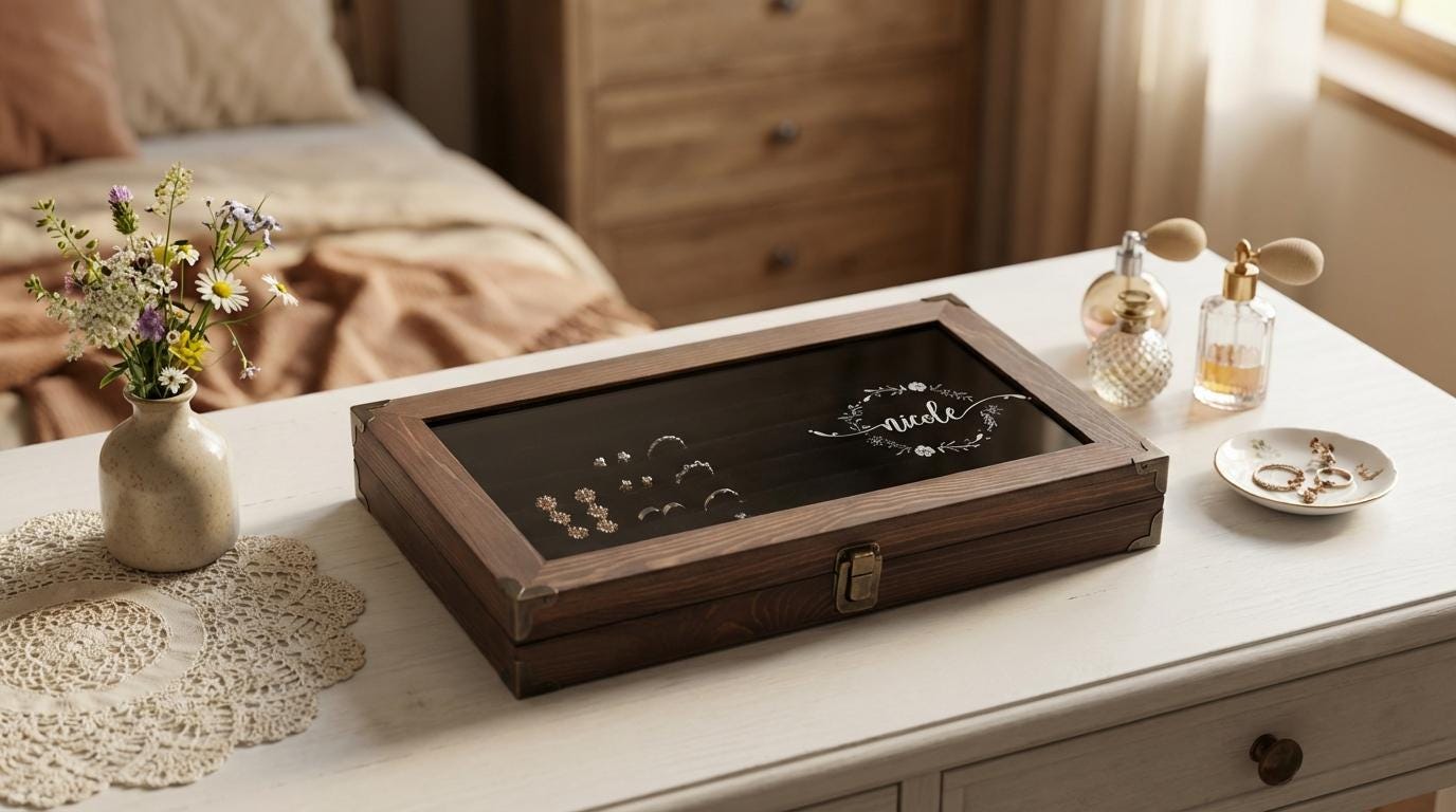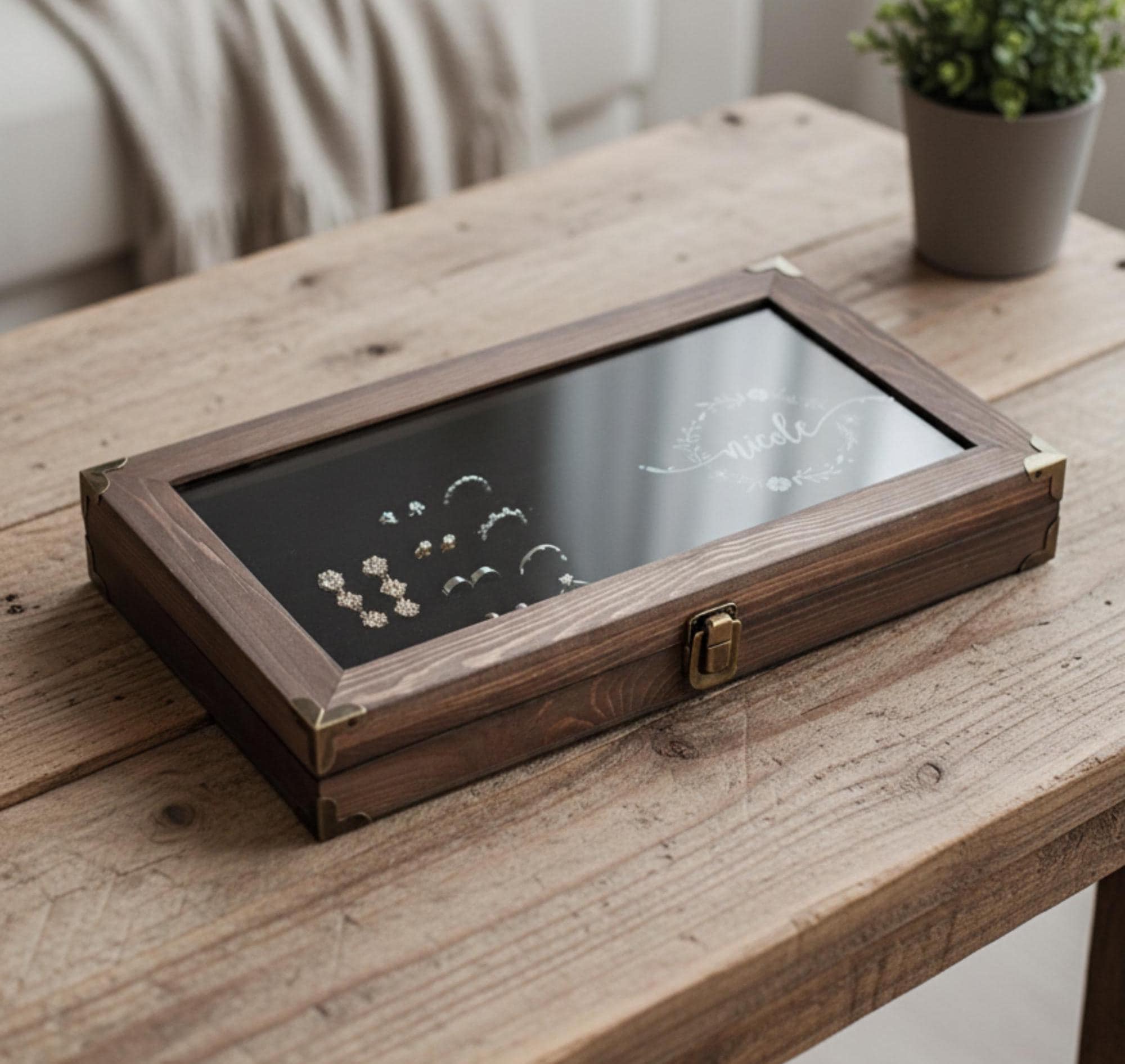 Glass Lid Display: This showcases your jewelry collection beautifully while keeping it protected.
