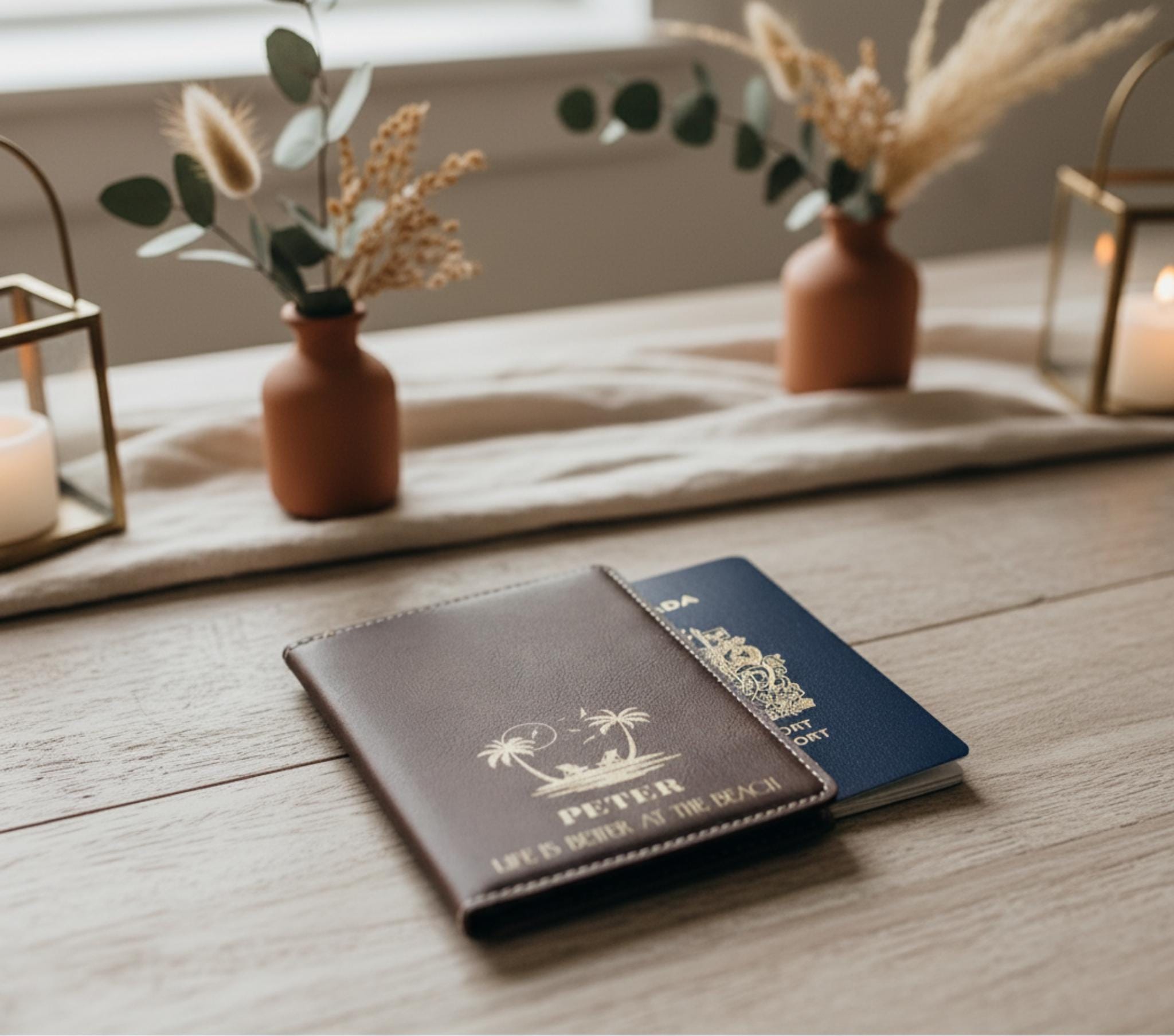 Personalized Passport Holder, Holiday Gift: Custom Engraved Vegan Passport Cover, Passport Wallet, Retirement Gift, Travel Essential Gift