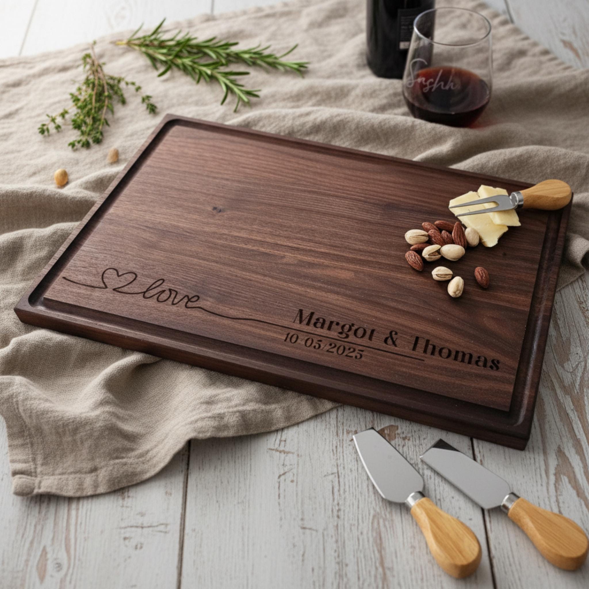 Personalized cutting board – Love-Inspired: Custom Engraved with Names & Date for Wedding and Anniversary Charcuterie Gift