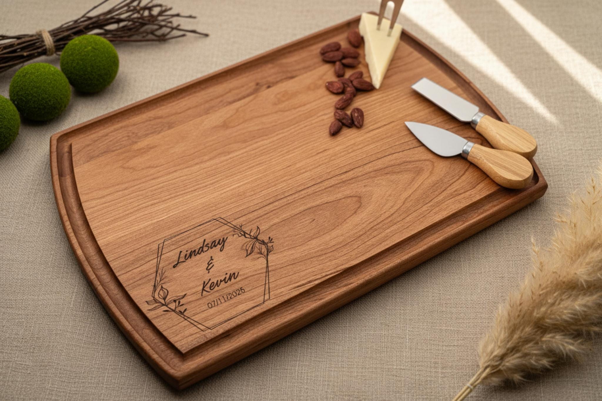 Exquisitely Crafted Cutting Board Personalized Couples' Keepsake | Unique Wedding, Engagement & Anniversary Gift