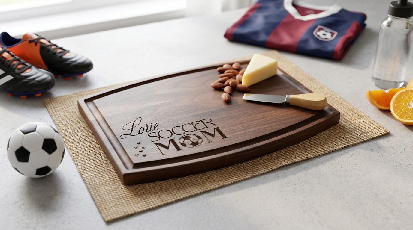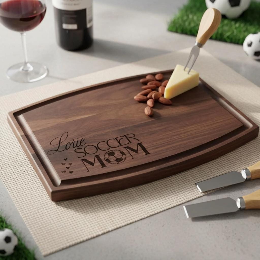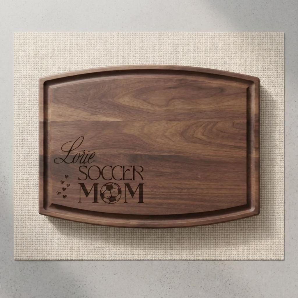 Personalized Soccer Mom Gift | Custom Cutting Board with Juice Groove & Engraved Sports Mom Decor