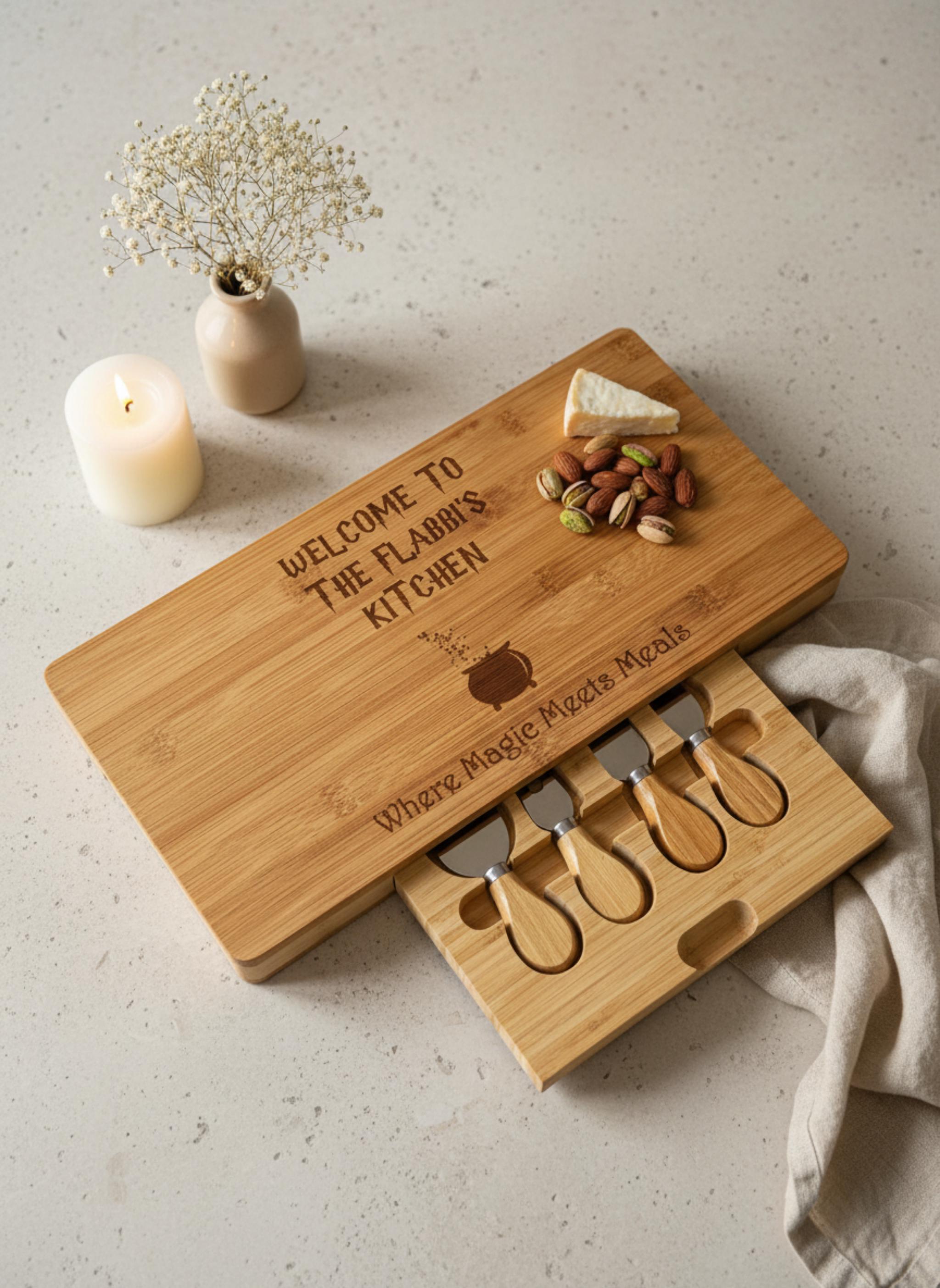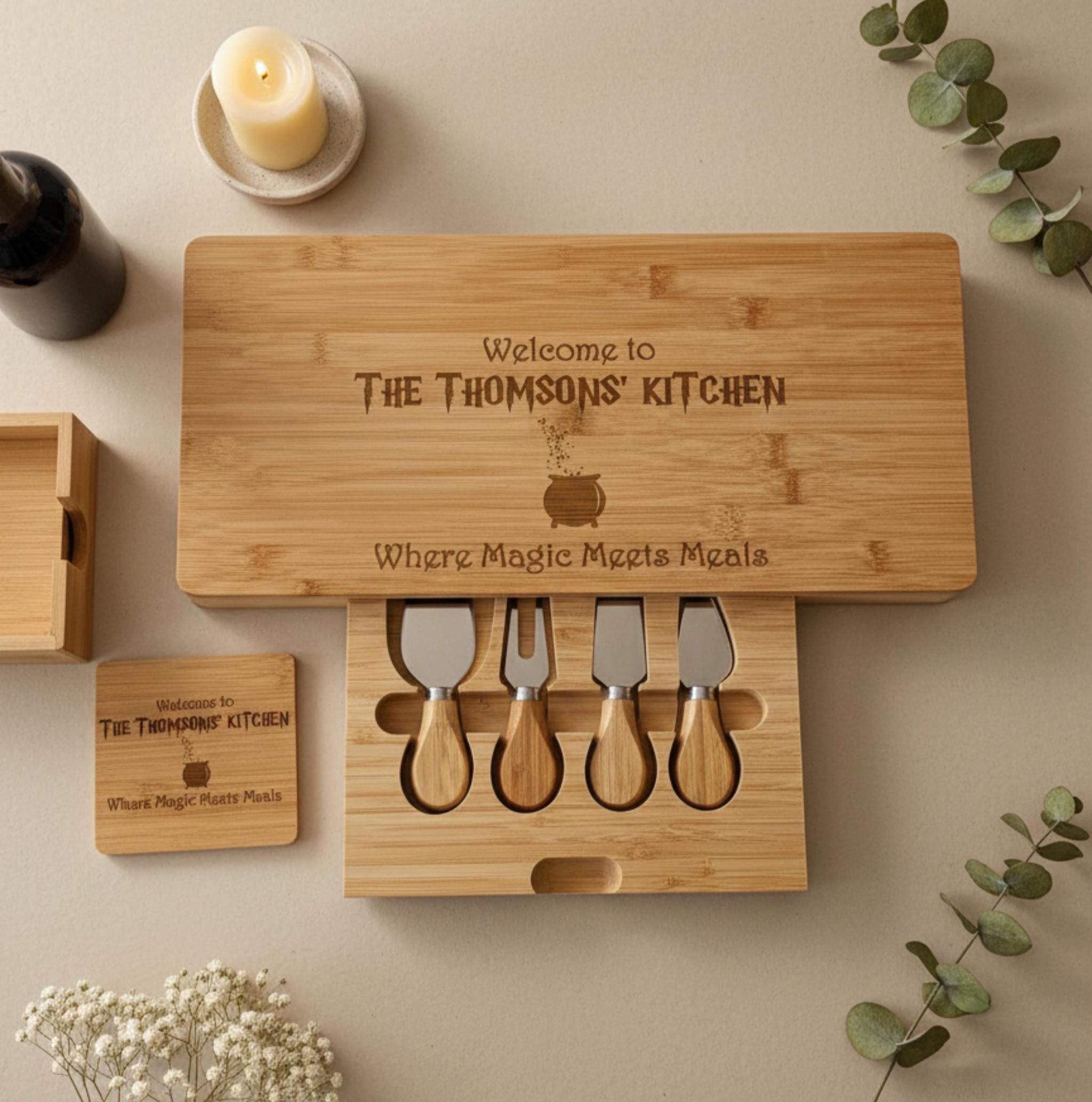 Personalized Charcuterie Board, Wizard Design: Custom Engraved Bamboo Cheese Board, Magical Gift, Housewarming Gift, Kitchen Gift, Host Gift