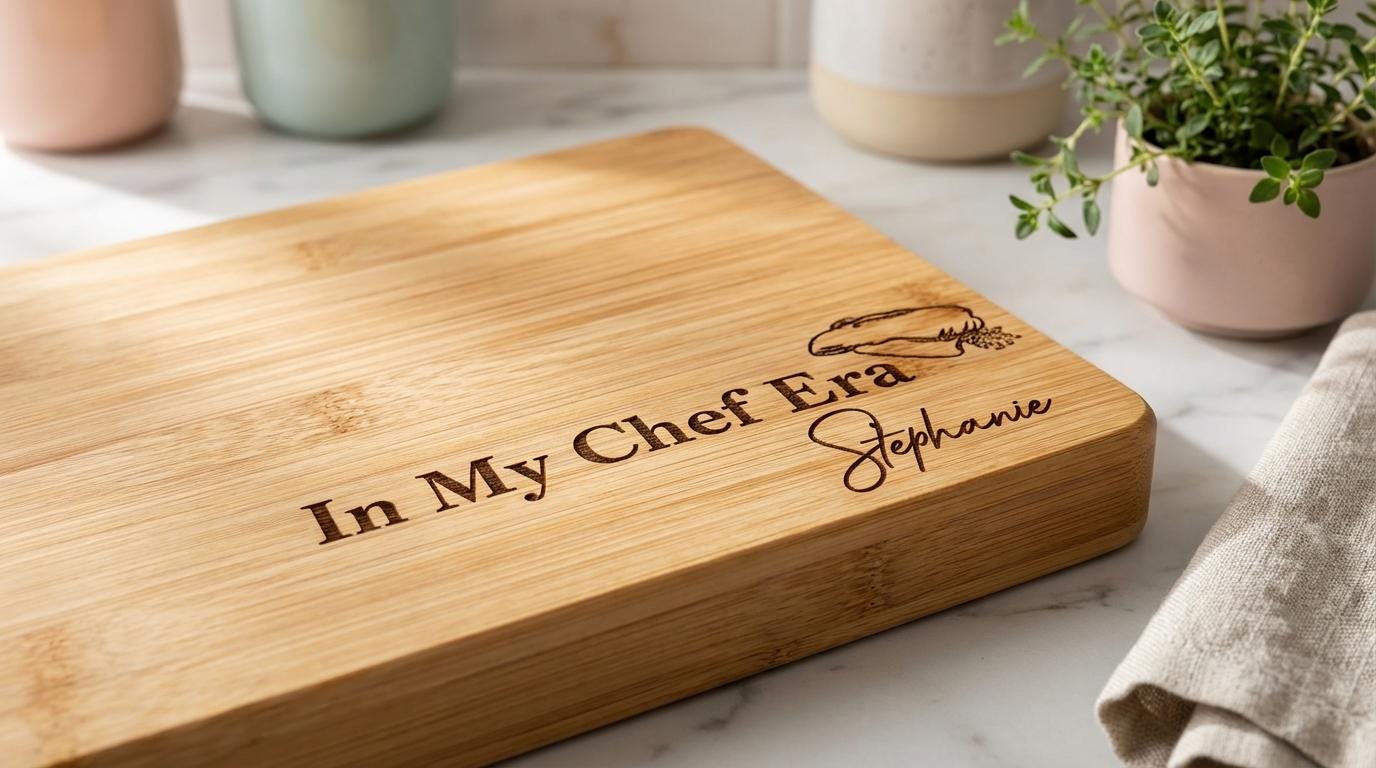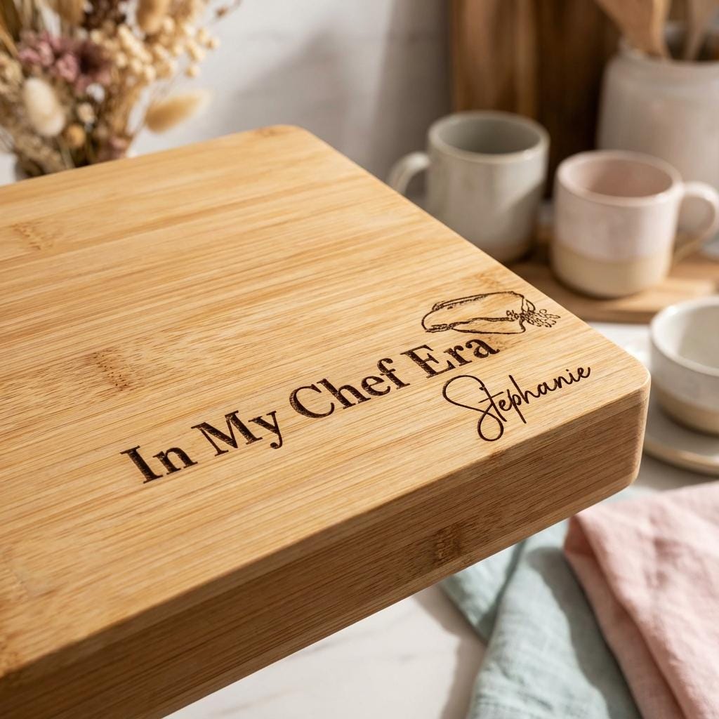 Personalized Chef Cutting Board Set | Custom "In My Chef Era" Bamboo Cheese Platter & Trendy Gift for Her