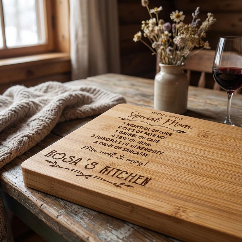 Celebrate the ingredients that make her amazing—patience, love, and care. This custom-engraved bamboo board is more than just a kitchen tool; it is a heartfelt tribute to the woman who holds the family together. Whether for Mother's Day, her birthday, or just to say "I love you," this keepsake is a gift she will display with pride.