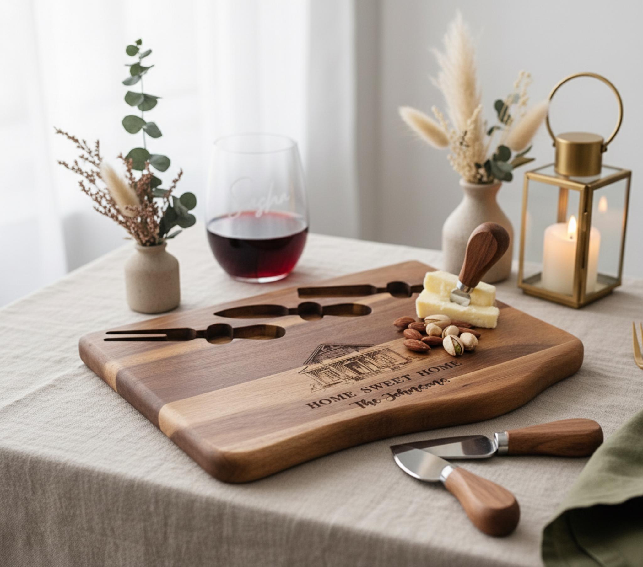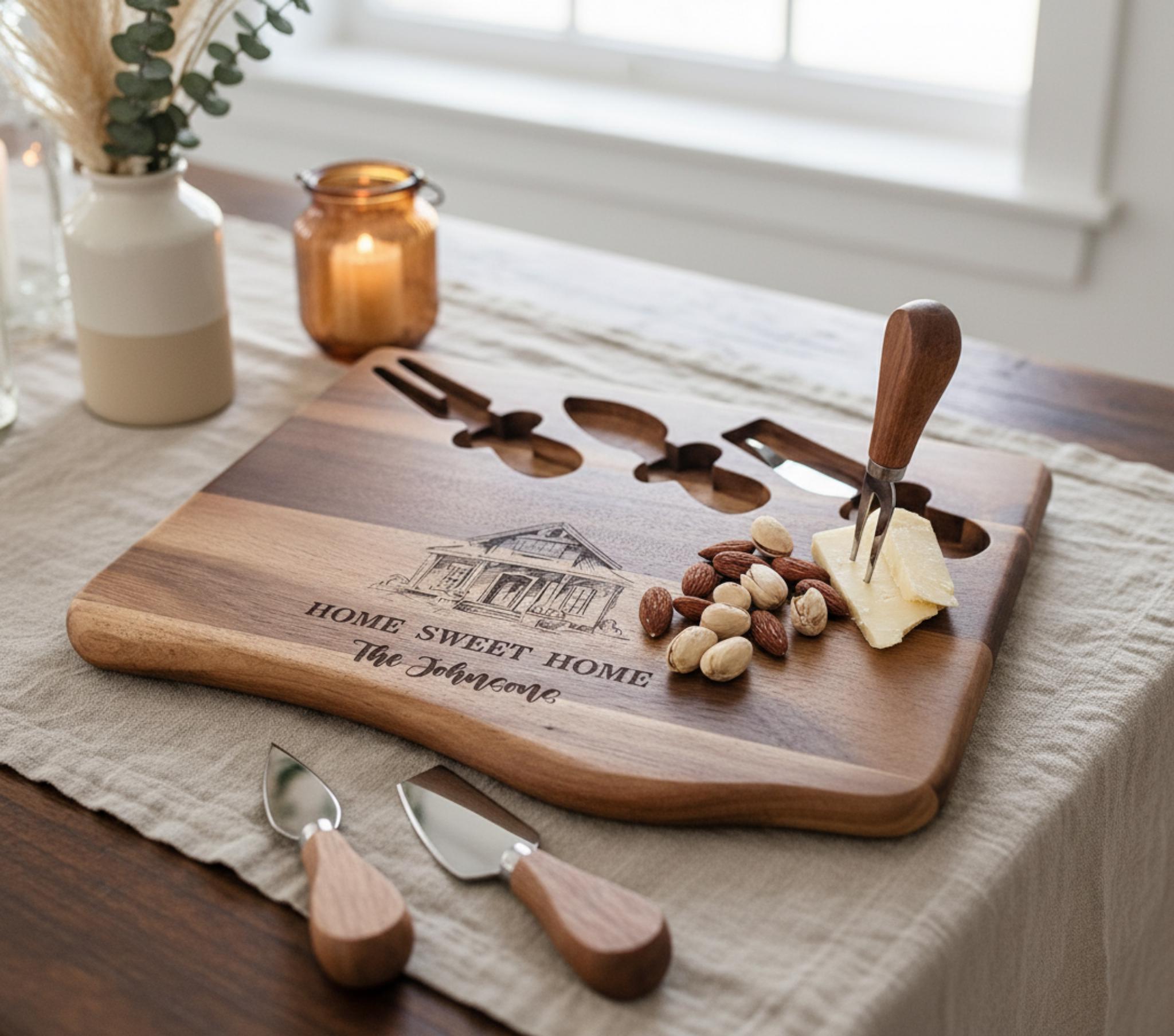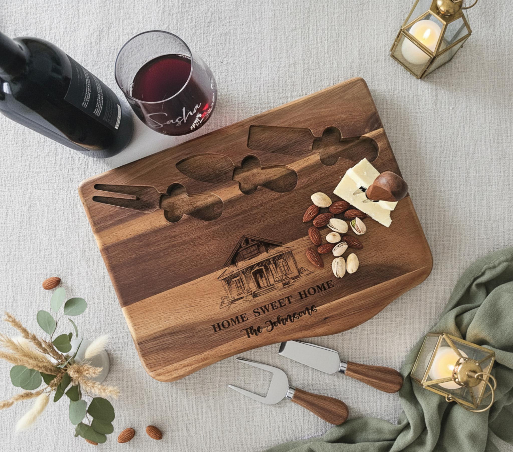 Order your personalized "Home Sweet Home" cheese board today! A stylish and lasting reminder of their special bond and cherished haven.