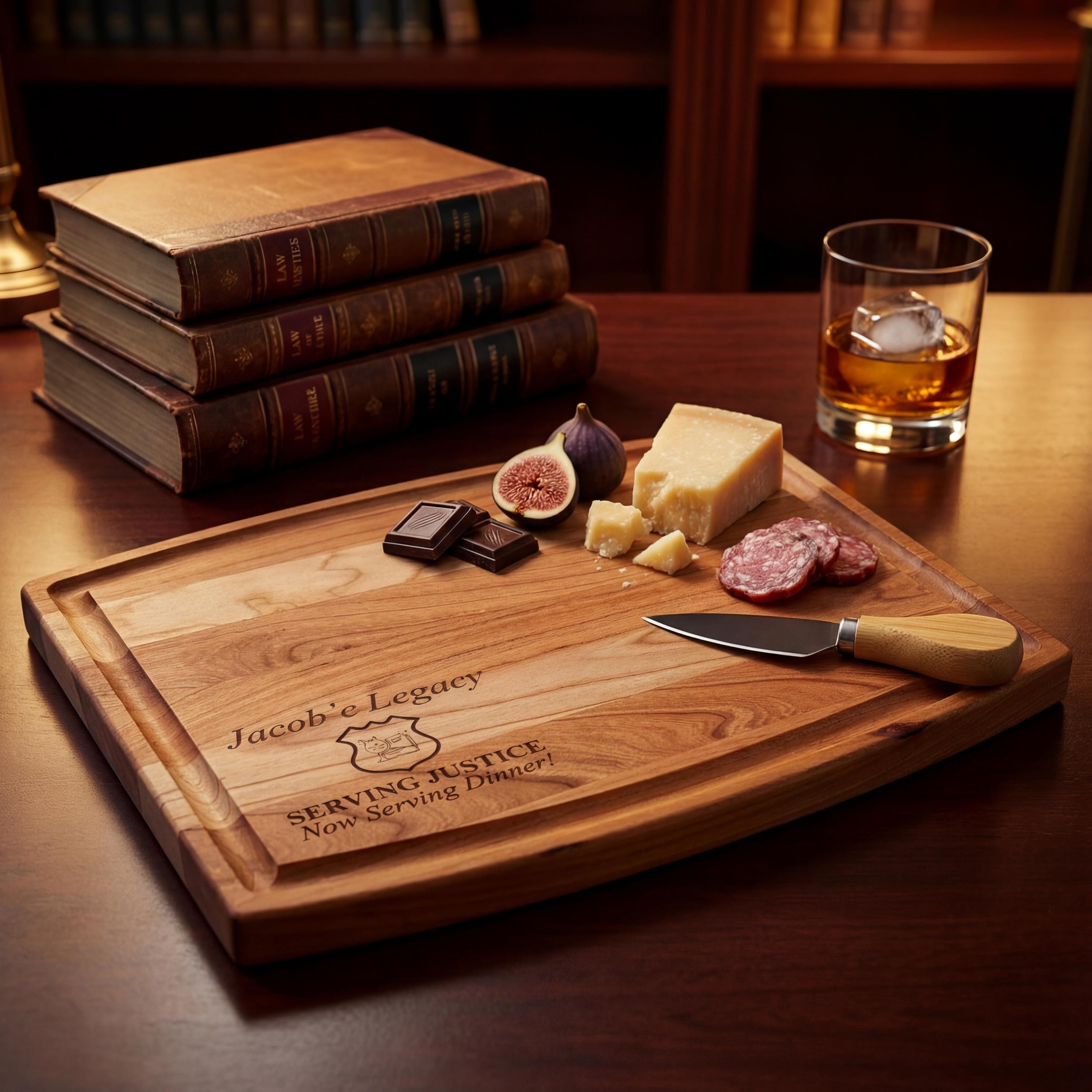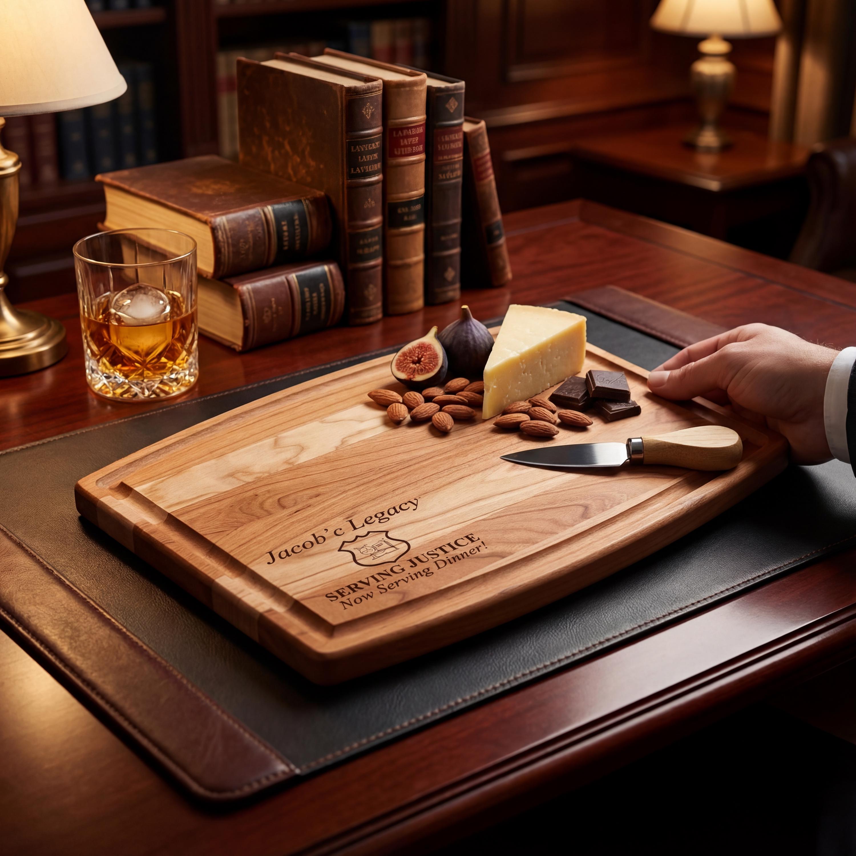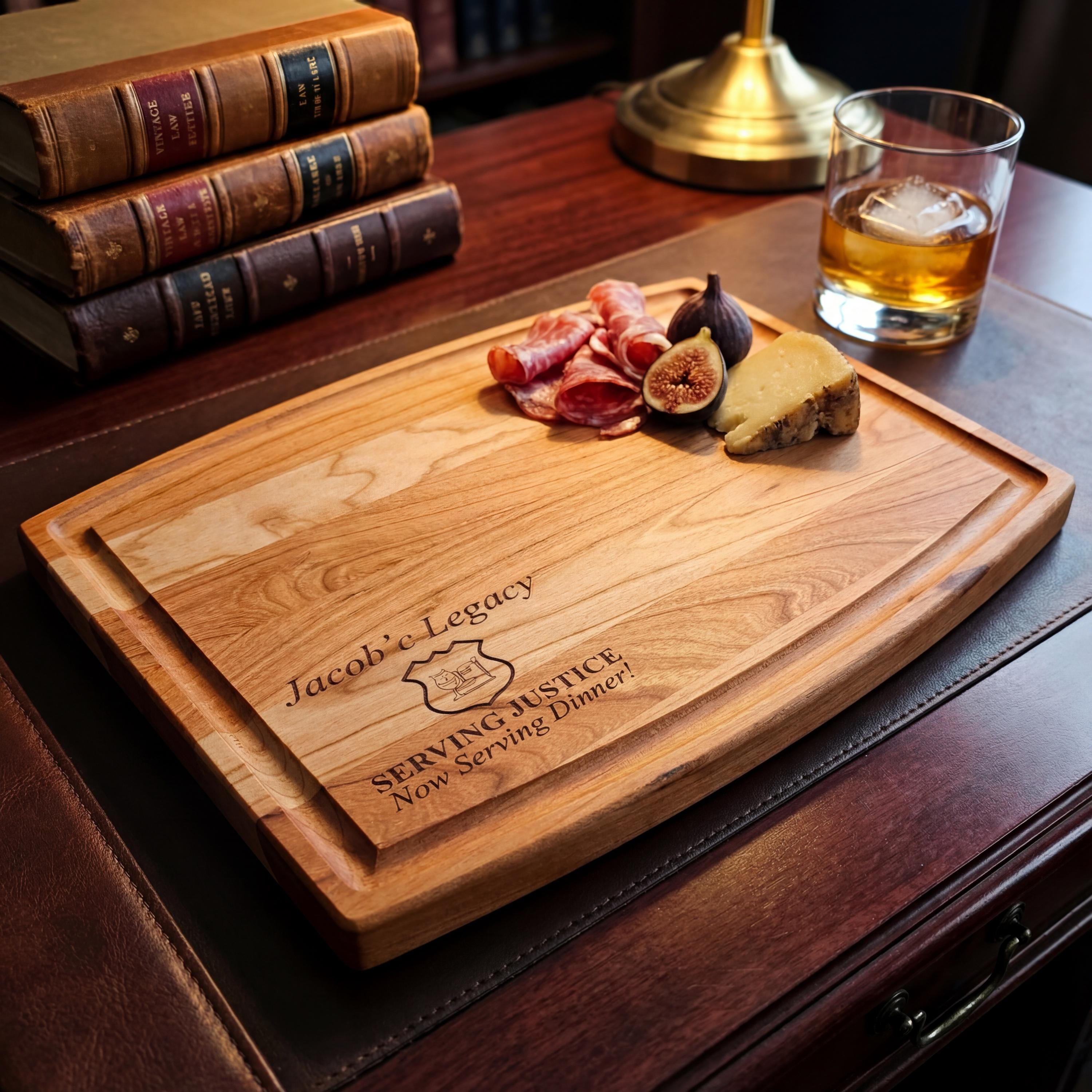 Police Officer Gift | Personalized Cutting Board & "Serving Justice" Retirement Present