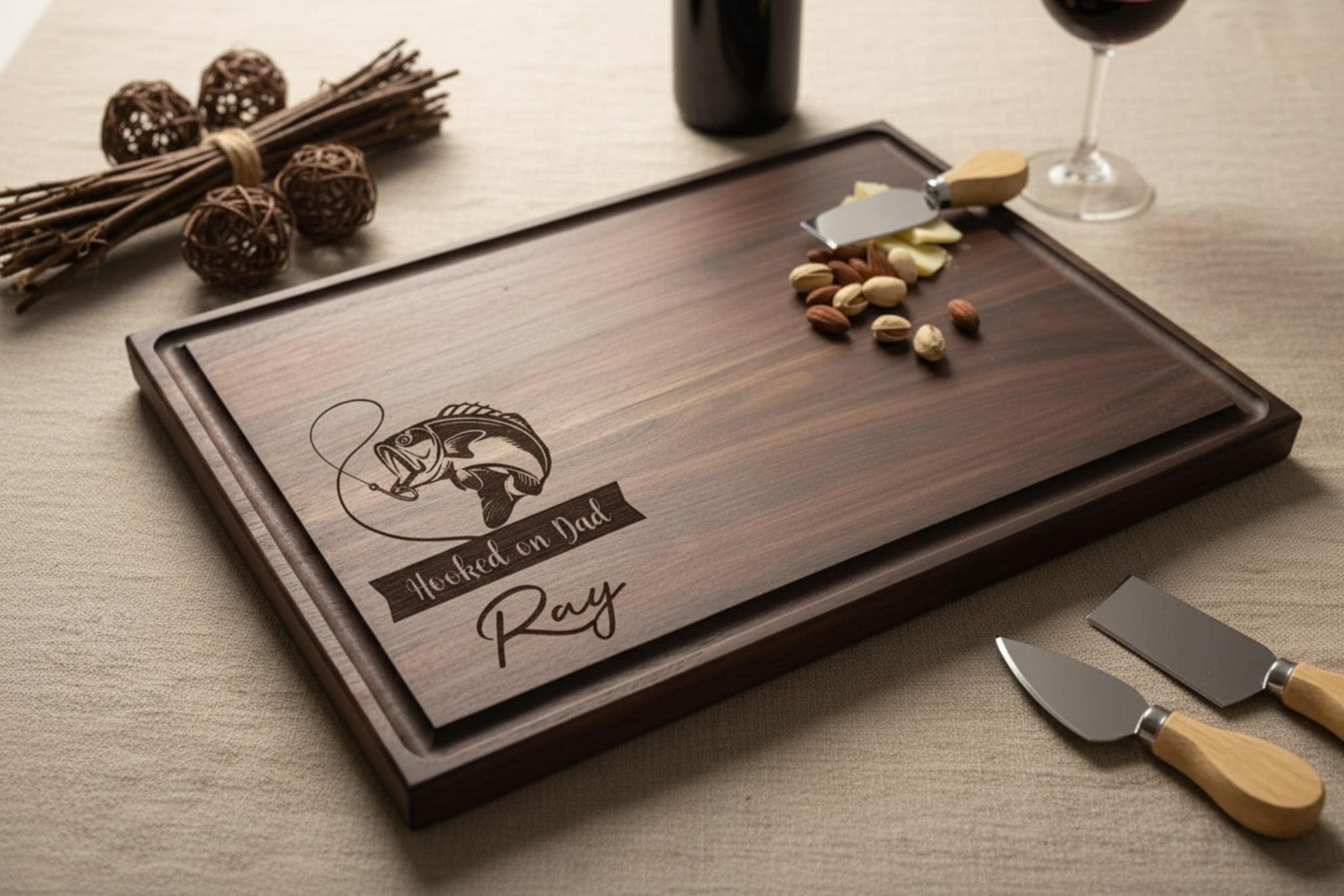 Personalized Cutting Board for Dad – Perfect Father's Day Gift – Engraved with Custom Name for a Unique Touch – Fishing Lover Birthday Gift