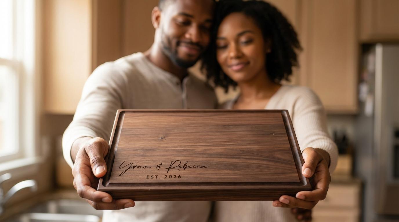Celebrate love and milestones with our Custom Couples Cutting Board—an ideal personalized gift for weddings, housewarmings, Christmas, anniversaries, realtor gifts, and Valentine's Day. Handcrafted from premium Walnut, Cherry, or Acacia wood, this board turns everyday meal prep into a cherished ritual.