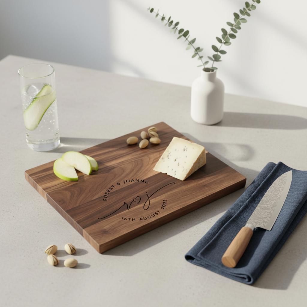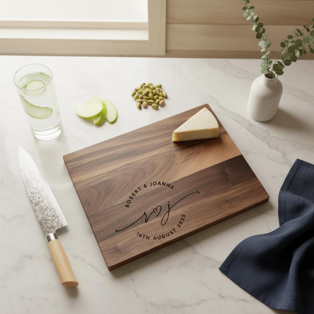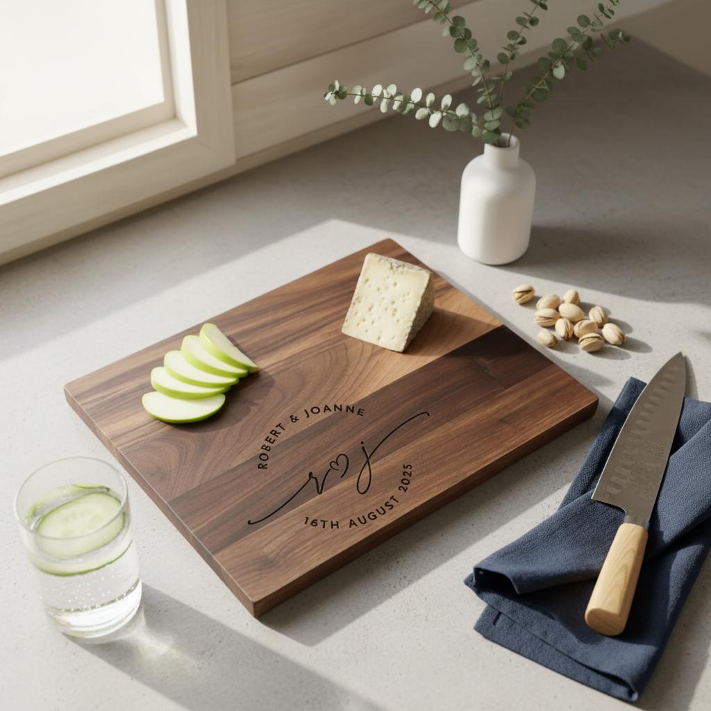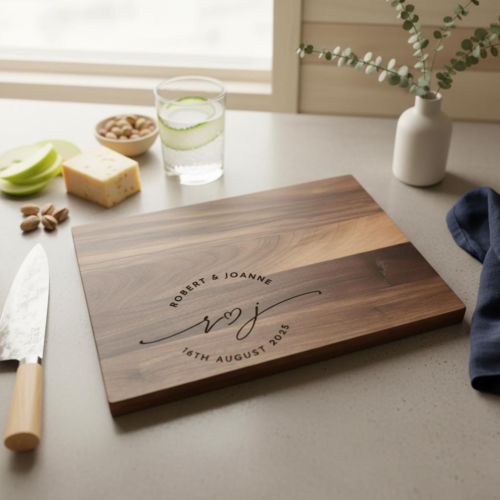 Celebrate love with our Custom Couples Cutting Board—a personalized gift that’s perfect for weddings, anniversaries, housewarmings, Christmas, Valentine's Day, and as a thoughtful realtor gift. Handcrafted from premium Walnut, Cherry, or Acacia wood, this board turns everyday meal prep into a cherished ritual.