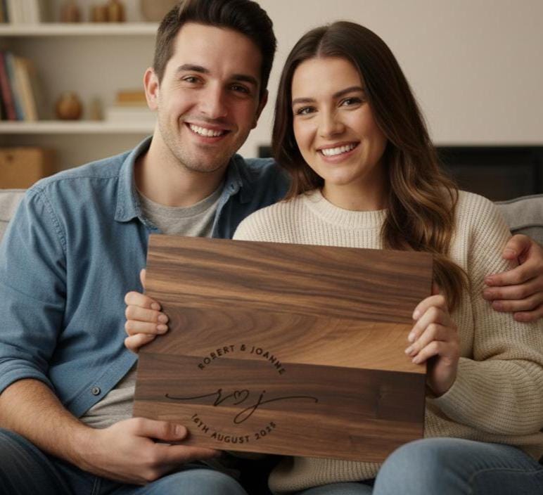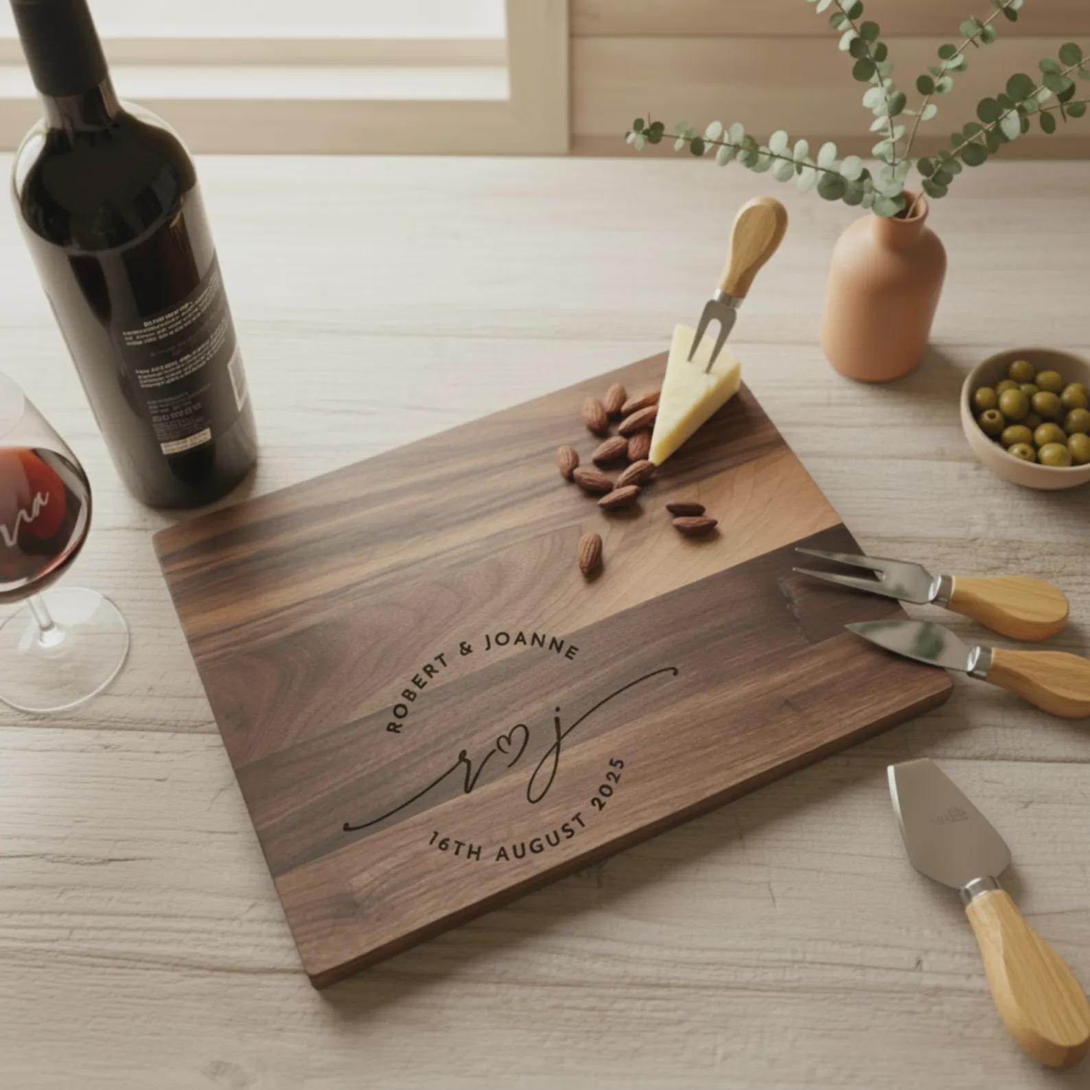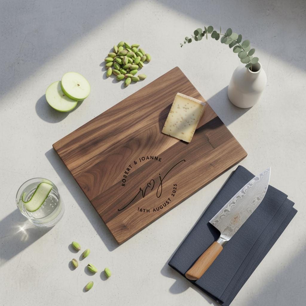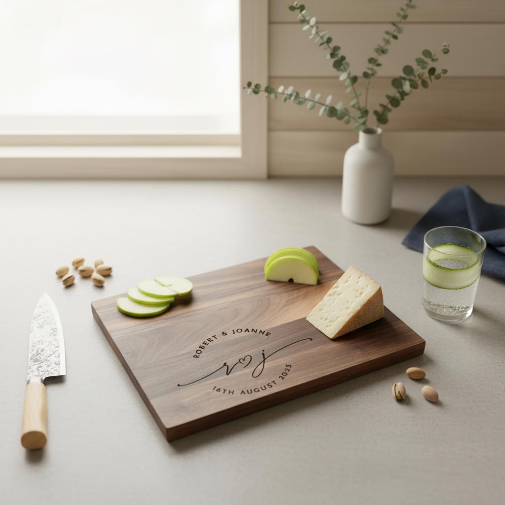 Celebrate love with our Custom Couples Cutting Board—a personalized gift that’s perfect for weddings, anniversaries, housewarmings, Christmas, Valentine's Day, and as a thoughtful realtor gift. Handcrafted from premium Walnut, Cherry, or Acacia wood, this board turns everyday meal prep into a cherished ritual.