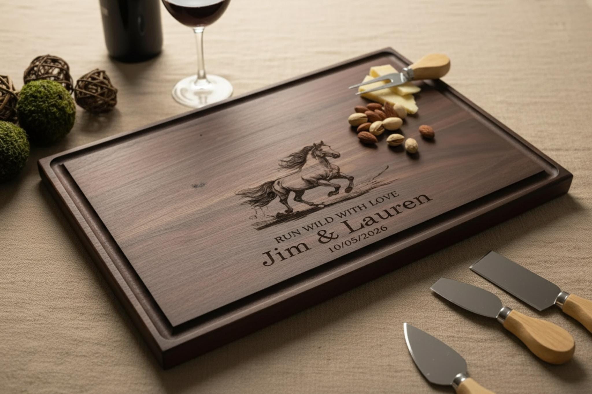 Invite the spirit of freedom and love into your home—order your personalized cutting board today and celebrate the beauty of running wild together.