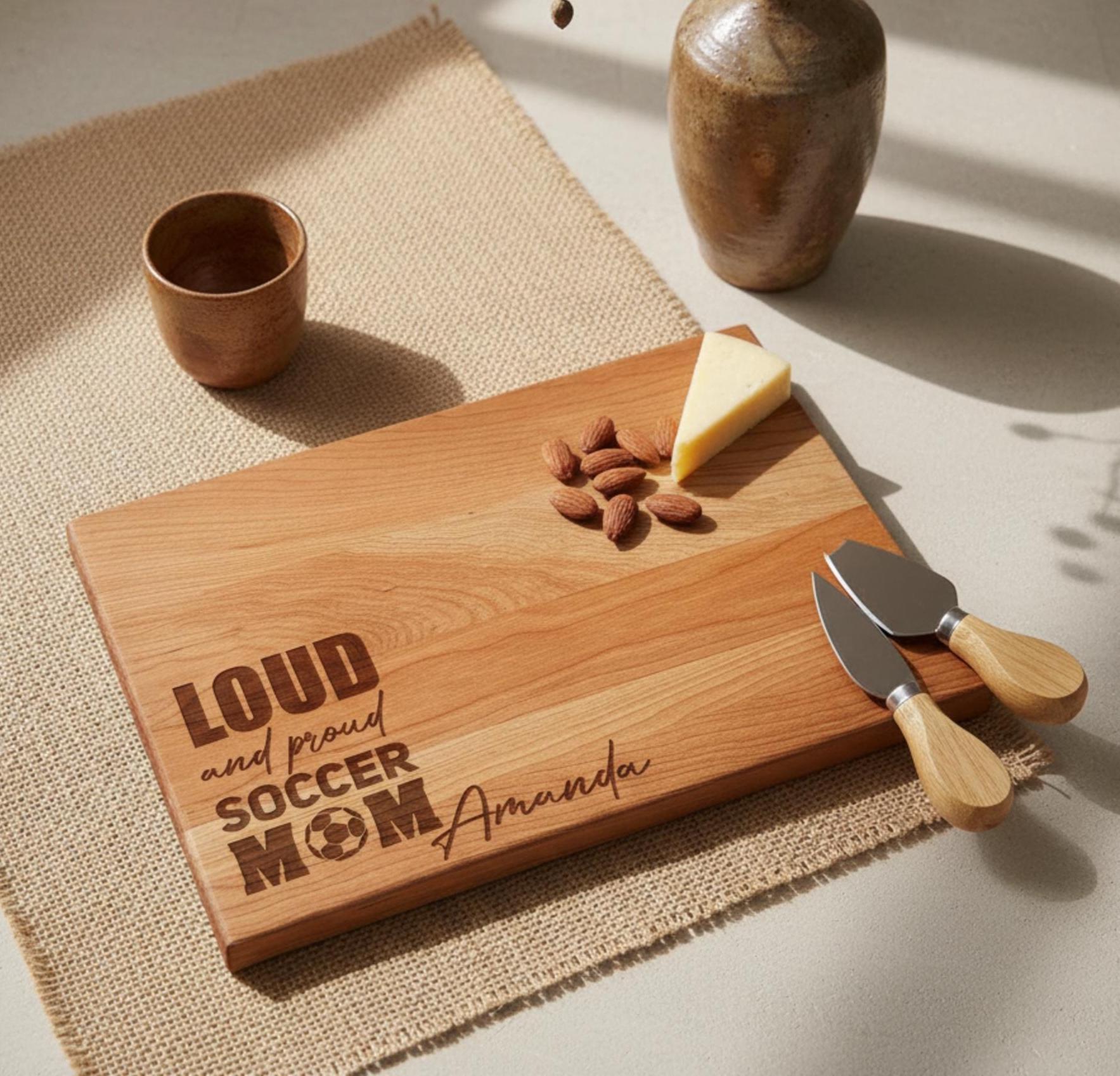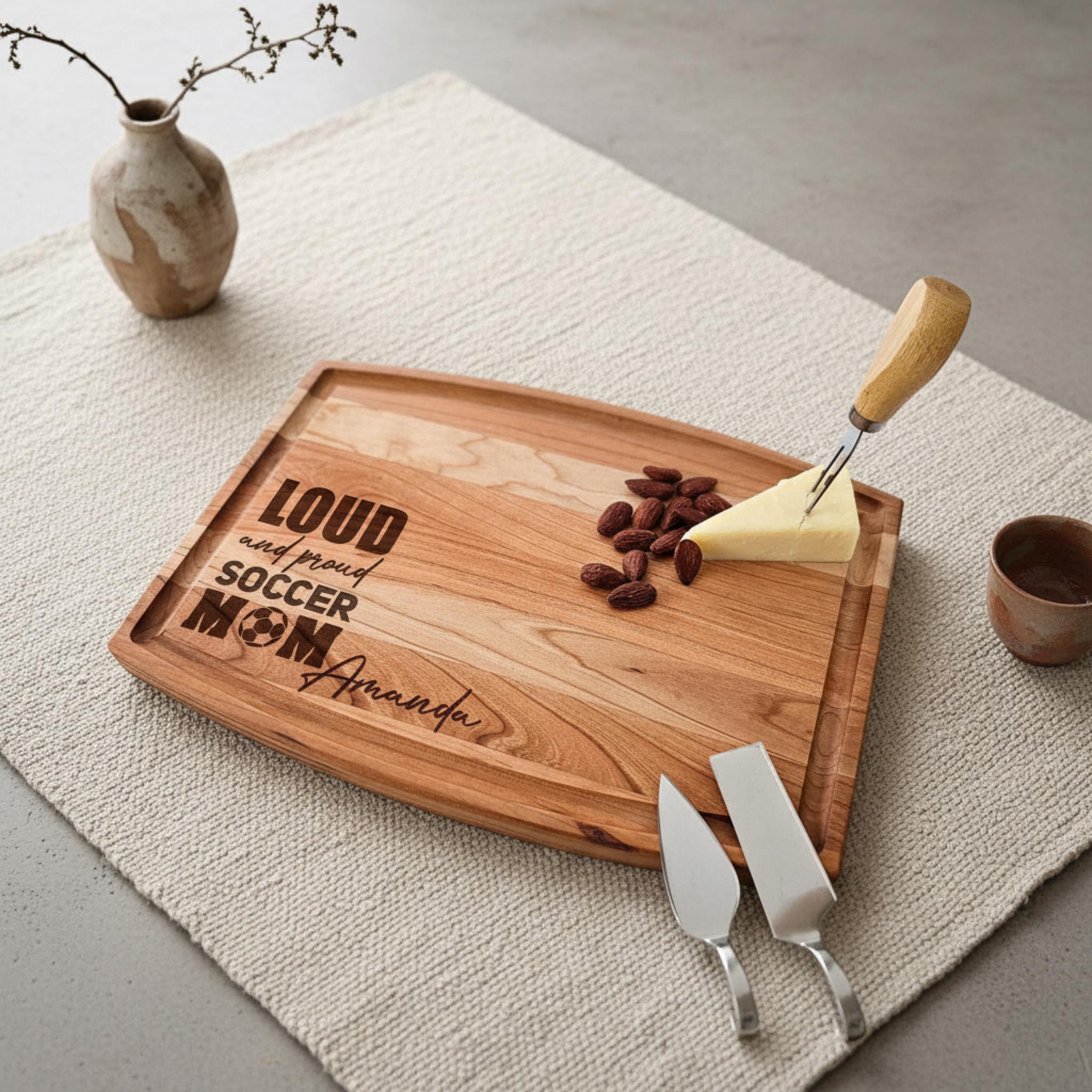 Personalized Cutting Board – Soccer Mom: Custom Engraved Charcuterie Board | Sports Moms, Mother's Day, Birthday Gift, Kitchen Gift