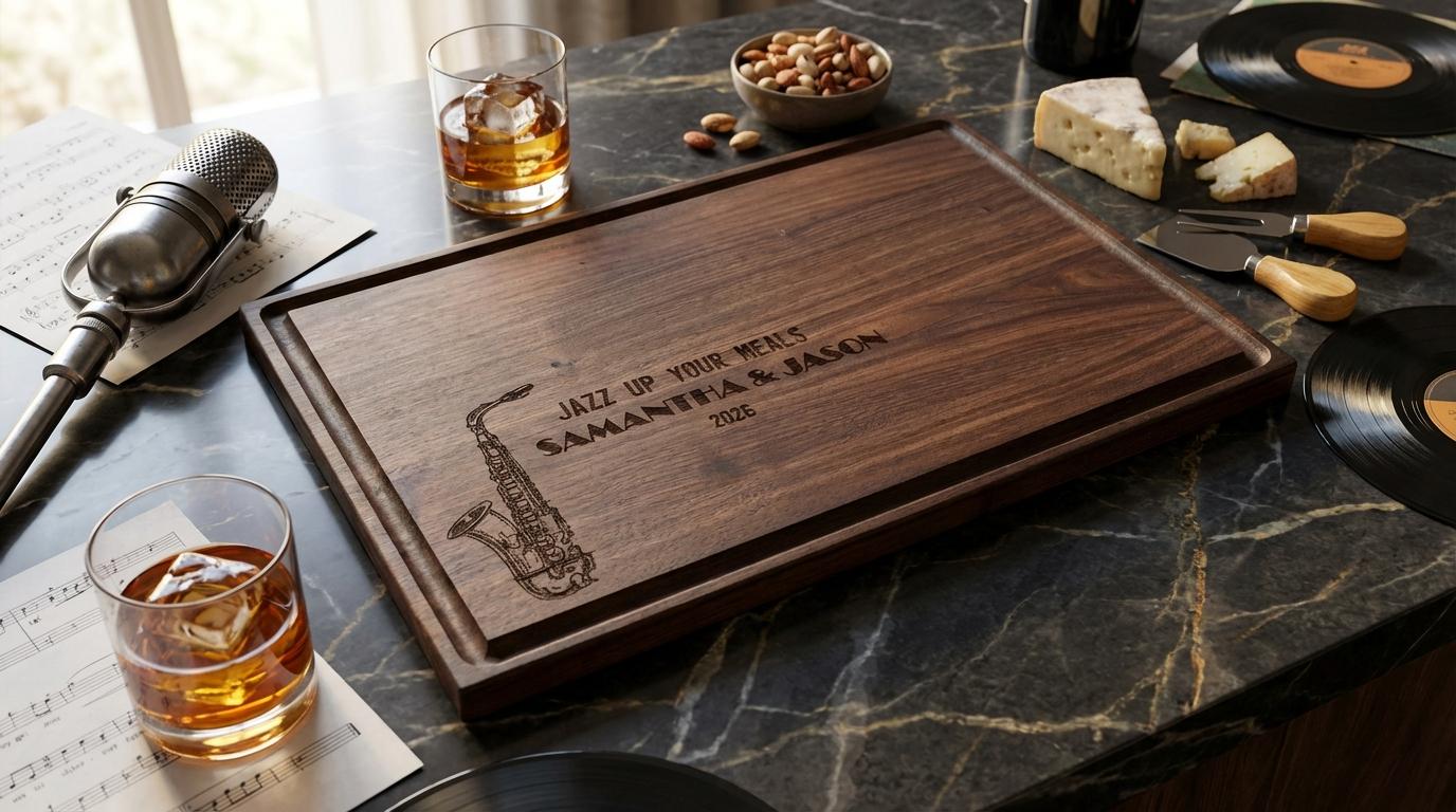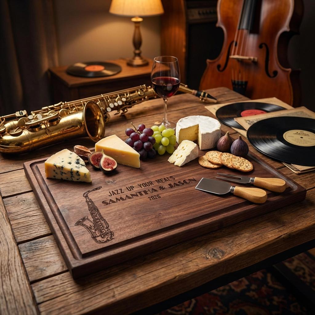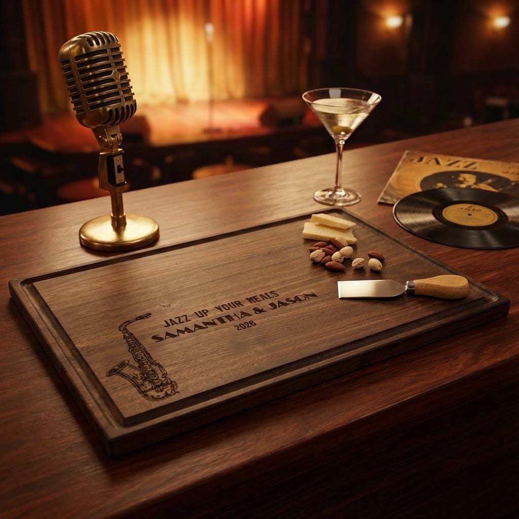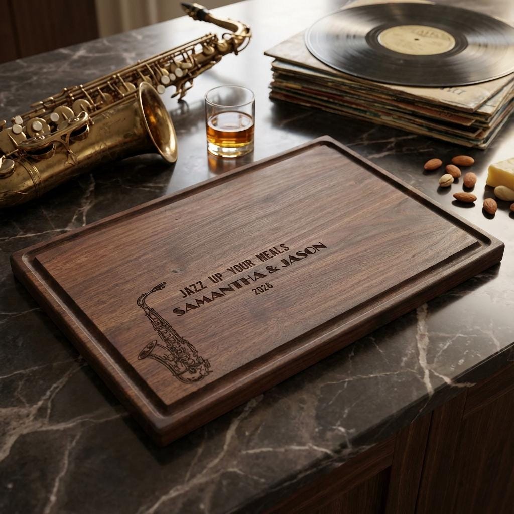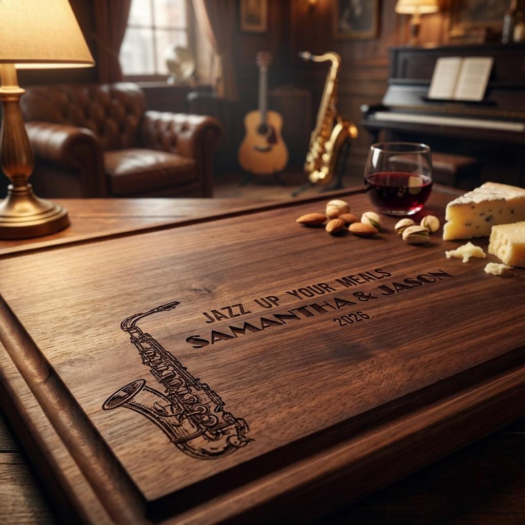 Jazz Lover Gift | Personalized Cutting Board & "Jazz Up Your Meals" Saxophone Present