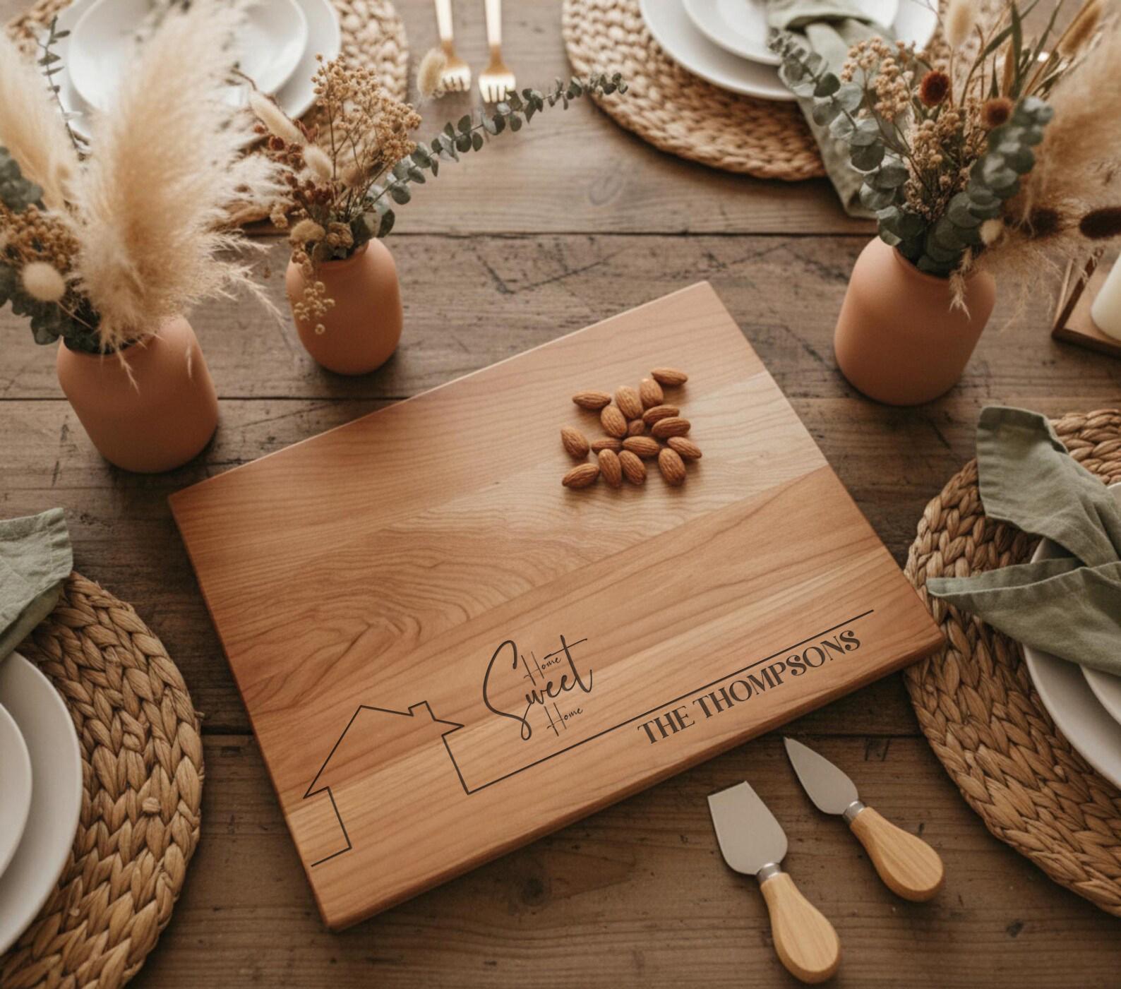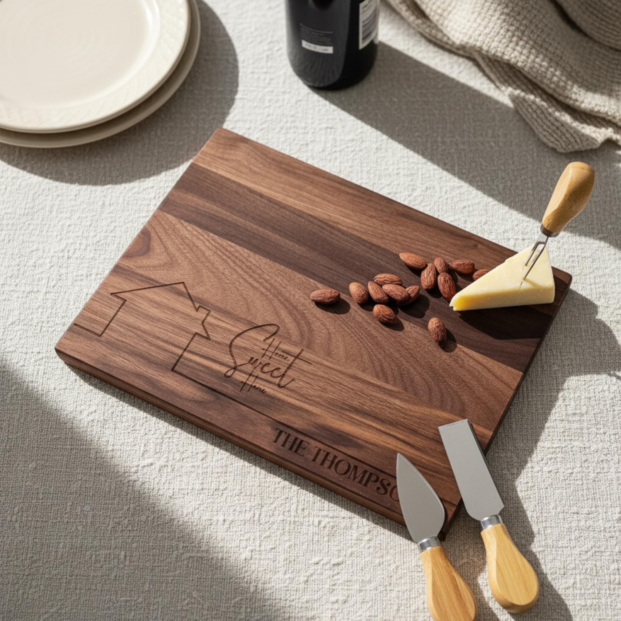 More than just a cutting tool—this engraved board serves as a stylish kitchen piece, perfect for serving, displaying, or welcoming loved ones into a new home.