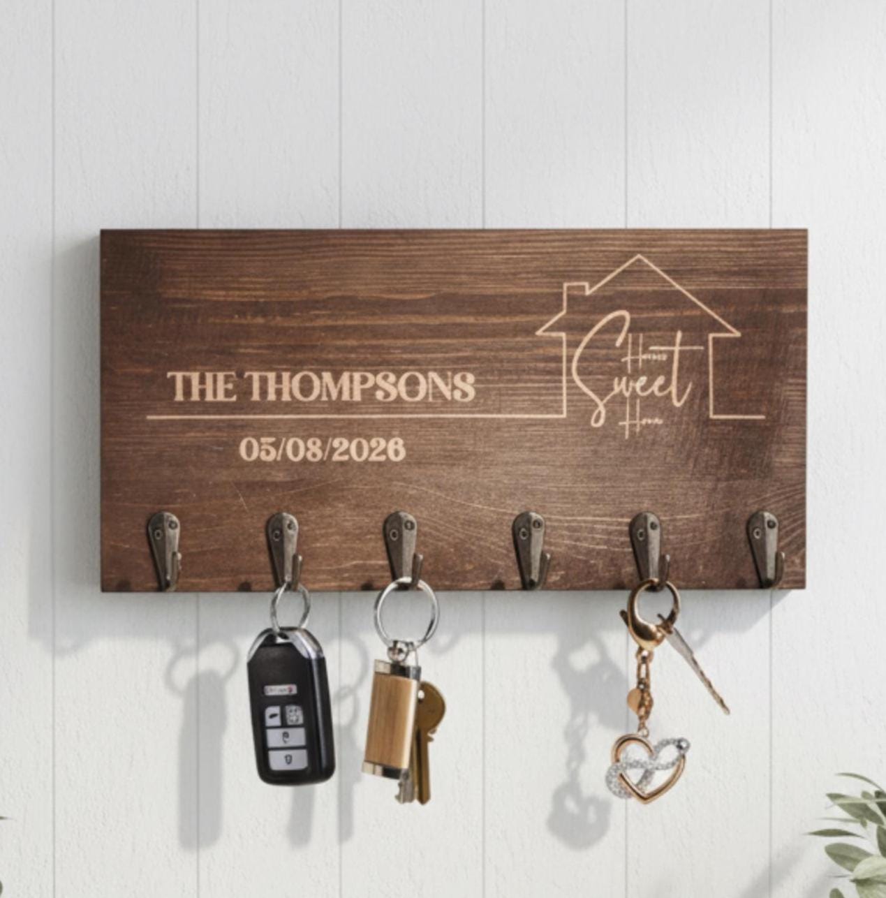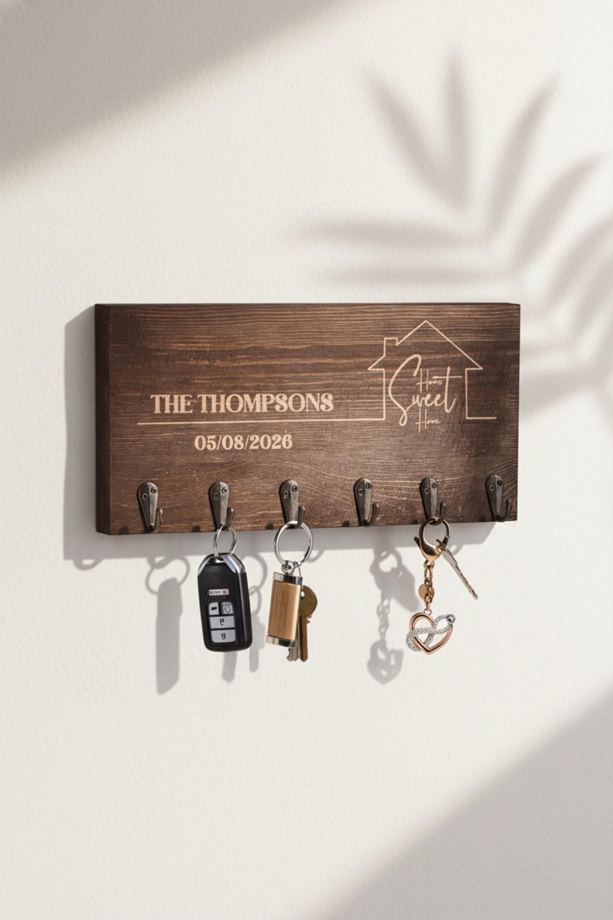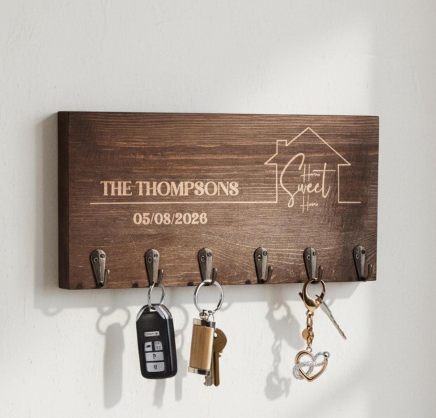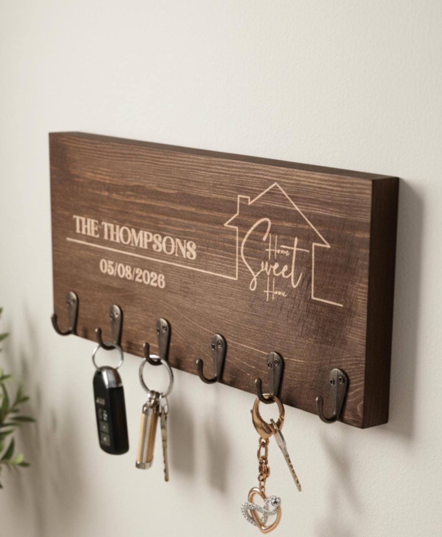Personalized Key Hanger –Home Sweet Home: Custom Engraved Wall Key Holder for Rustic Home Decor, Realtor, Housewarming & Wedding Gift