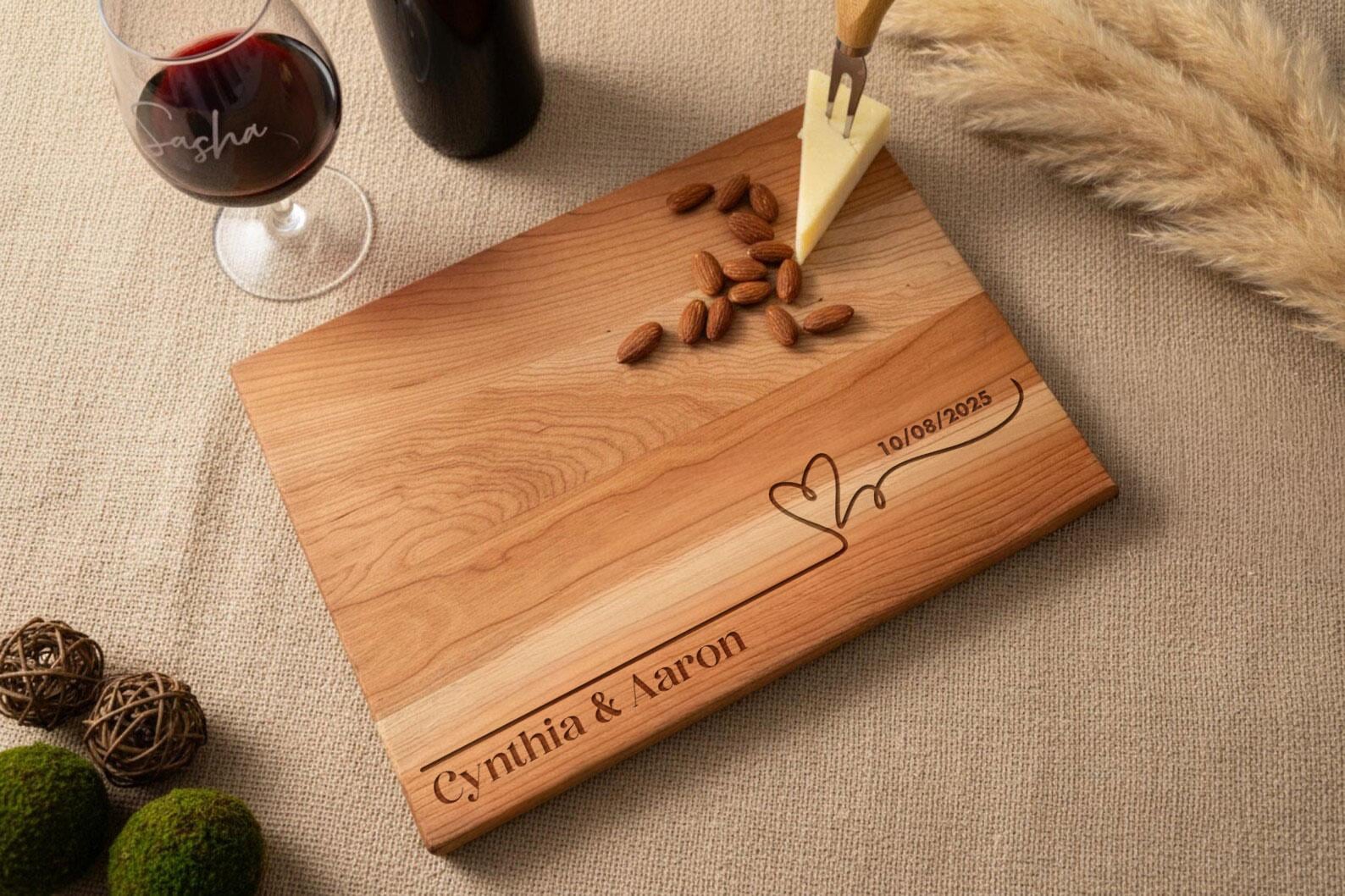 Personalized cutting board – Heart engraved: Customized Charcuterie for Wedding & Anniversary, Ideal Housewarming and Christmas Gift
