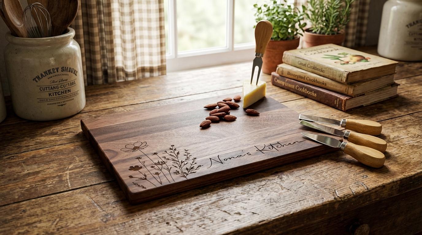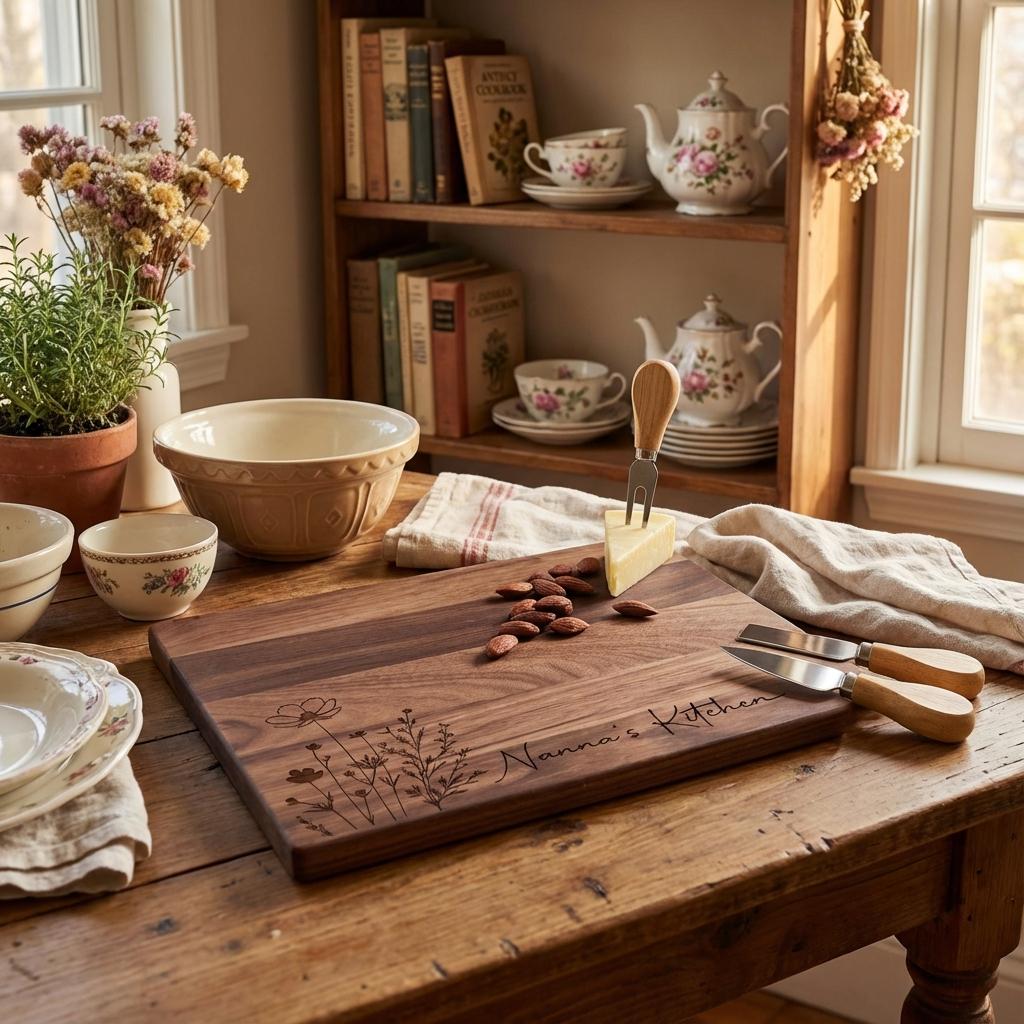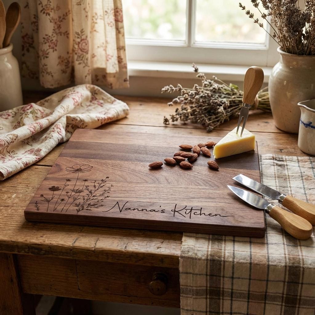 The "Nonna's Kitchen" engraving paired with beautiful flowers celebrates the love, care, and family tradition passed down through generations, making this board the perfect gift for mothers, grandmothers, and family gatherings.