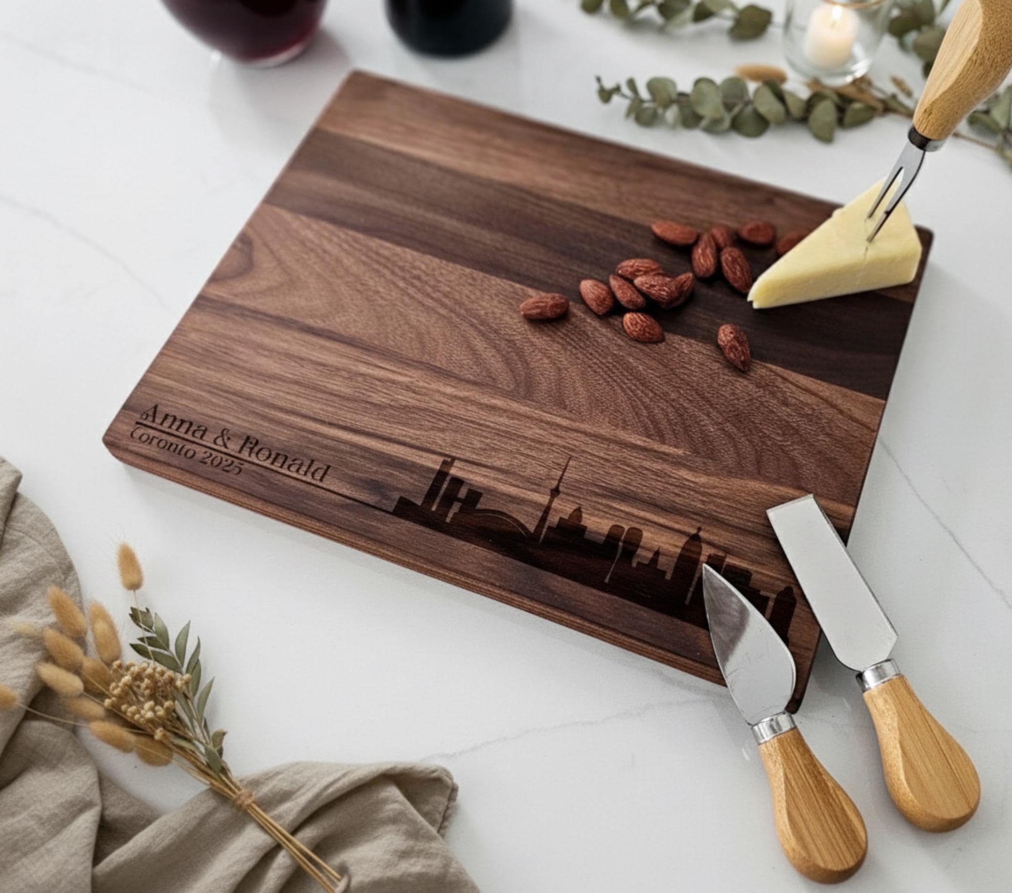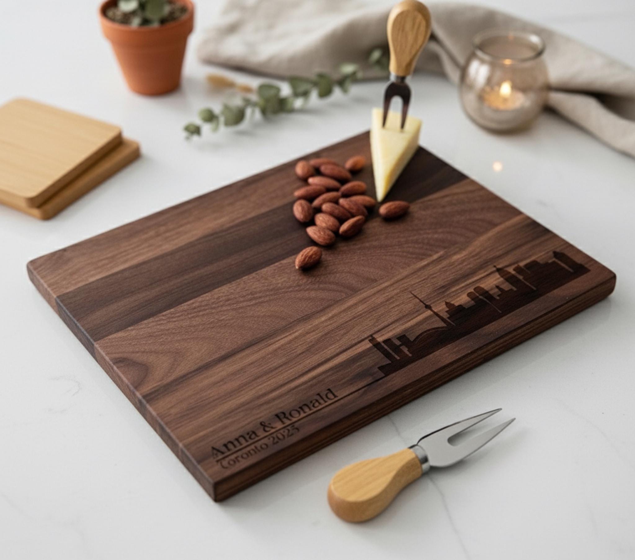 More than just a cutting board, this is a serving platter, a decorative piece, and a symbol of their shared journey. Ideal for everyday use or special occasions. Especially for those who love Toronto!