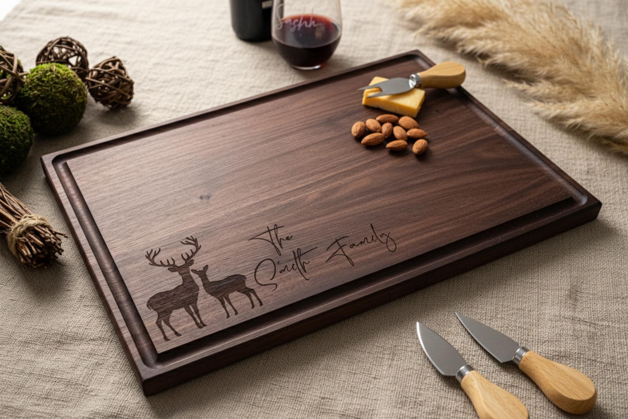 Personalized cutting board, Deer, Buck: Custom Engraved Charcuterie Board, Family Gift, Housewarming, Christmas Gift, Nature Lovers Gift