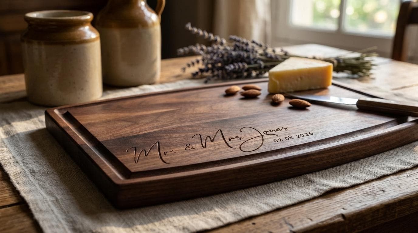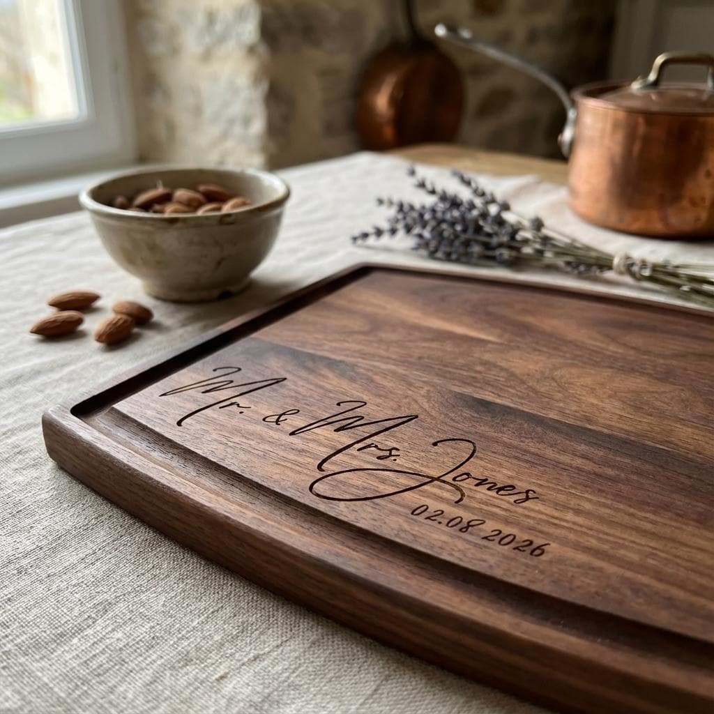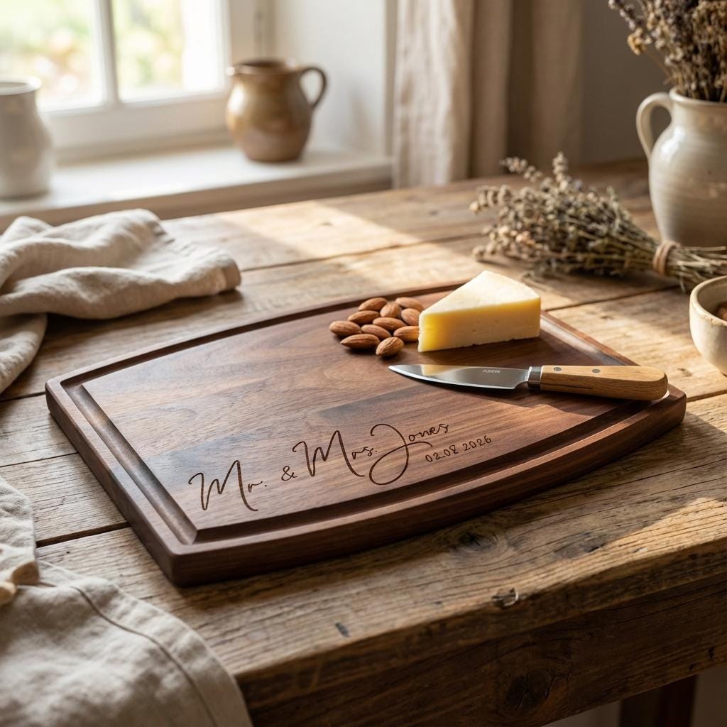 Celebrate love and milestones with our Custom Couples Cutting Board—a personalized gift perfect for newlyweds, weddings, housewarming gifts, families, and anniversaries. Handcrafted from premium Walnut, Cherry, or Acacia wood, this board turns everyday meal prep into a cherished ritual.