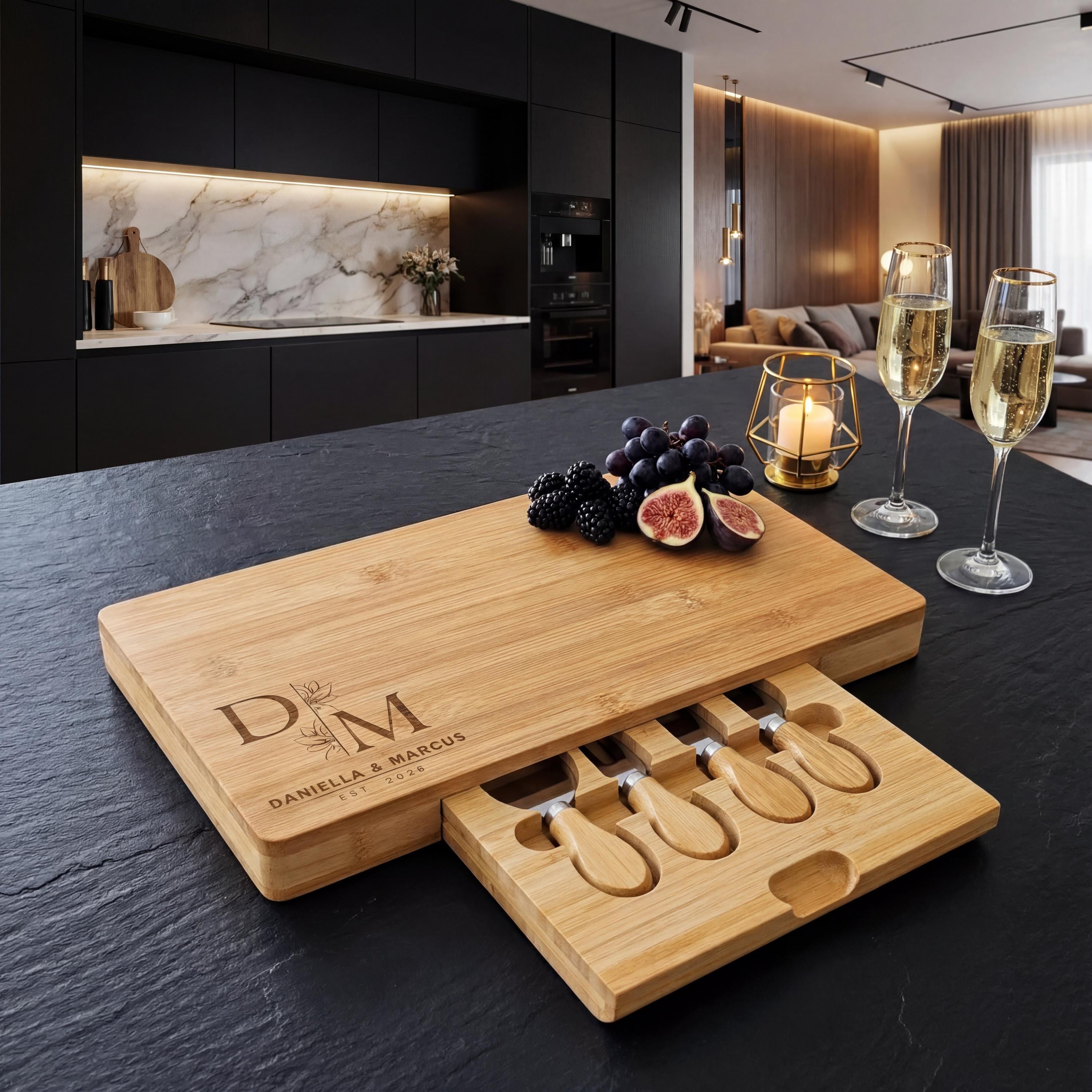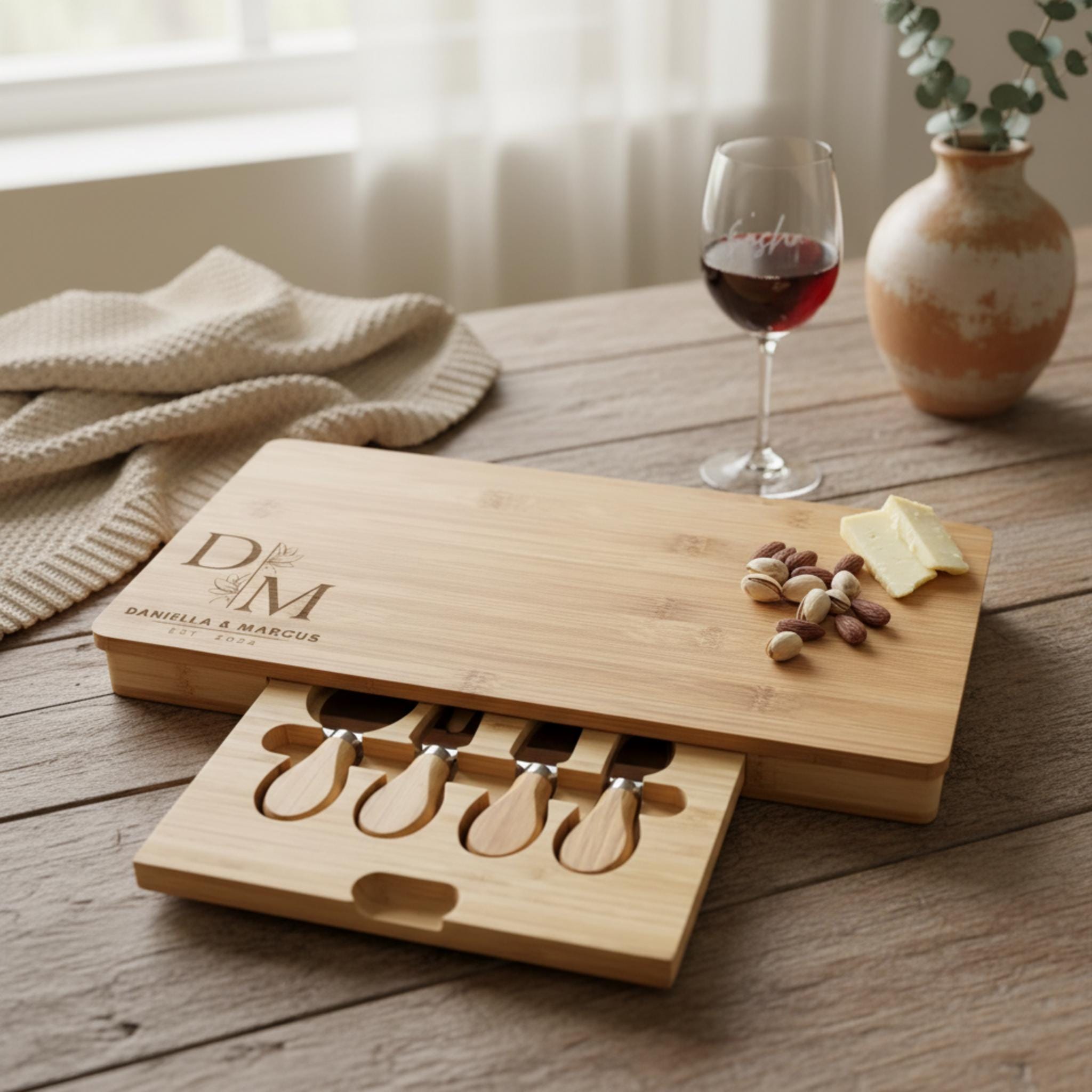 Make your entertaining unforgettable—click "Add to Cart" now to create a custom engraved cheese board that captures your signature style and celebrates your love story!