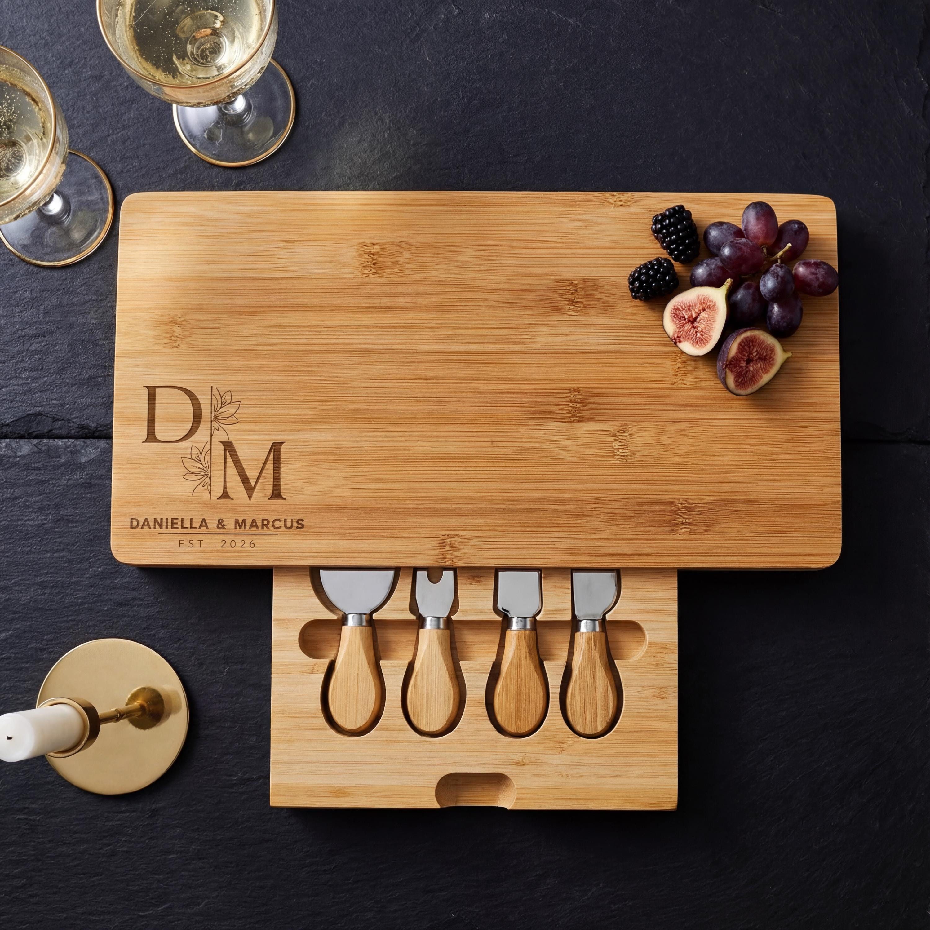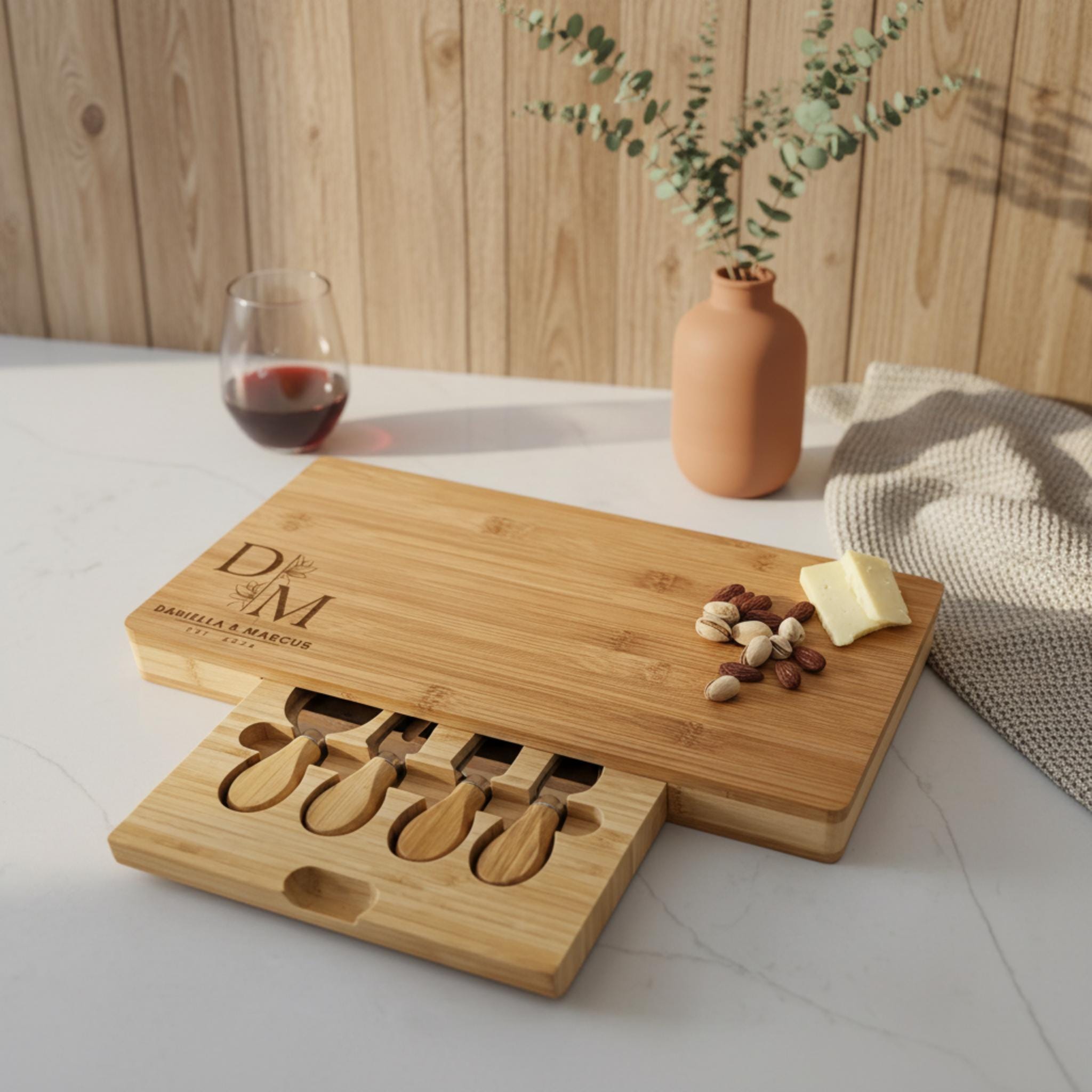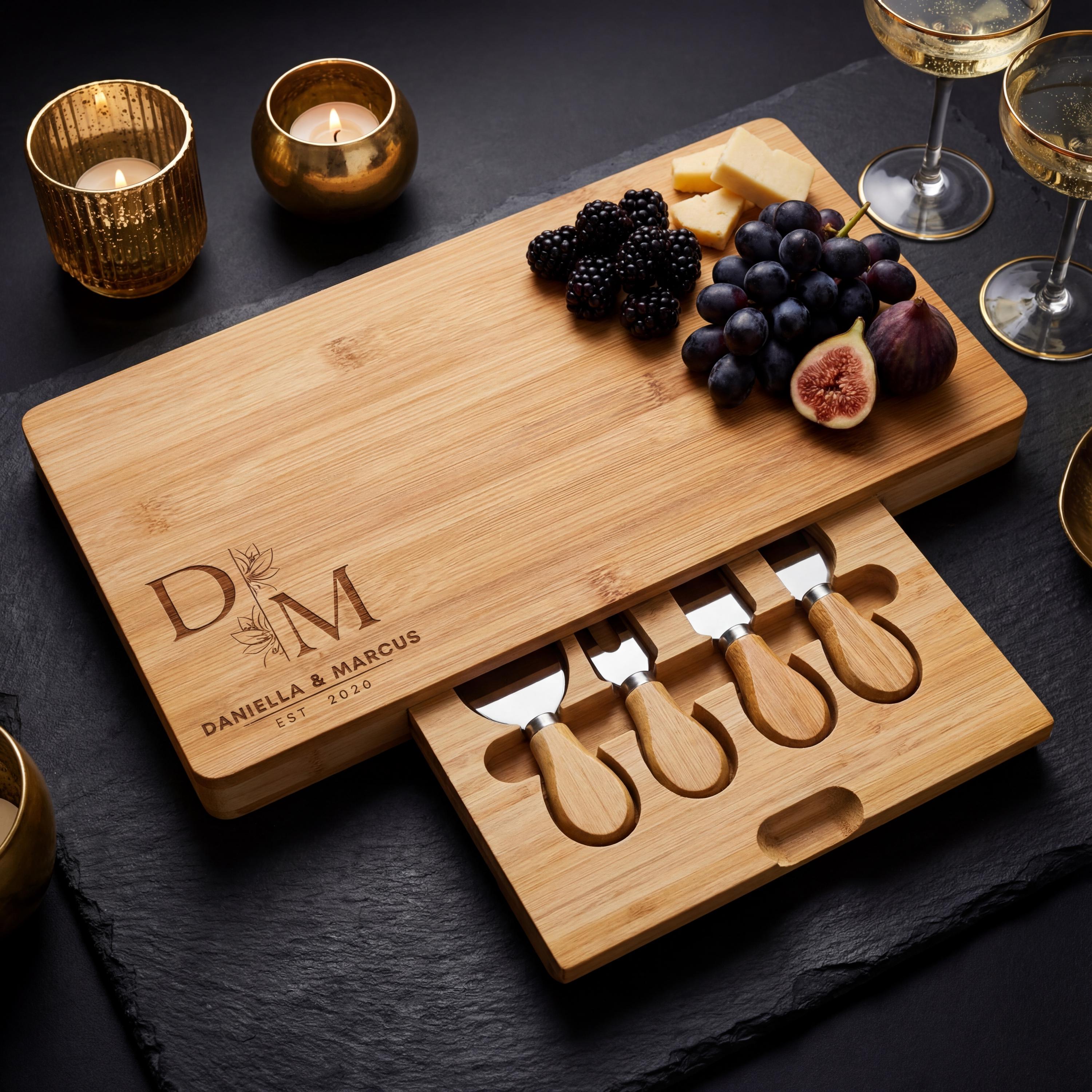 Cheese Board Set: Enjoy the custom engraved cheese board on its own—a stunning centerpiece for any table.