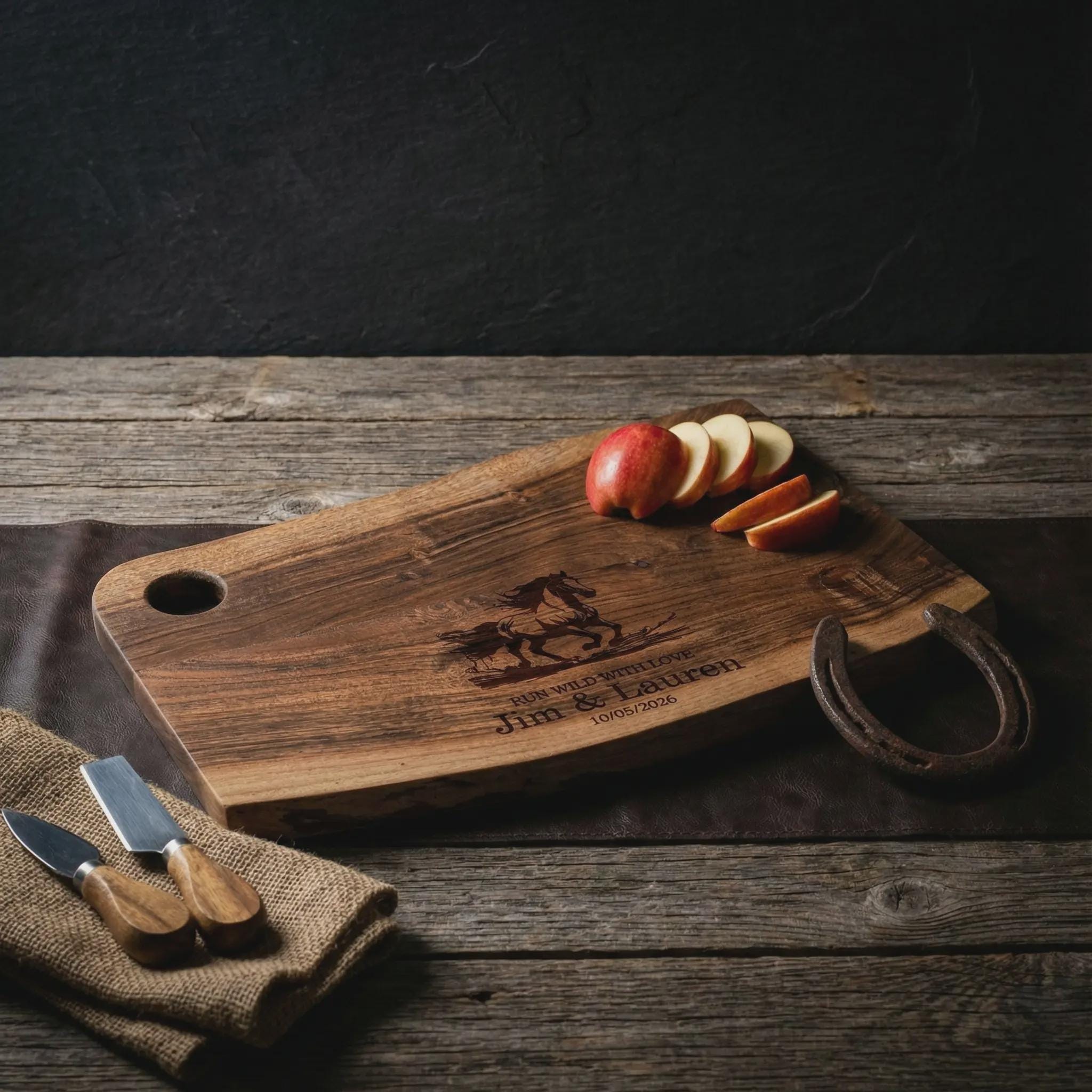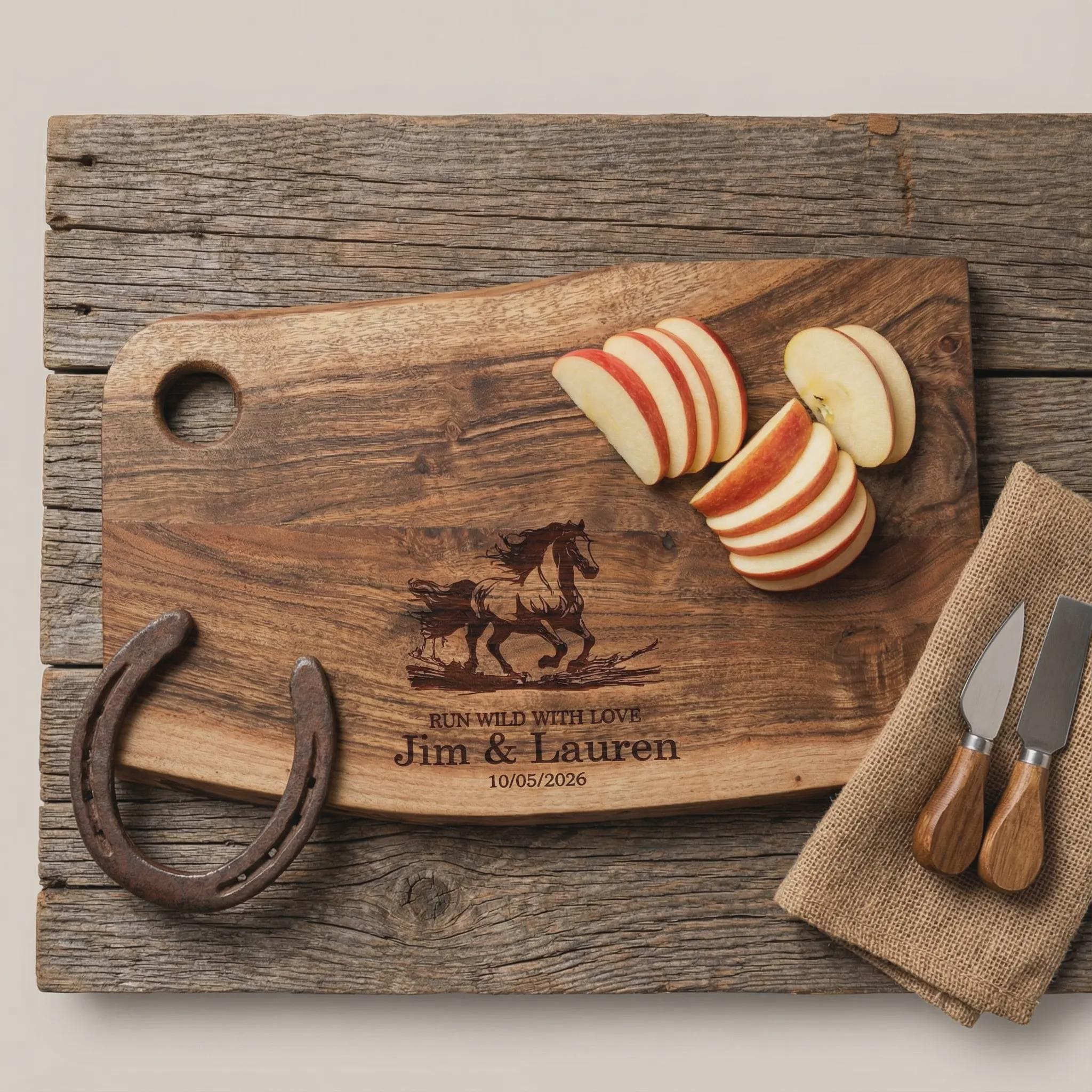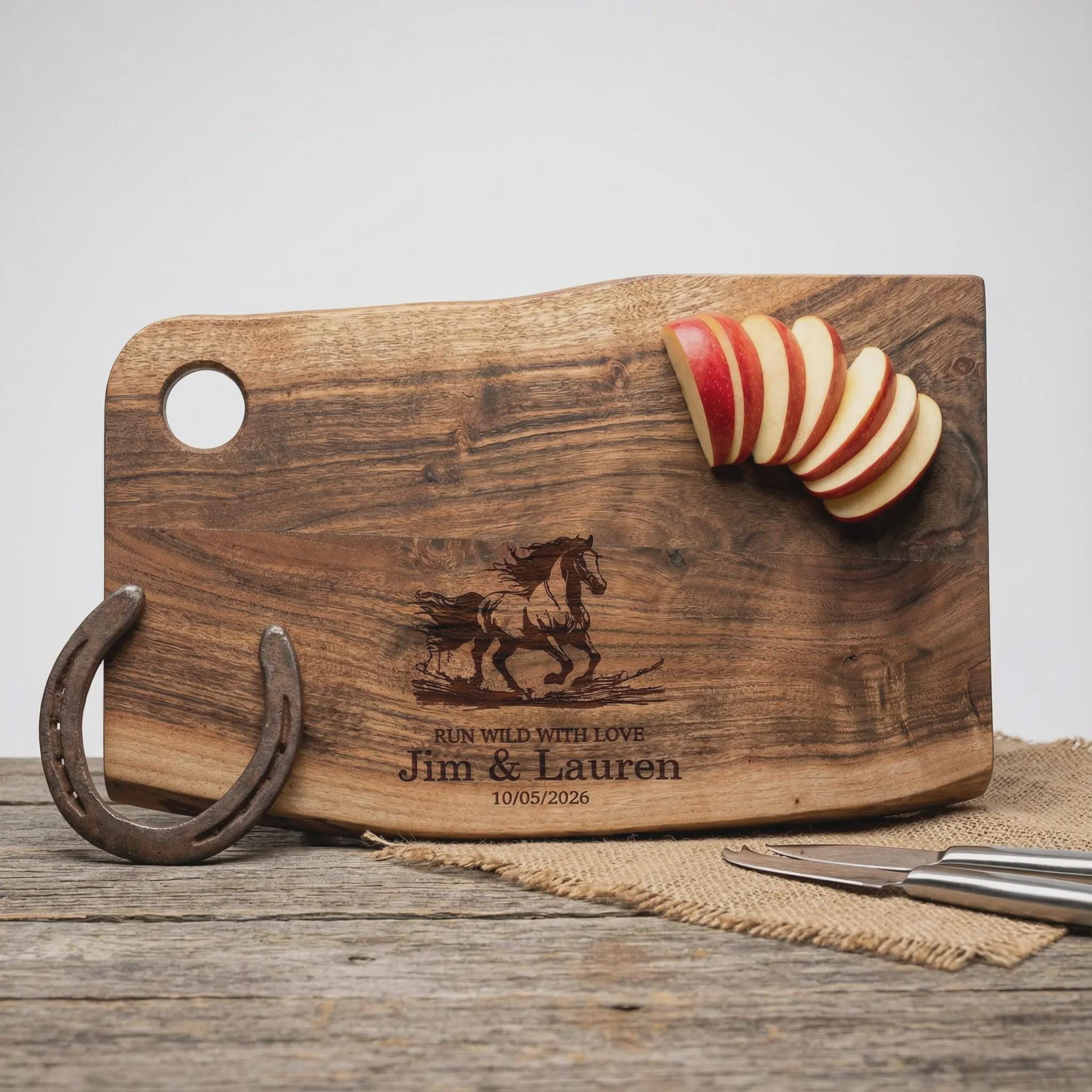 Horse Lover Gift for Couple | Personalized Cutting Board & "Run Wild" Live Edge Ranch Decor