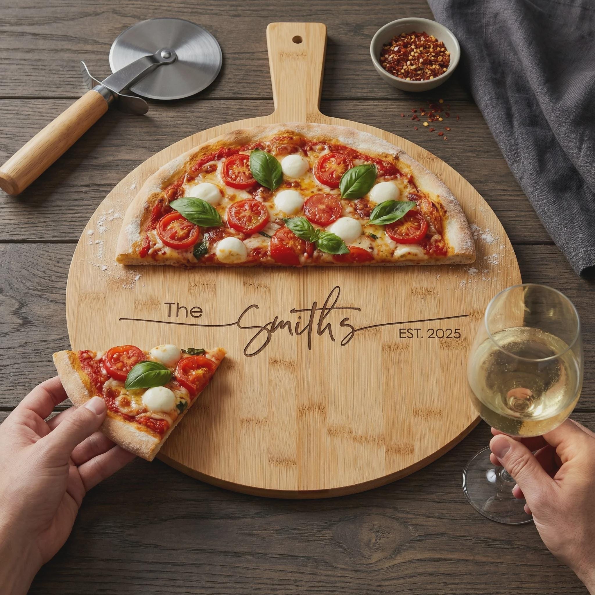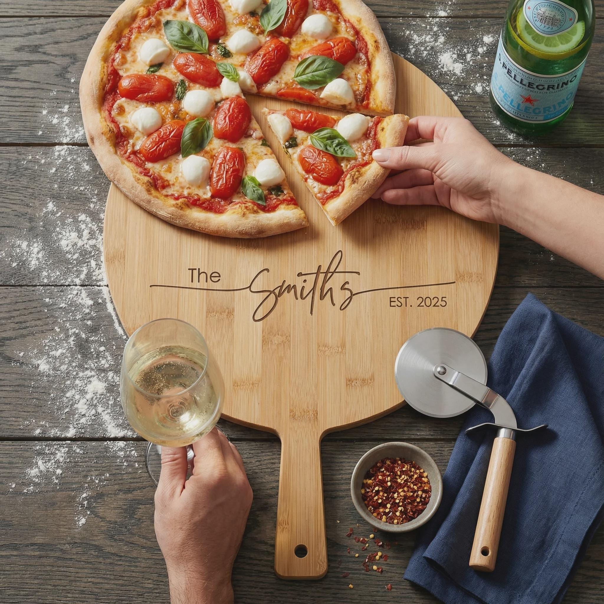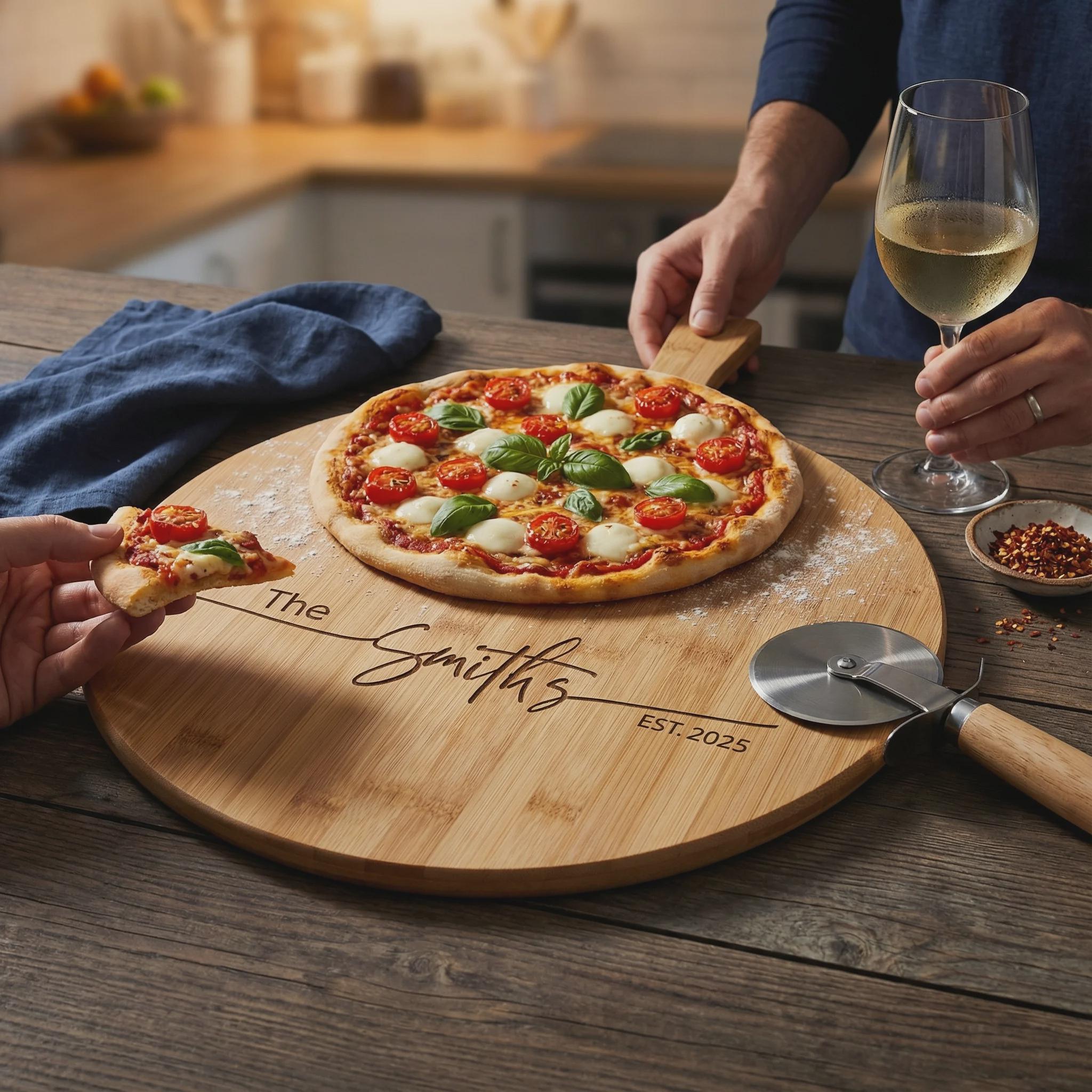 Personalized Pizza Board: Custom-Engraved Bamboo Pizza Peel | Housewarming, Wedding, Kitchen Decor, Hosting, Engagement, Couple Unique Gift