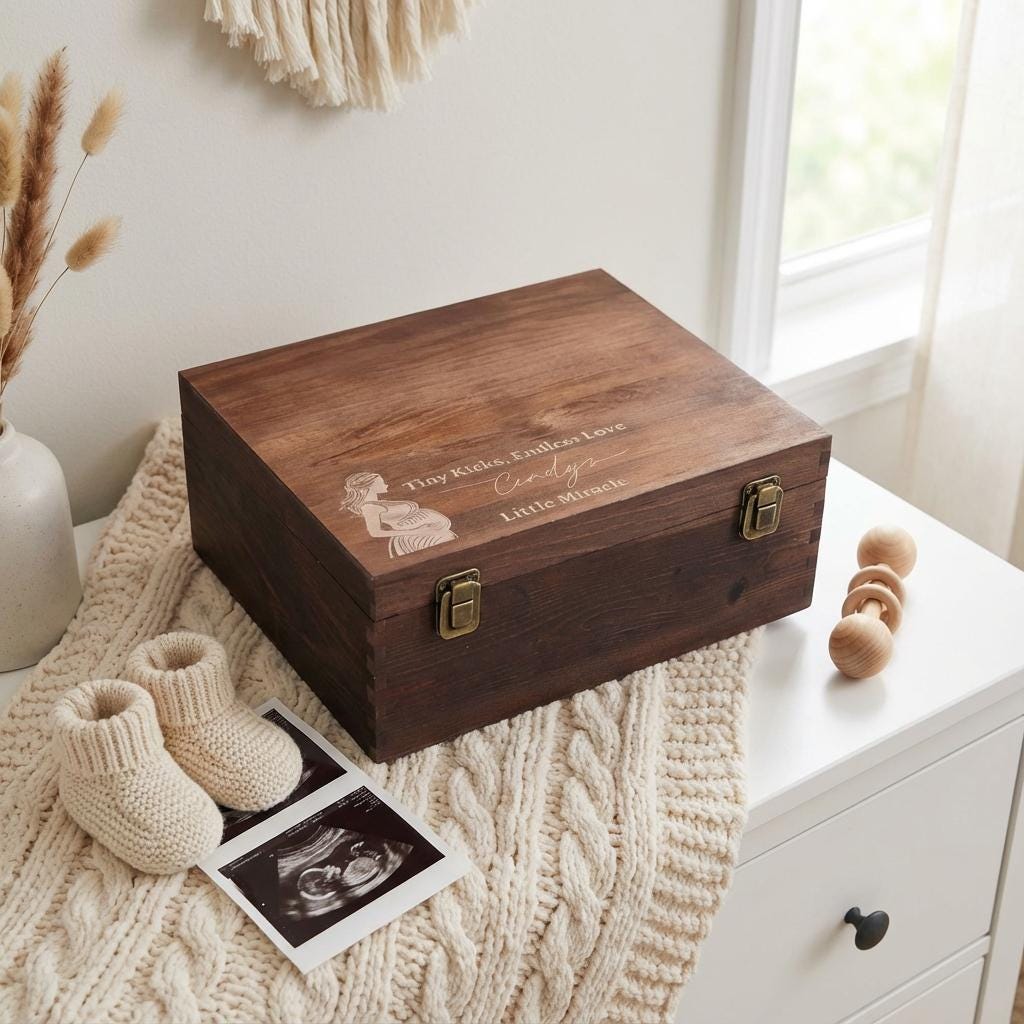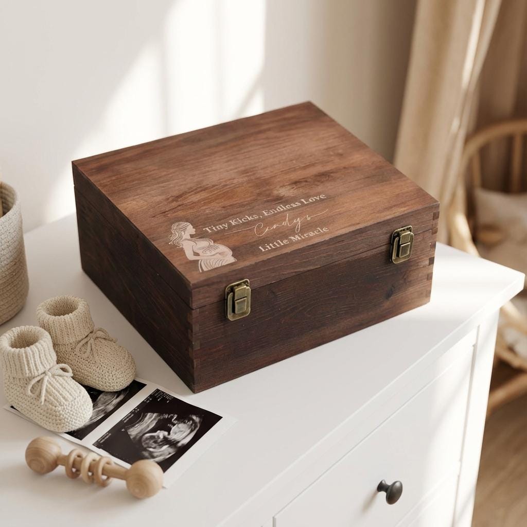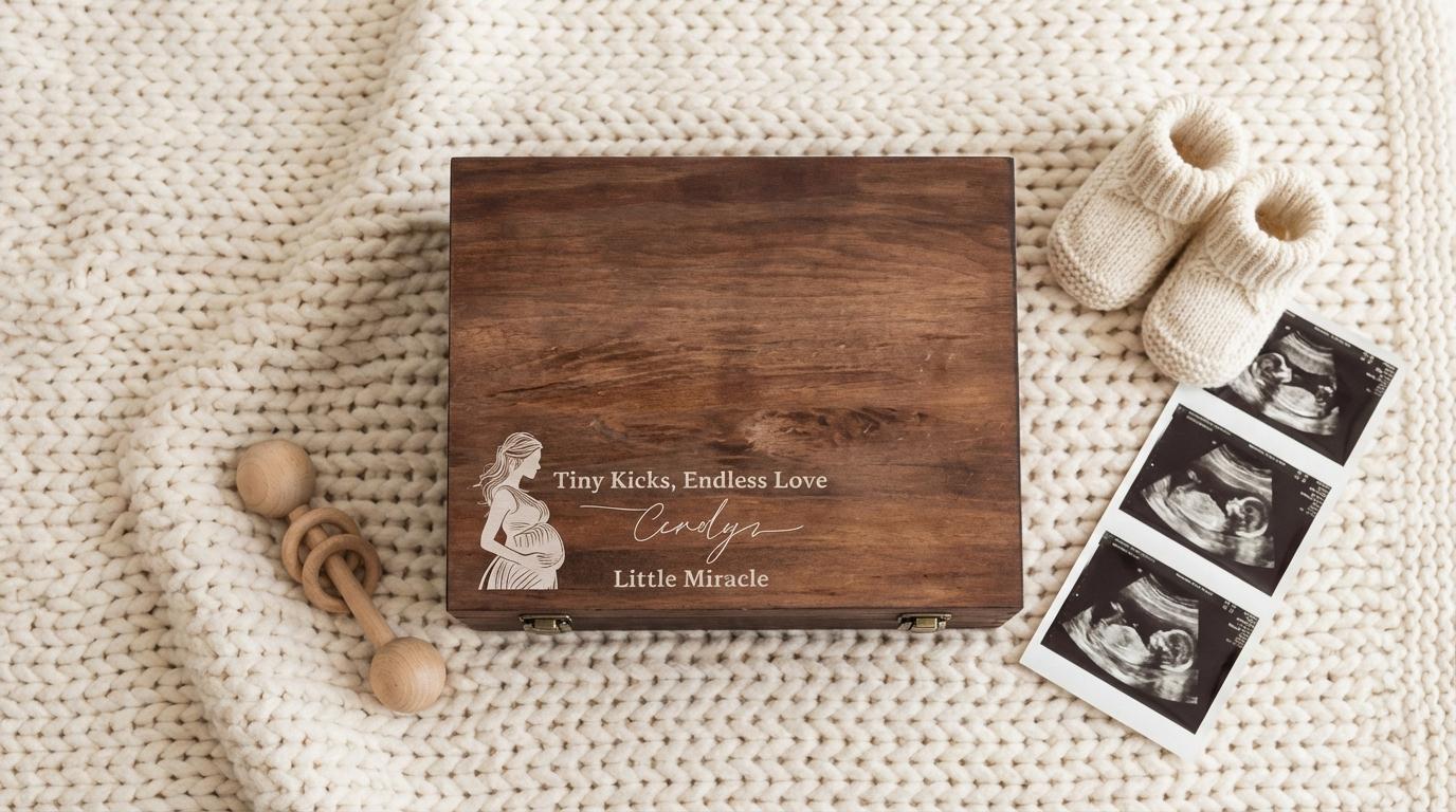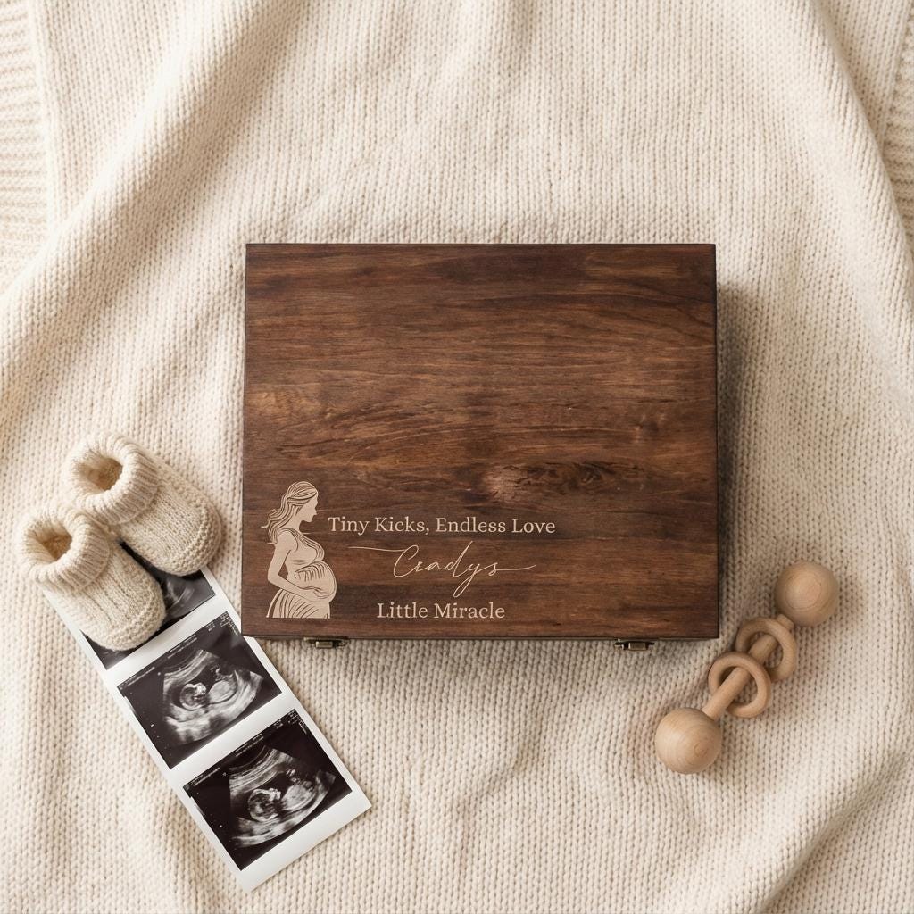 Pregnancy Keepsake Box | Personalized Wooden Box & "Tiny Kicks" Baby Memory Chest for Expecting Mom