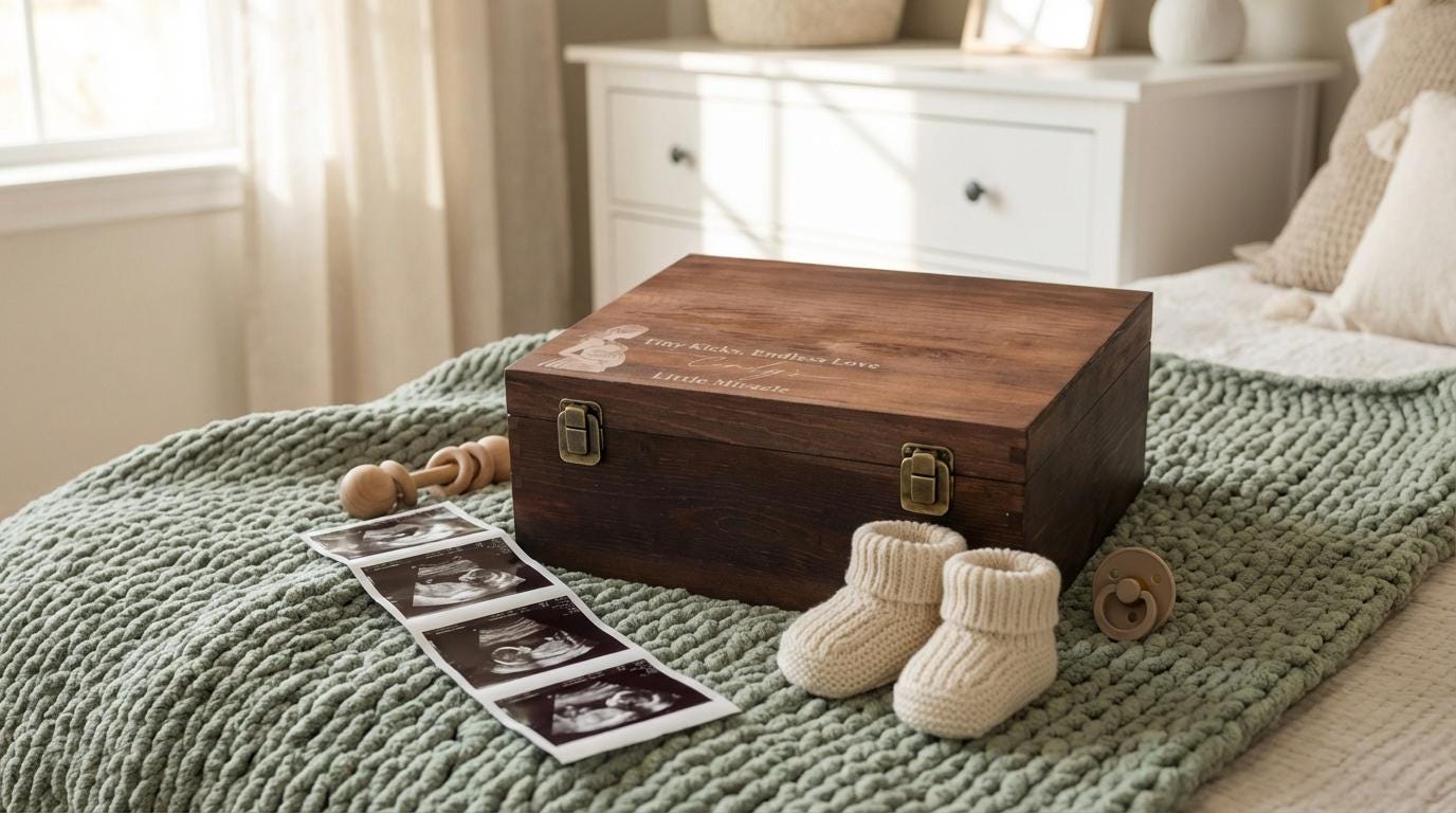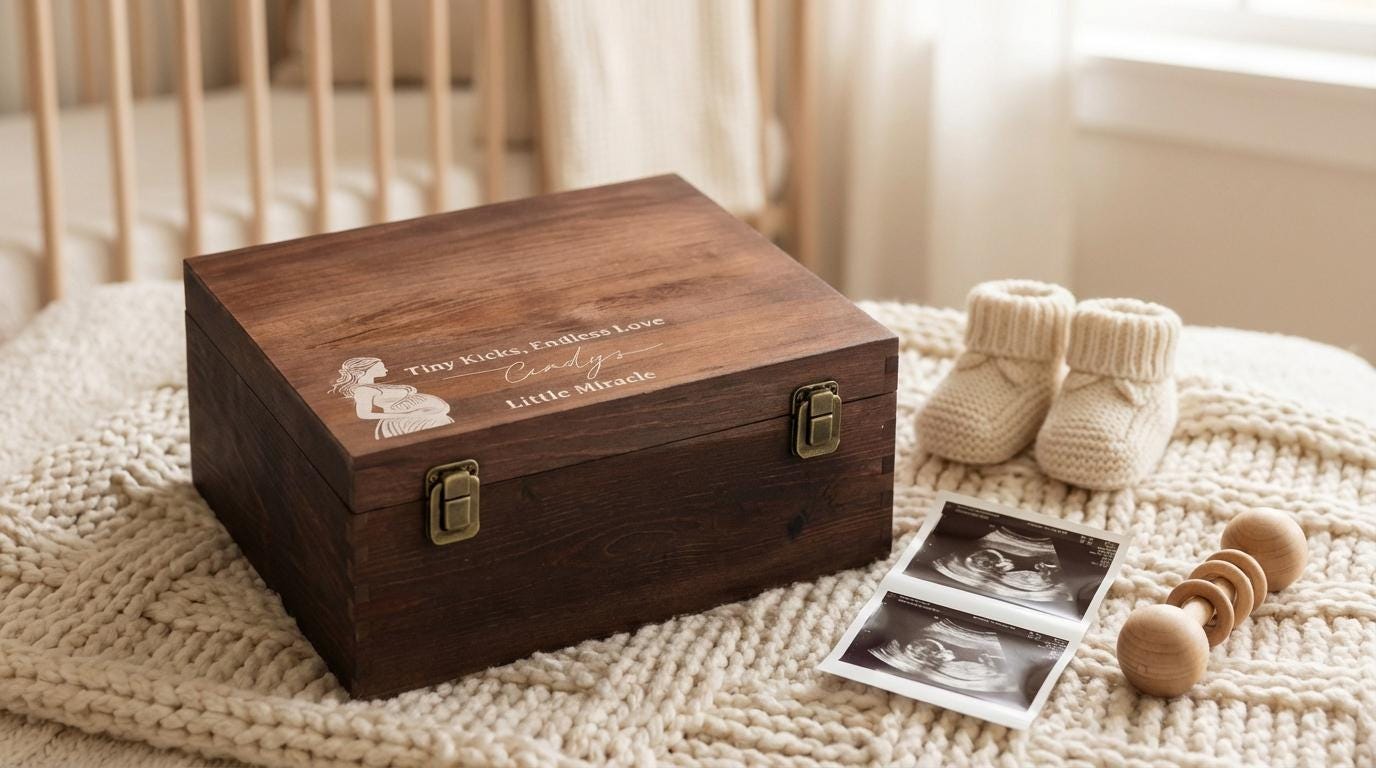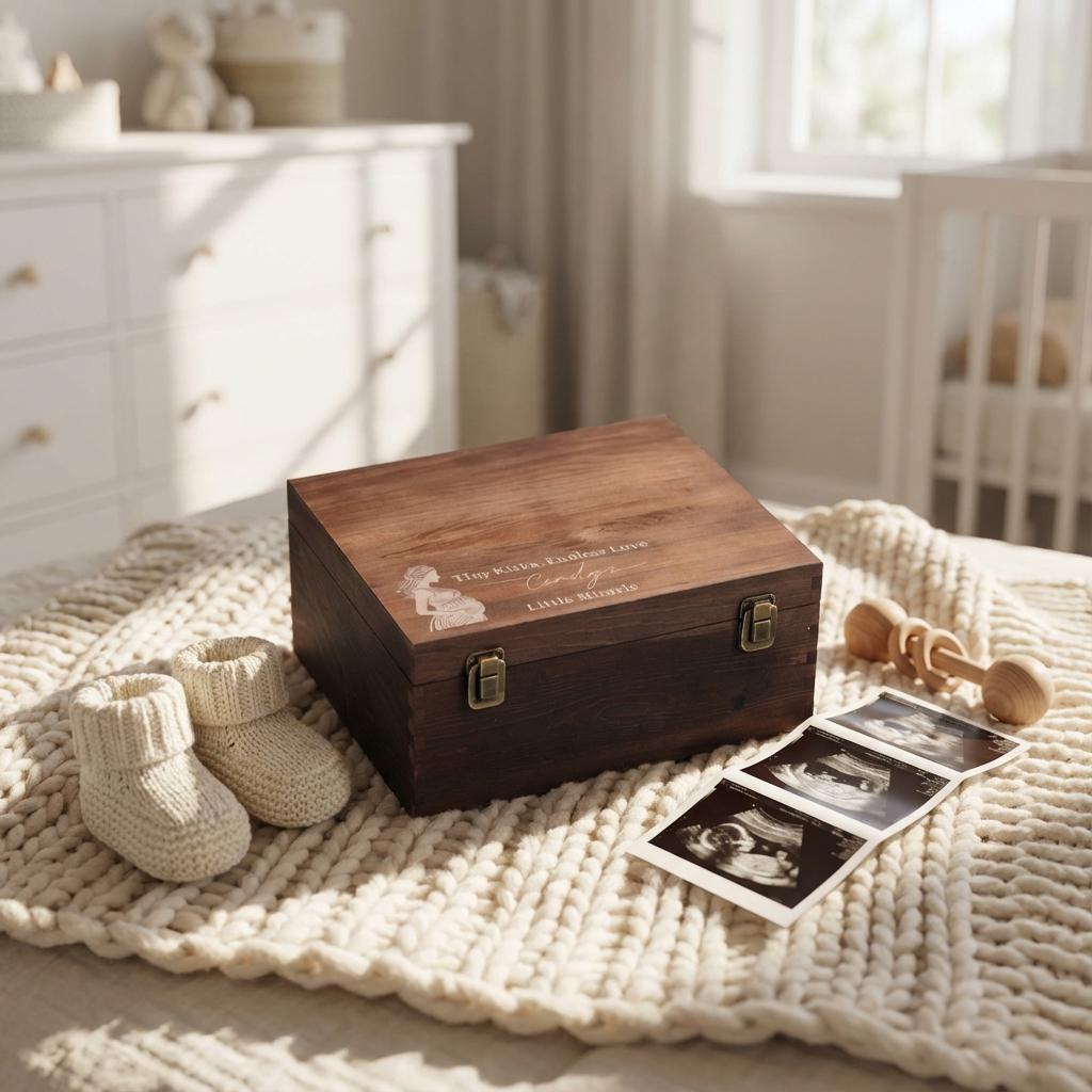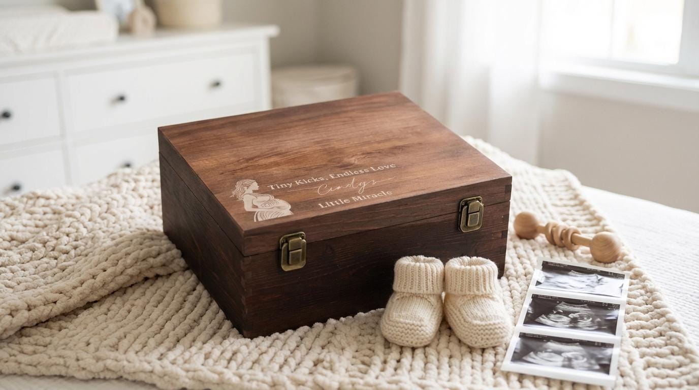 Pregnancy Keepsake Box | Personalized Wooden Box & "Tiny Kicks" Baby Memory Chest for Expecting Mom