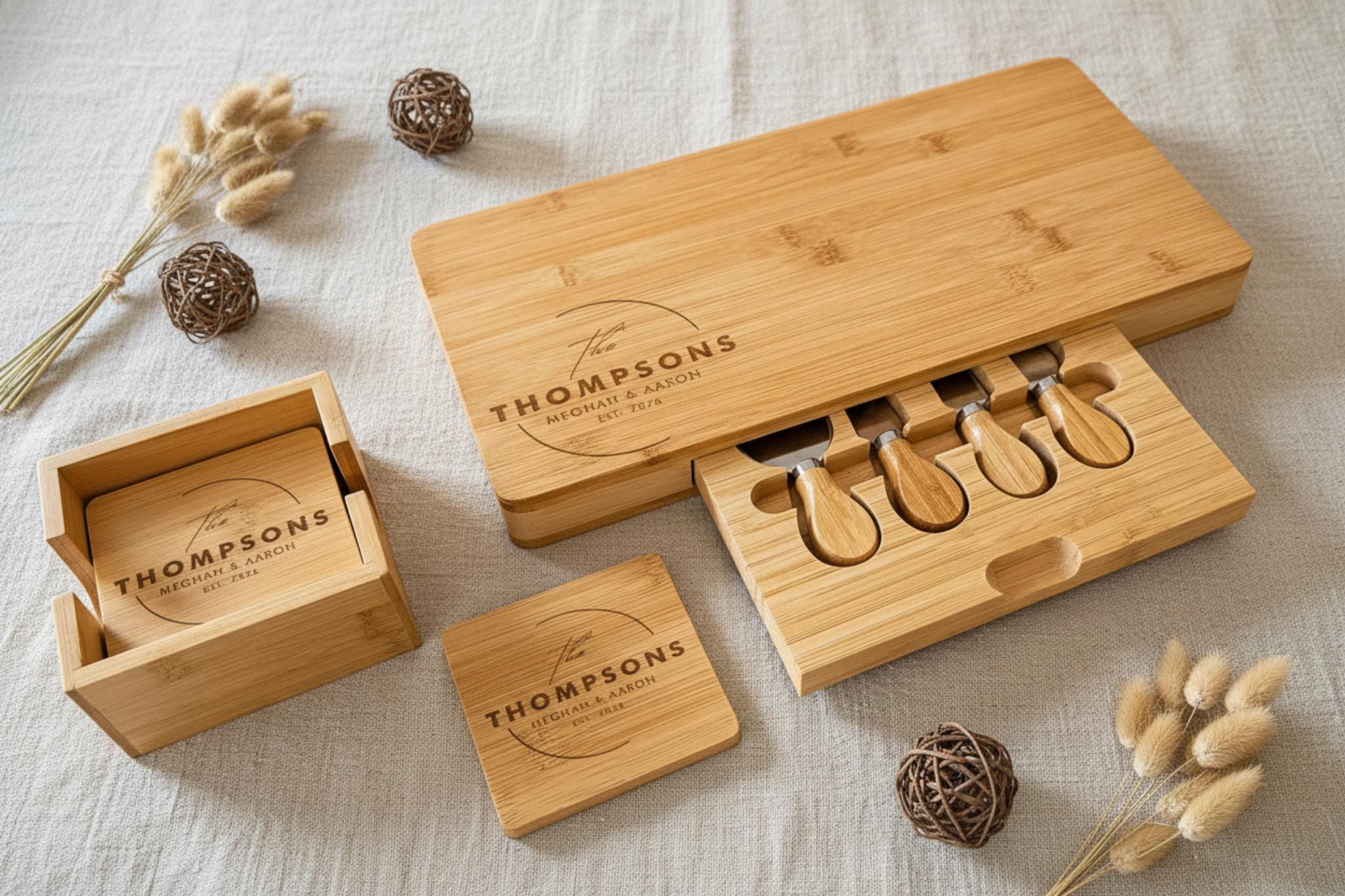 Order Your Personalized Set Today: Click “Add to Cart” now to create your custom engraved bamboo cheese & charcuterie board (with optional coaster set) and turn every occasion into an unforgettable event!