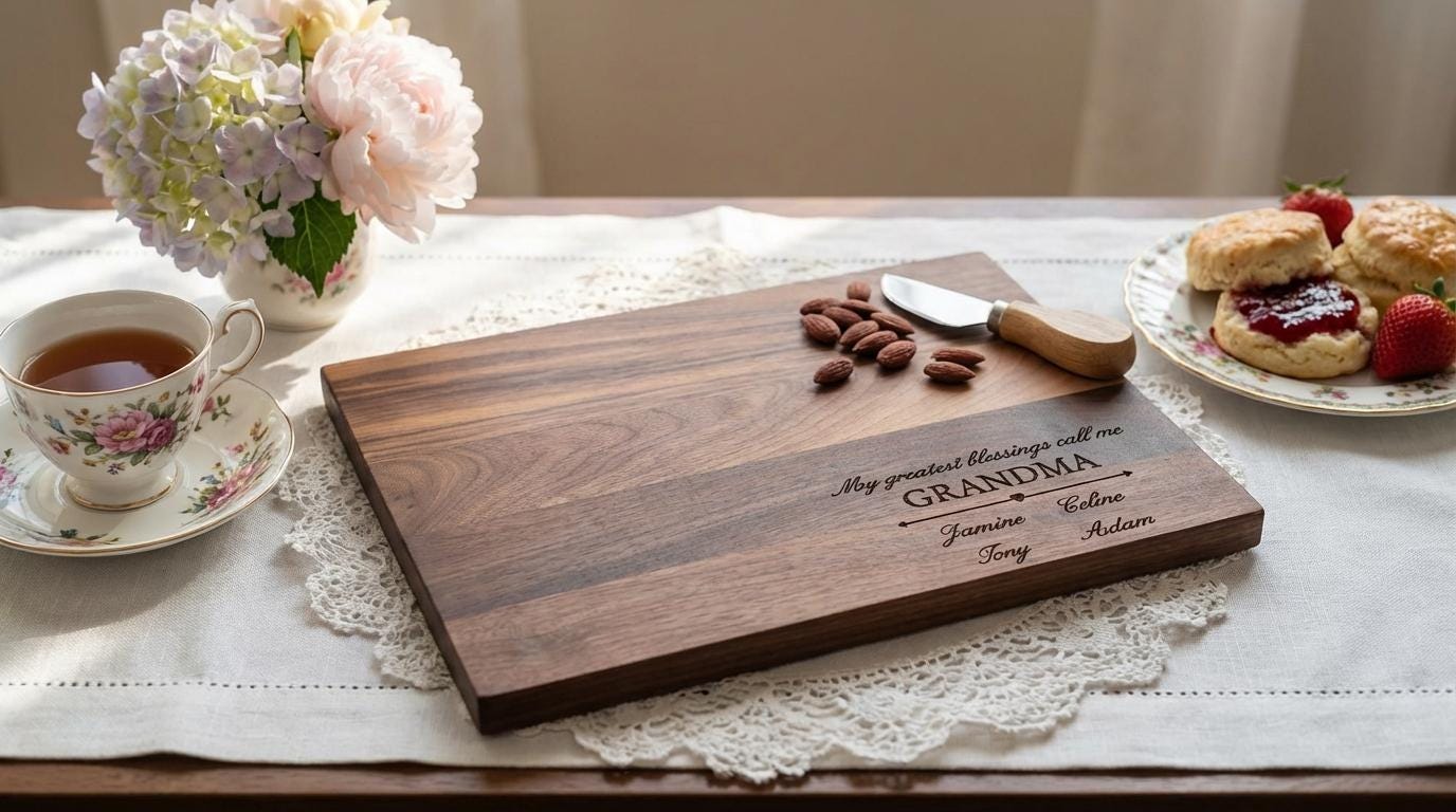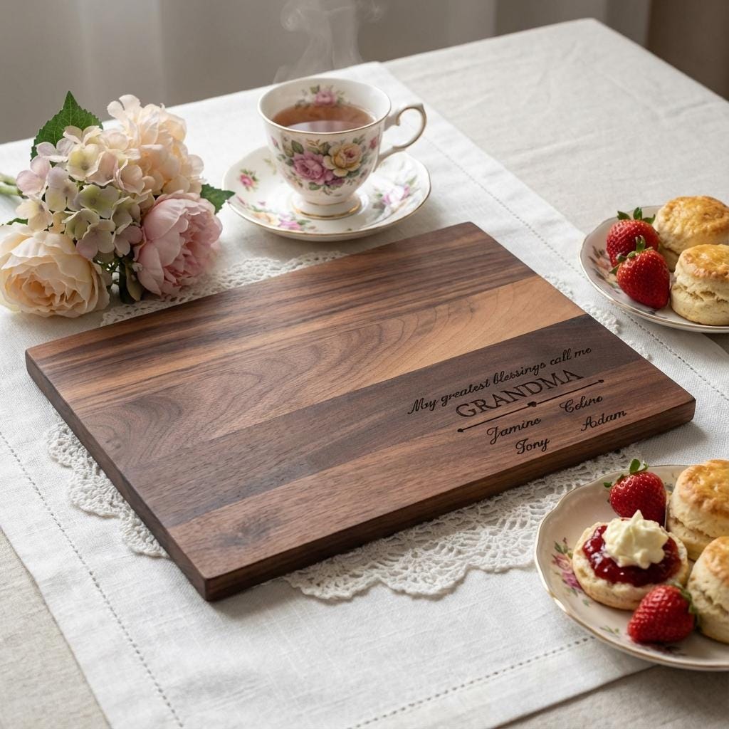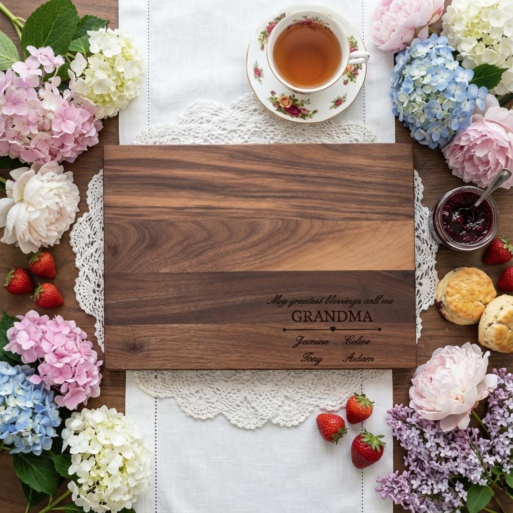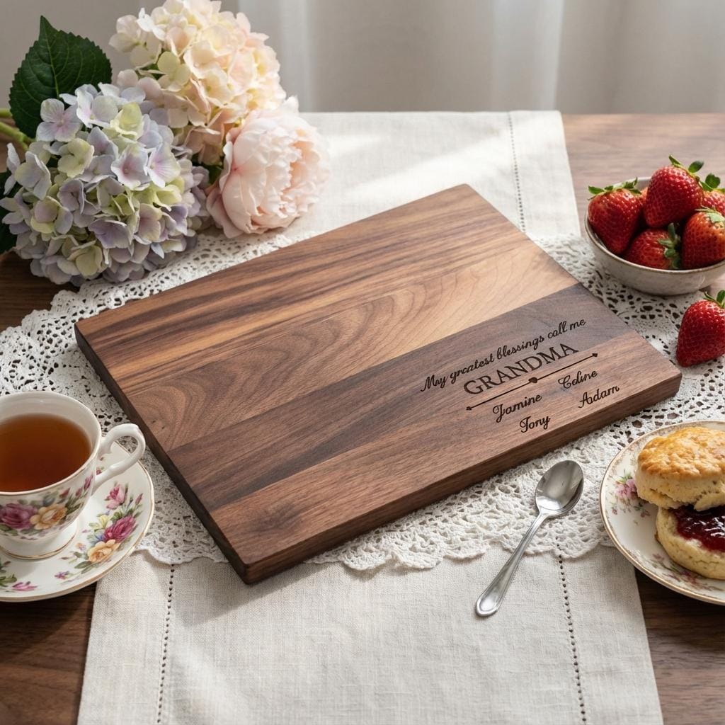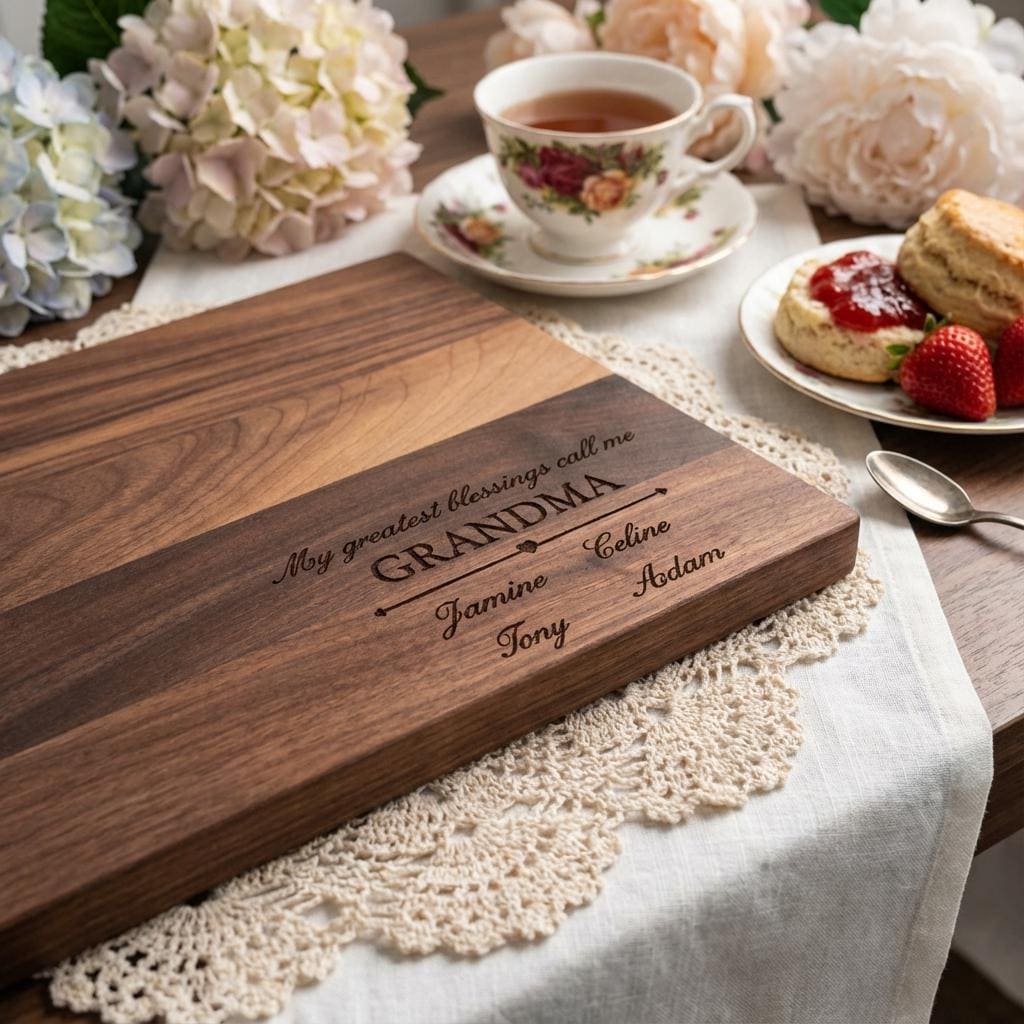 Grandma Gift from Grandkids | Personalized Cutting Board & "Greatest Blessings" Walnut Platter