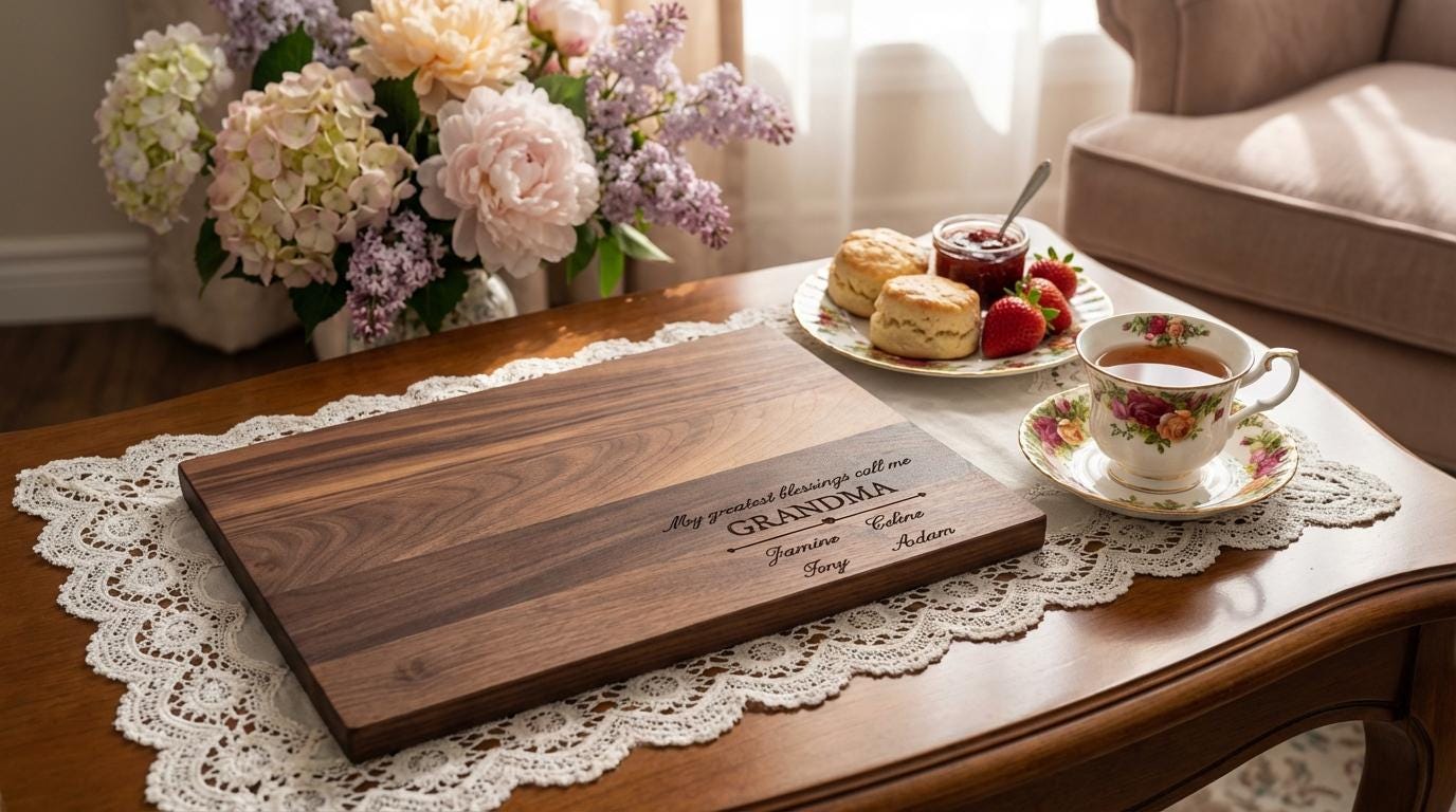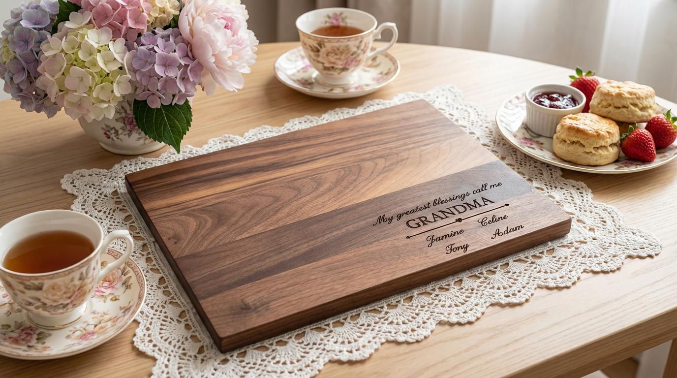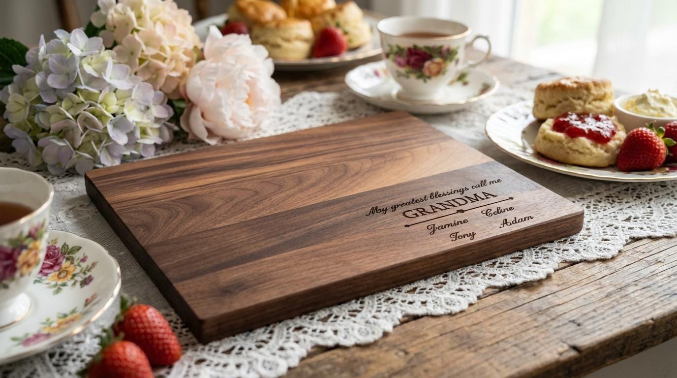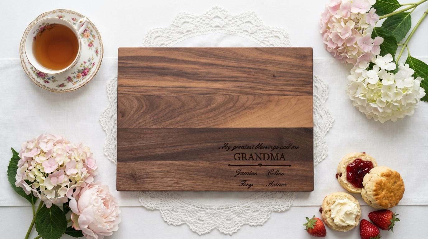 Grandma Gift from Grandkids | Personalized Cutting Board & "Greatest Blessings" Walnut Platter