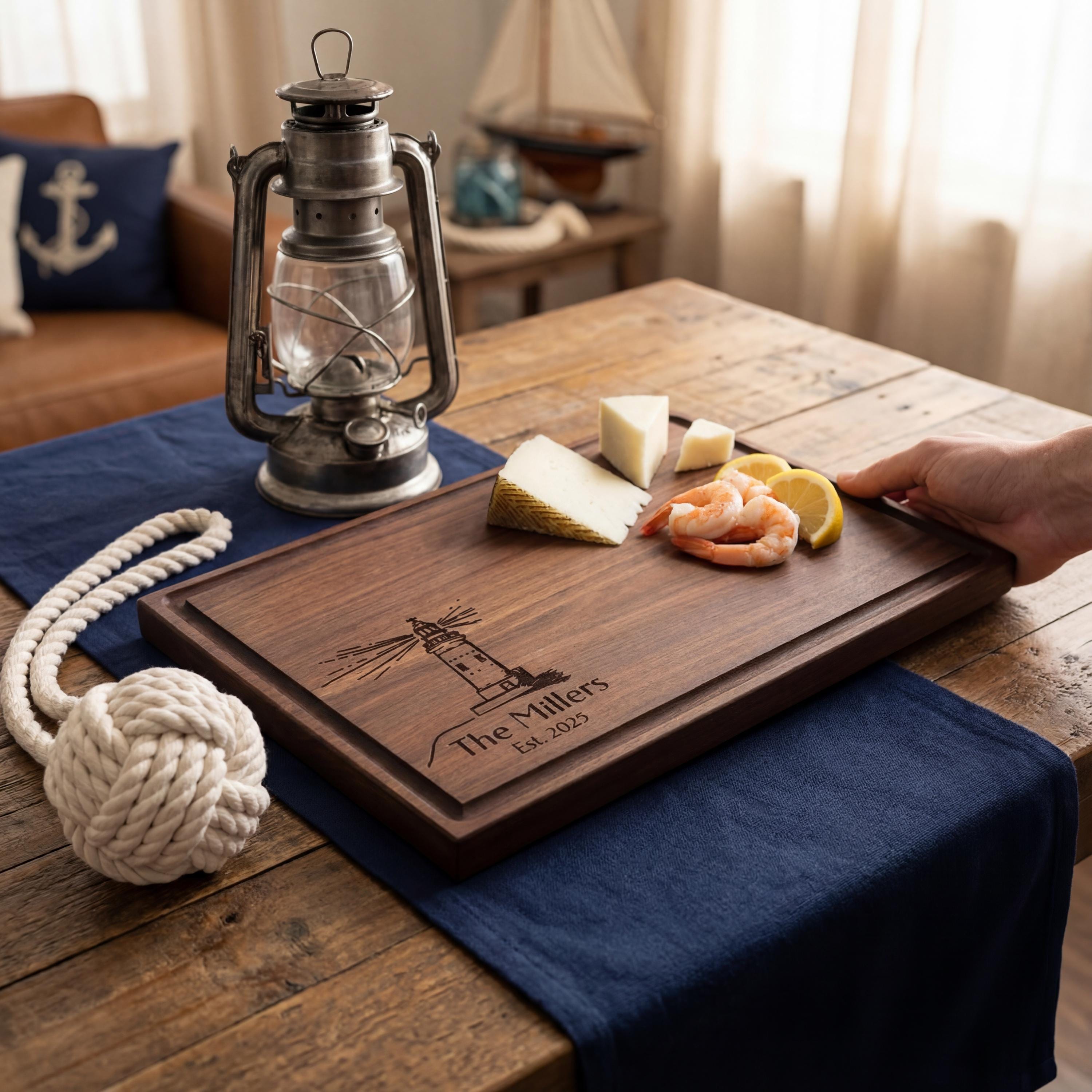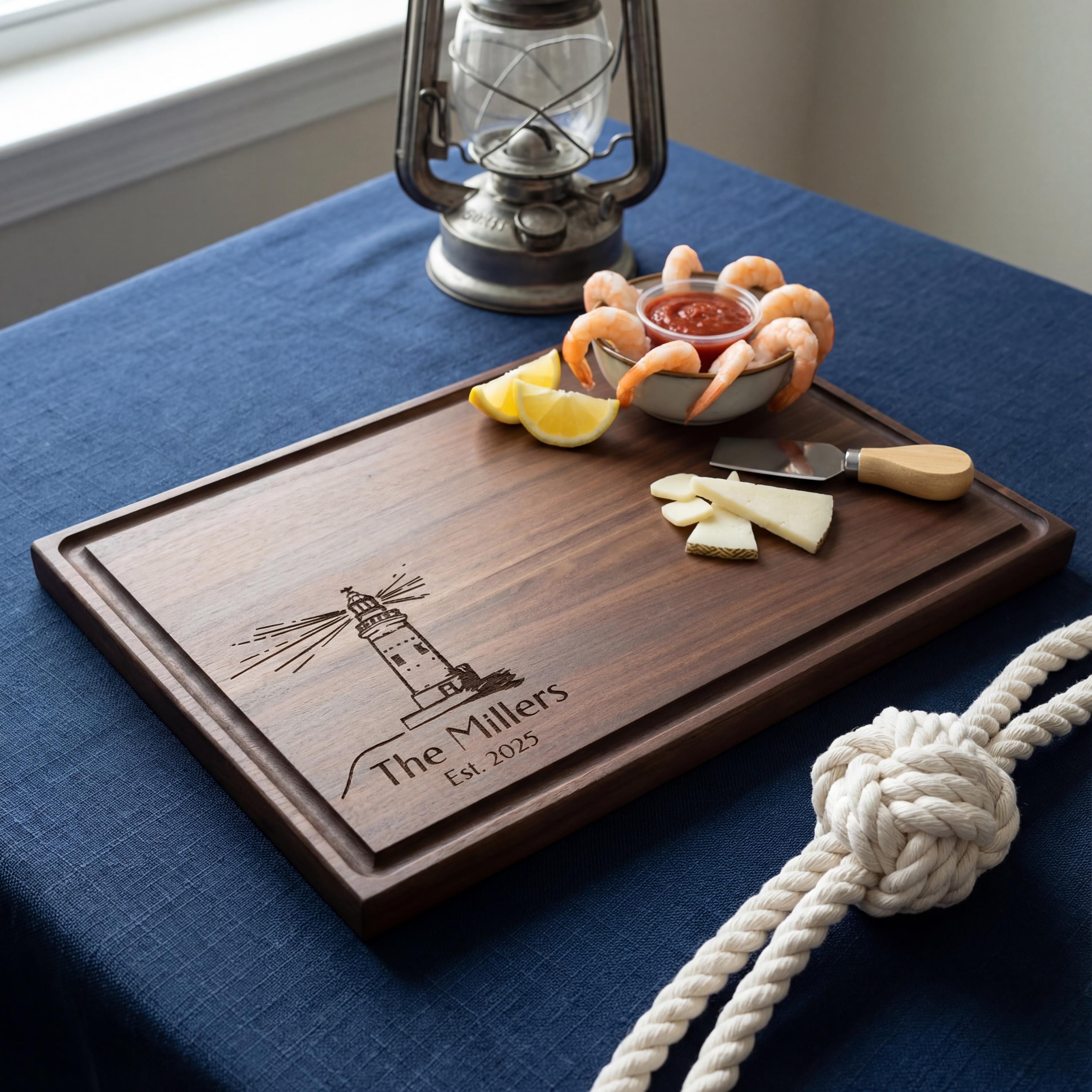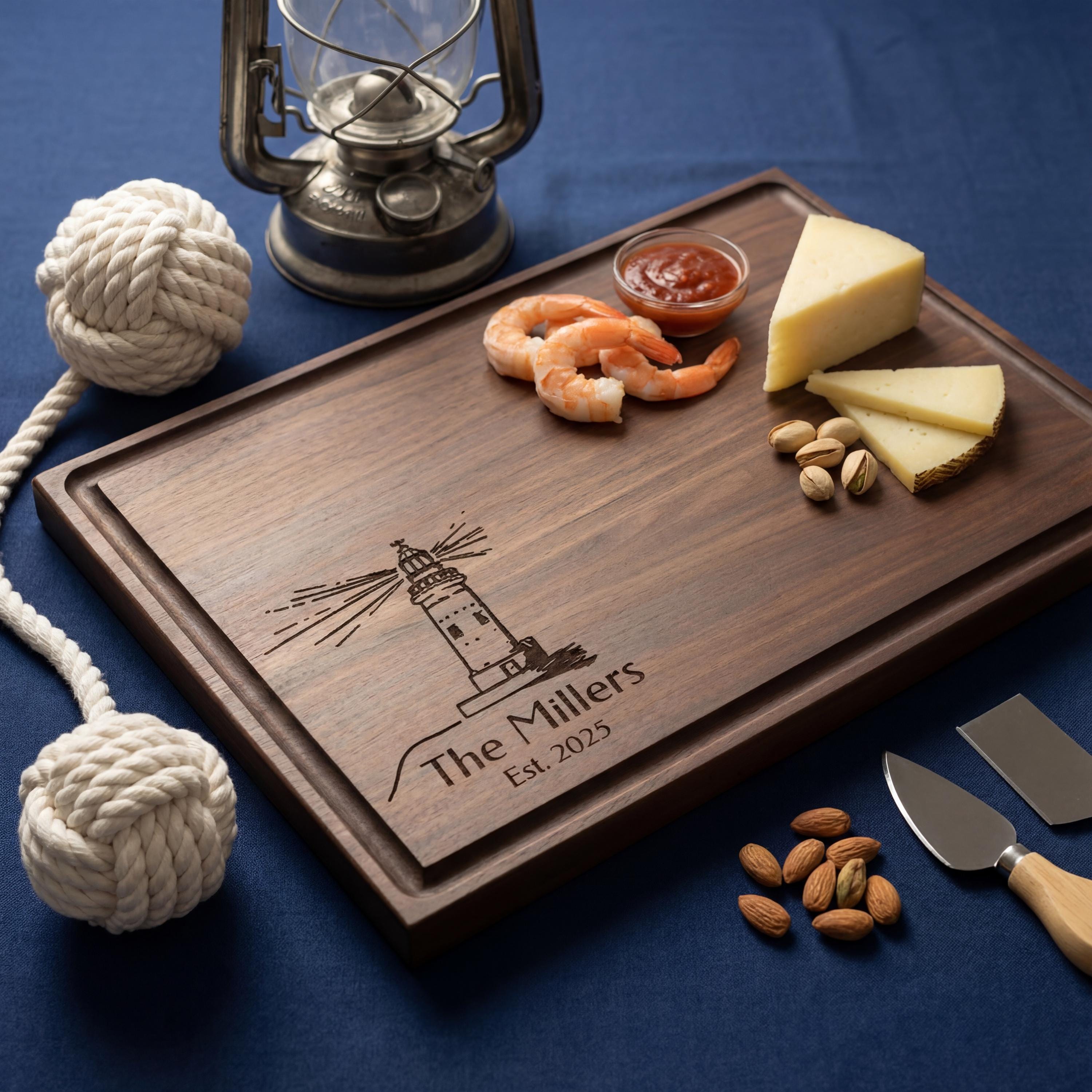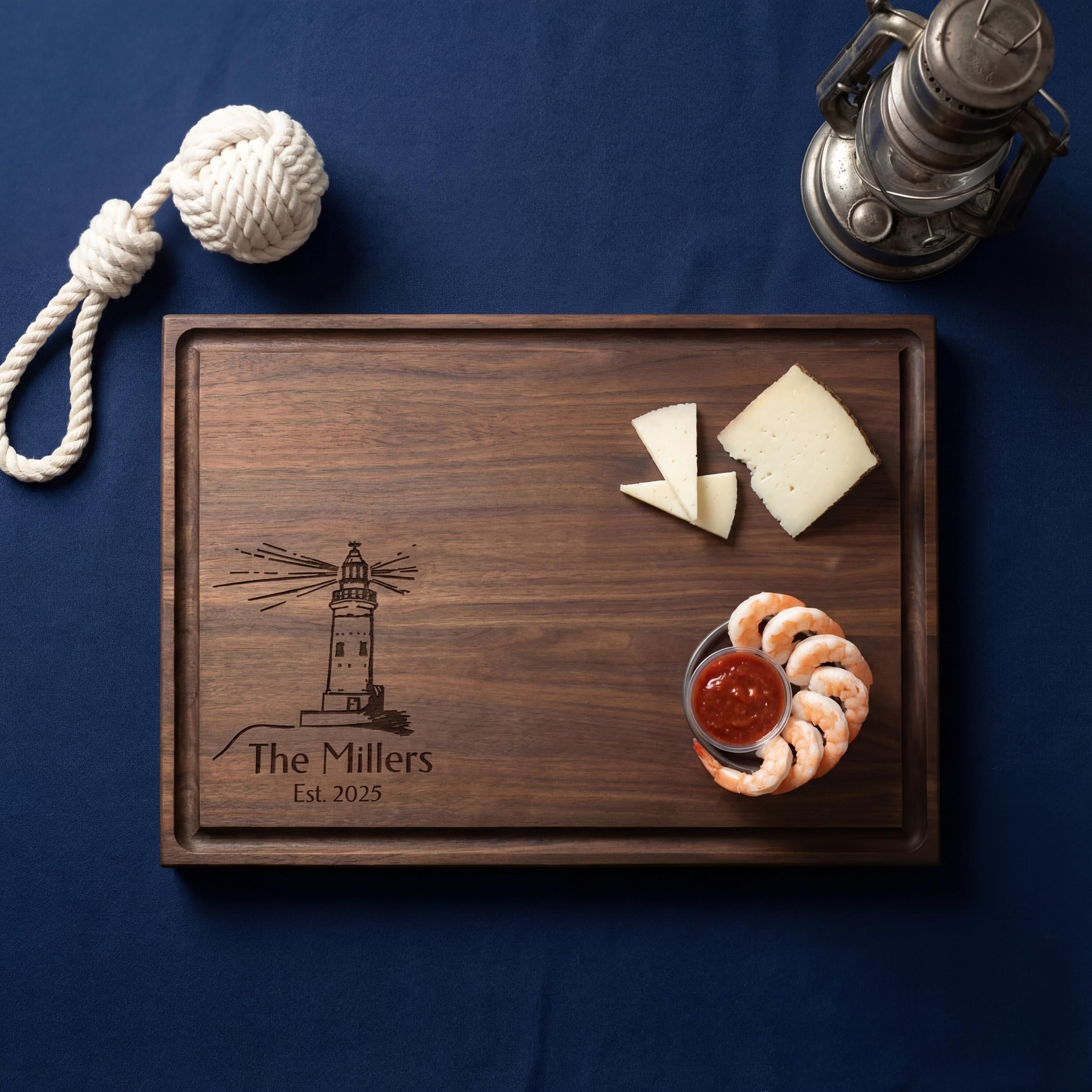 Personalized Charcuterie Board – Lighthouse Couple Gift: Custom Cutting Board | Housewarming, Wedding, Anniversary, Engagement, Beach Gift