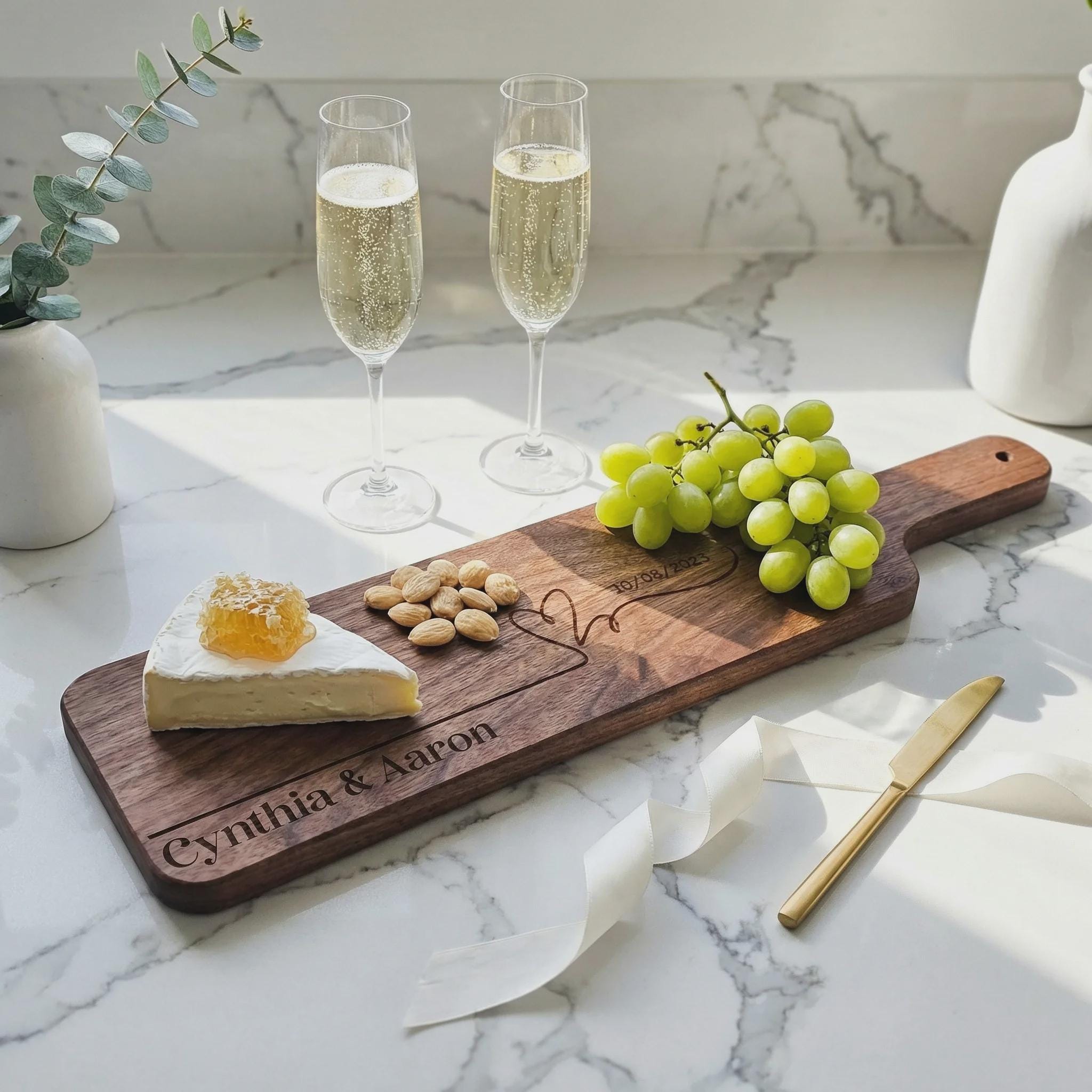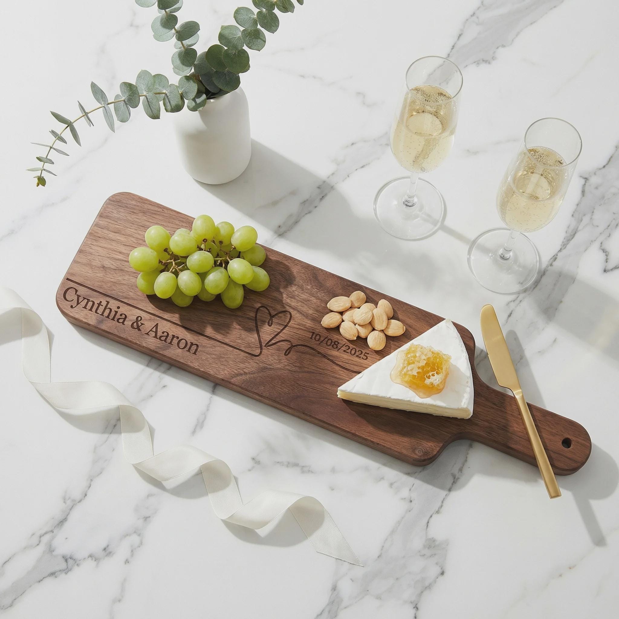 Personalized Wood Bread Board, Custom Engraved Long Charcuterie Tray, Wedding Gift