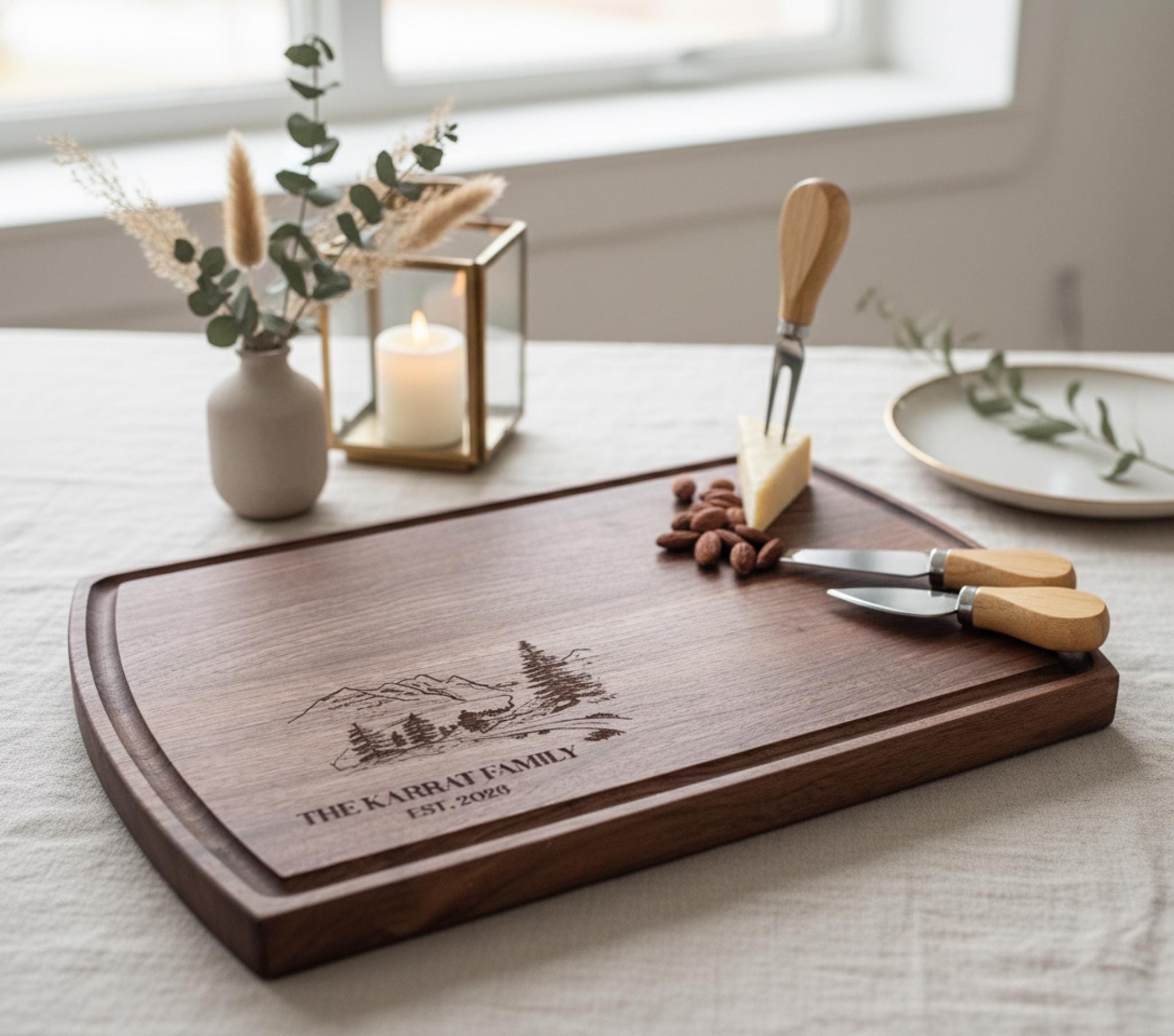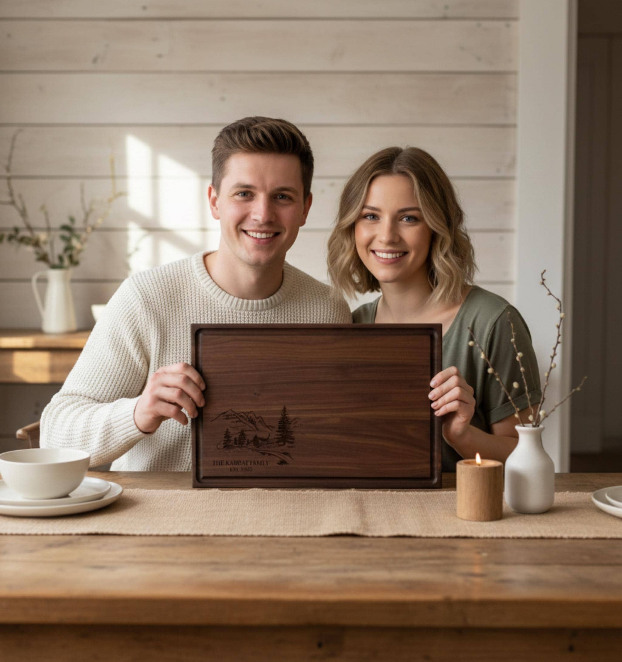 Rustic Elegance & Individuality: The natural wood grain variations ensure no two boards are alike, giving each one its character. It’s more than just a cutting board; it’s a handcrafted piece that speaks to the uniqueness of every family and love story.